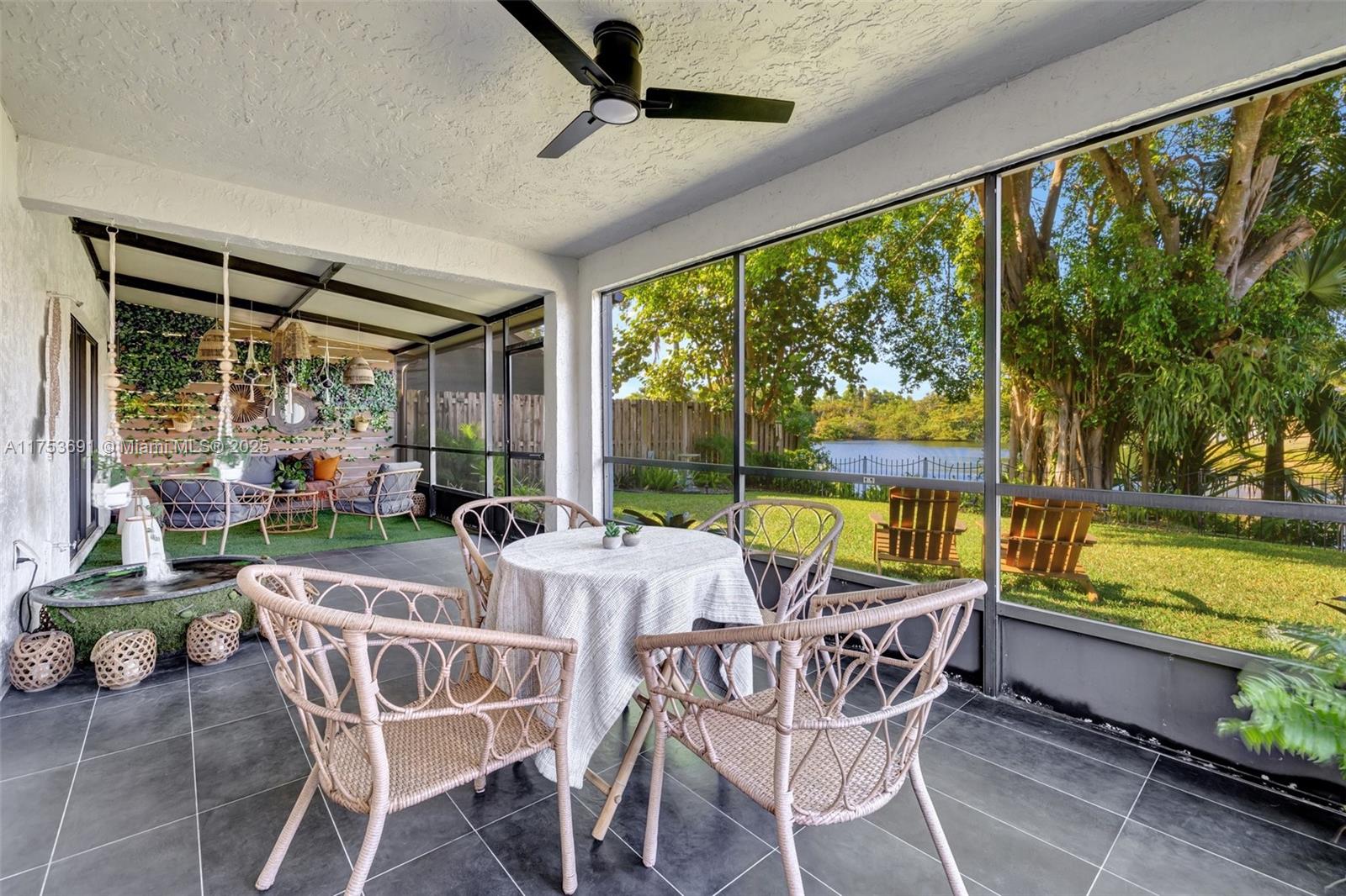 Stunningly updated peaceful lakefront home in Cooper City's Countryside West w/ gorgeous views throughout. Large screened patio overlooks crystal-clear lake & opens to private fenced backyard. Beautiful open concept kitchen w/ white shaker cabinets, waterfall counters, marble backsplash, newer appliances, oversized tile, 2021 ROOF & ext paint, partial impact windows/doors, upgraded irrigation, AC ducts, remodeled interior, spa-like baths, & updated H2o heater. 2023 W/D, HVAC, solar attic fan, upgraded insulation & epoxy garage. Turf & tiled patio, custom landscaping, upgraded stucco, LED lighting, smart thermostat, Ring & WiFi garage door. Expansive side yard w/ double gate to store boat/RV. Cul-d-sac street, close to Houses of Worship, Sports Complex, A-rated schools & shopping/dining.