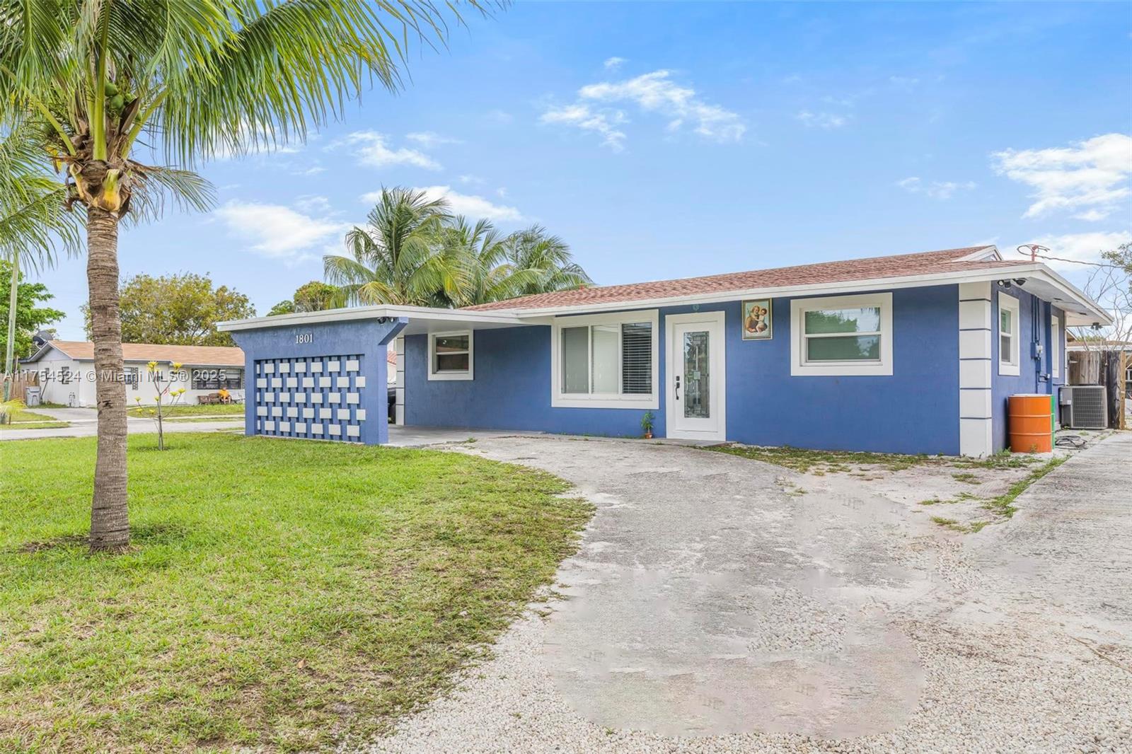 Modern 4-bed, 2-bath corner-lot home in fast-growing Pompano Beach! Features a large circular driveway with space for multiple cars or a boat, plus a covered carport for added protection. Fully remodeled with impact windows, modern tile flooring, and spacious closets. Major updates already done! New roof, A/C, and electrical panels—only 2 years old. A solid, worry-free investment for your buyers. The backyard includes a newly remodeled pool, only needing the final Diamond Brite finish, allowing buyers to customize the final touch. Also features a 12x26 covered patio with a dedicated grill area, perfect for barbecues or relaxing in the shade with family and friends. Includes a separate storage/laundry room for added convenience. No HOA—flexibility for homeowners and investors!