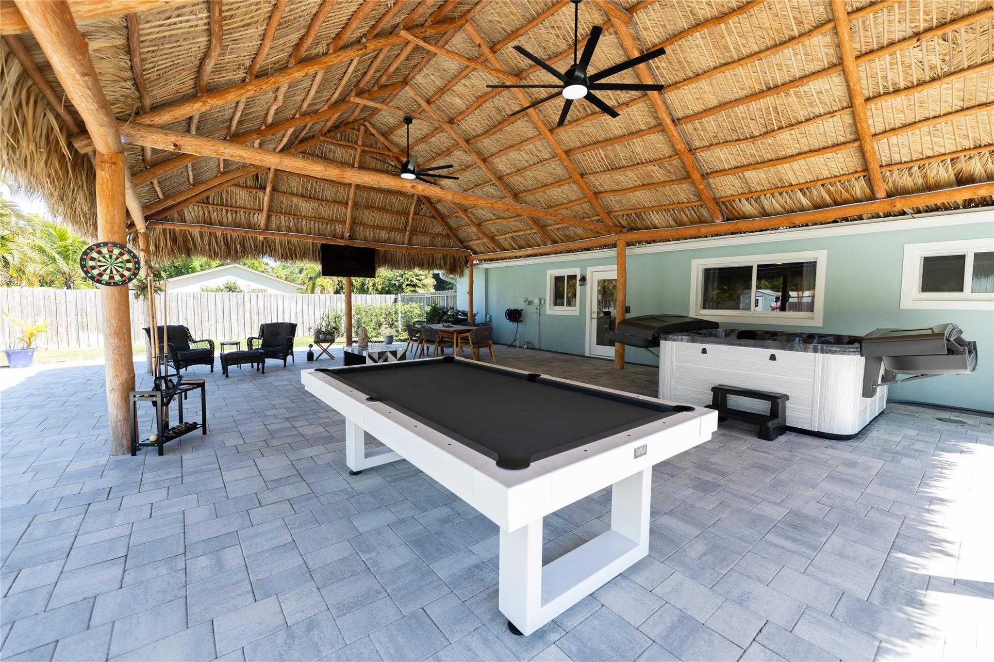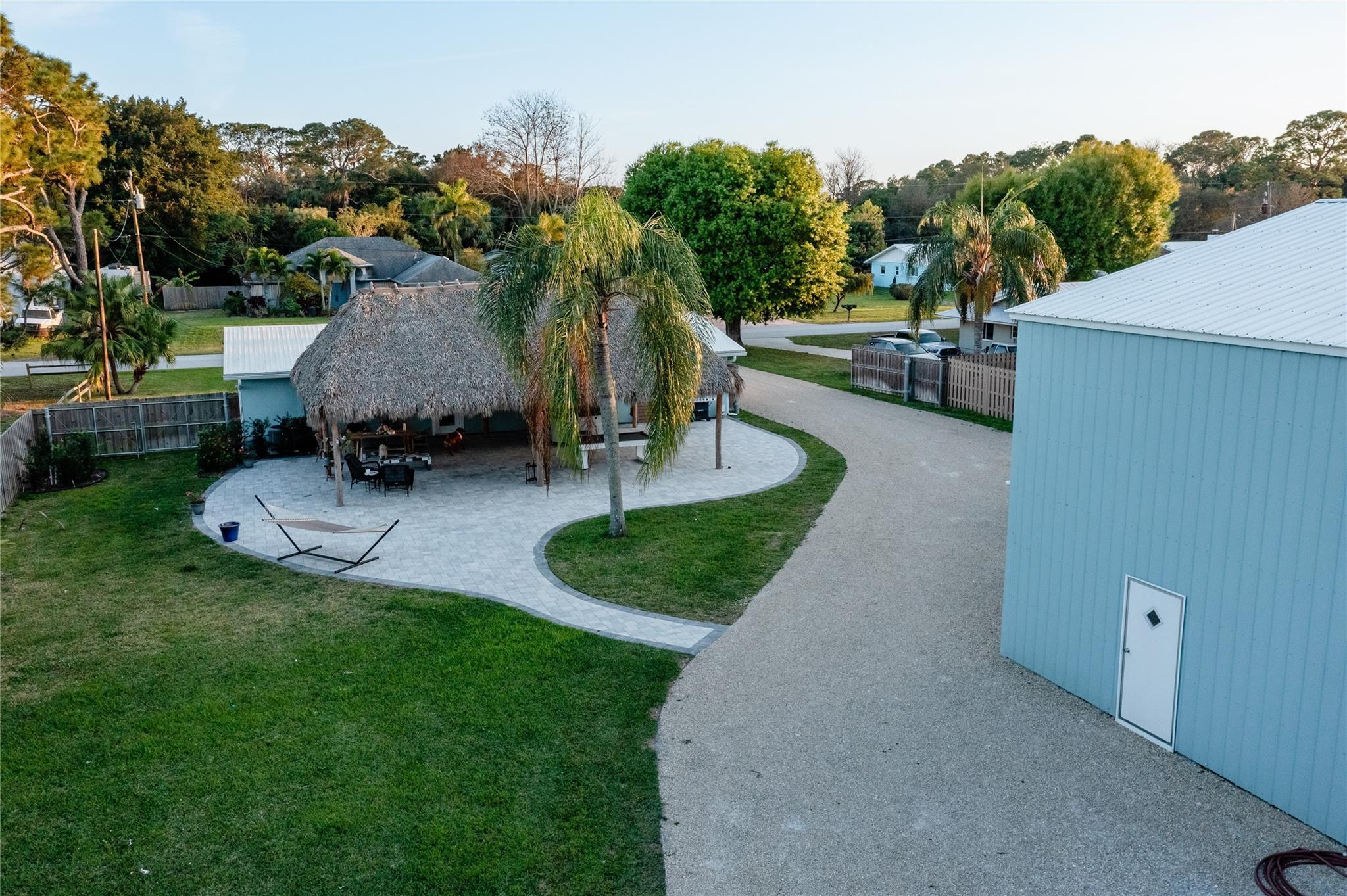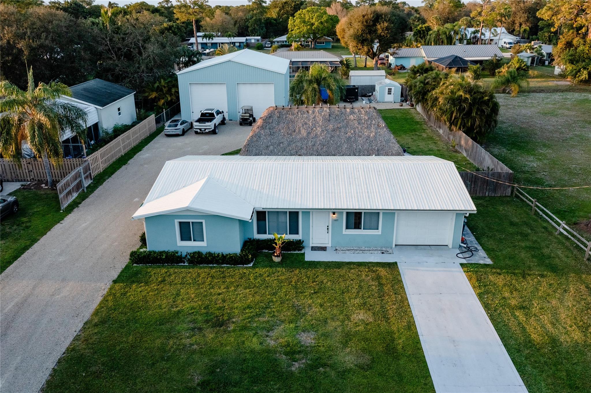 Welcome to your updated Stuart home, offering space, style, and total freedom with no HOA! Sitting on half an acre, this home features impact windows, a hurricane-rated garage door, and a 2017 metal roof with added clips for insurance savings. Inside, enjoy a completely renovated home featuring a stunning kitchen with quartz counters, marble backsplash, and updated bathrooms with elegant finishes as well. A huge 40x50 workshop with 14K lb car lift, impact-rated doors, and 100-amp service is perfect for work or play. Outside, relax under a 35x25 tiki hut with fans, TVs, and a 2024 hot tub, all surrounded by stunning pavers. City water/sewer, new A/C, full irrigation—this one has it all! Schedule your showing today!