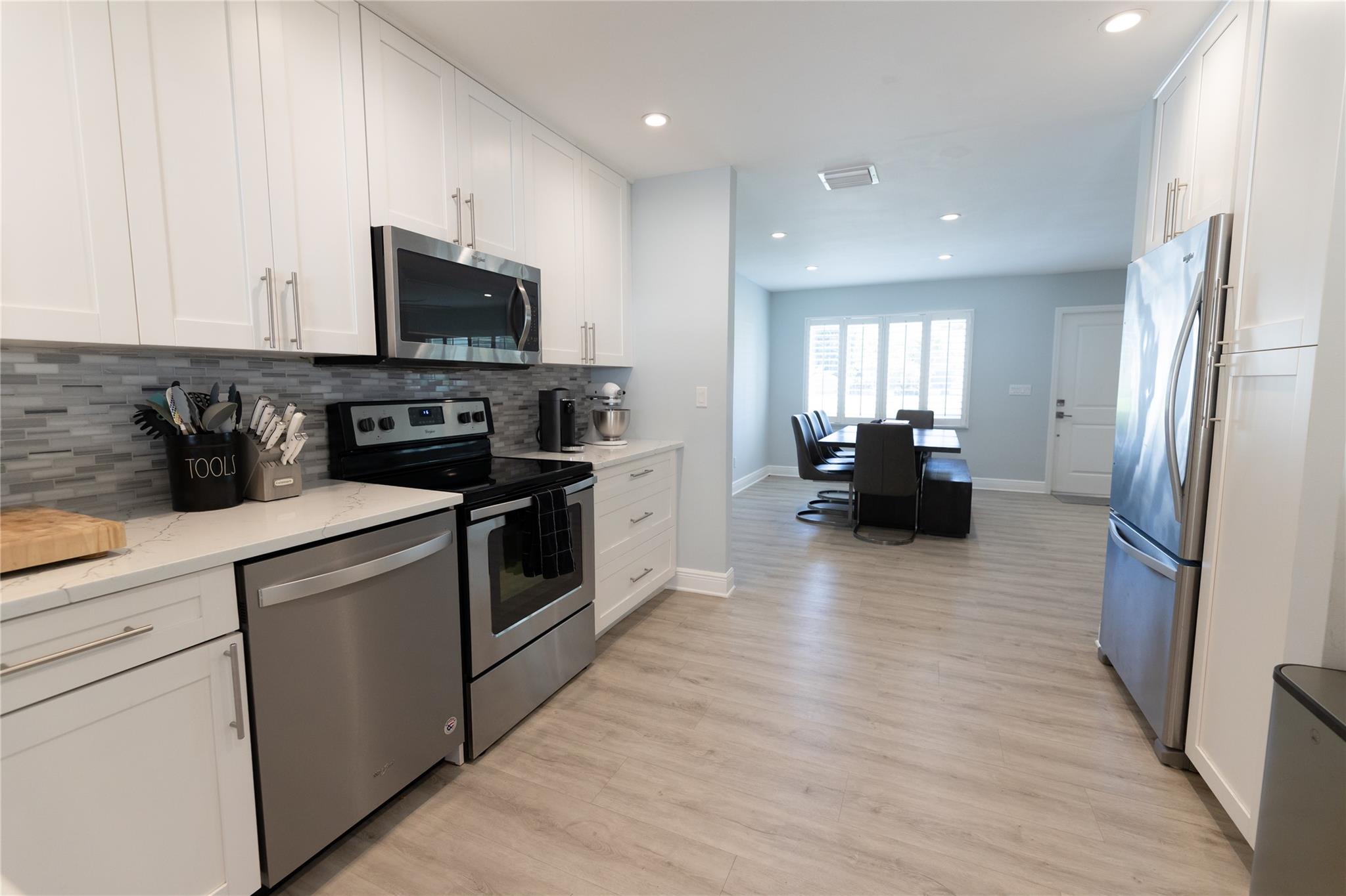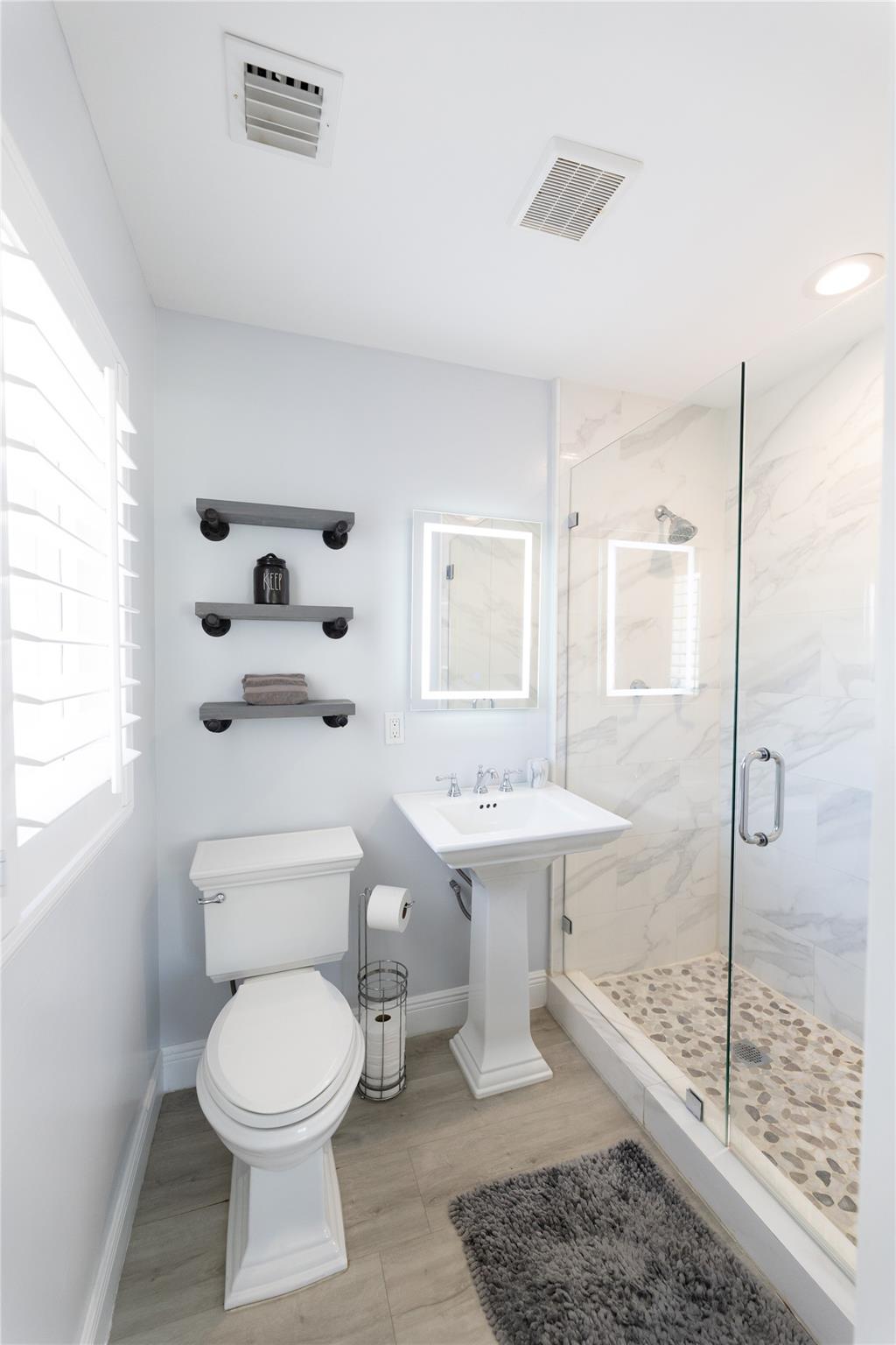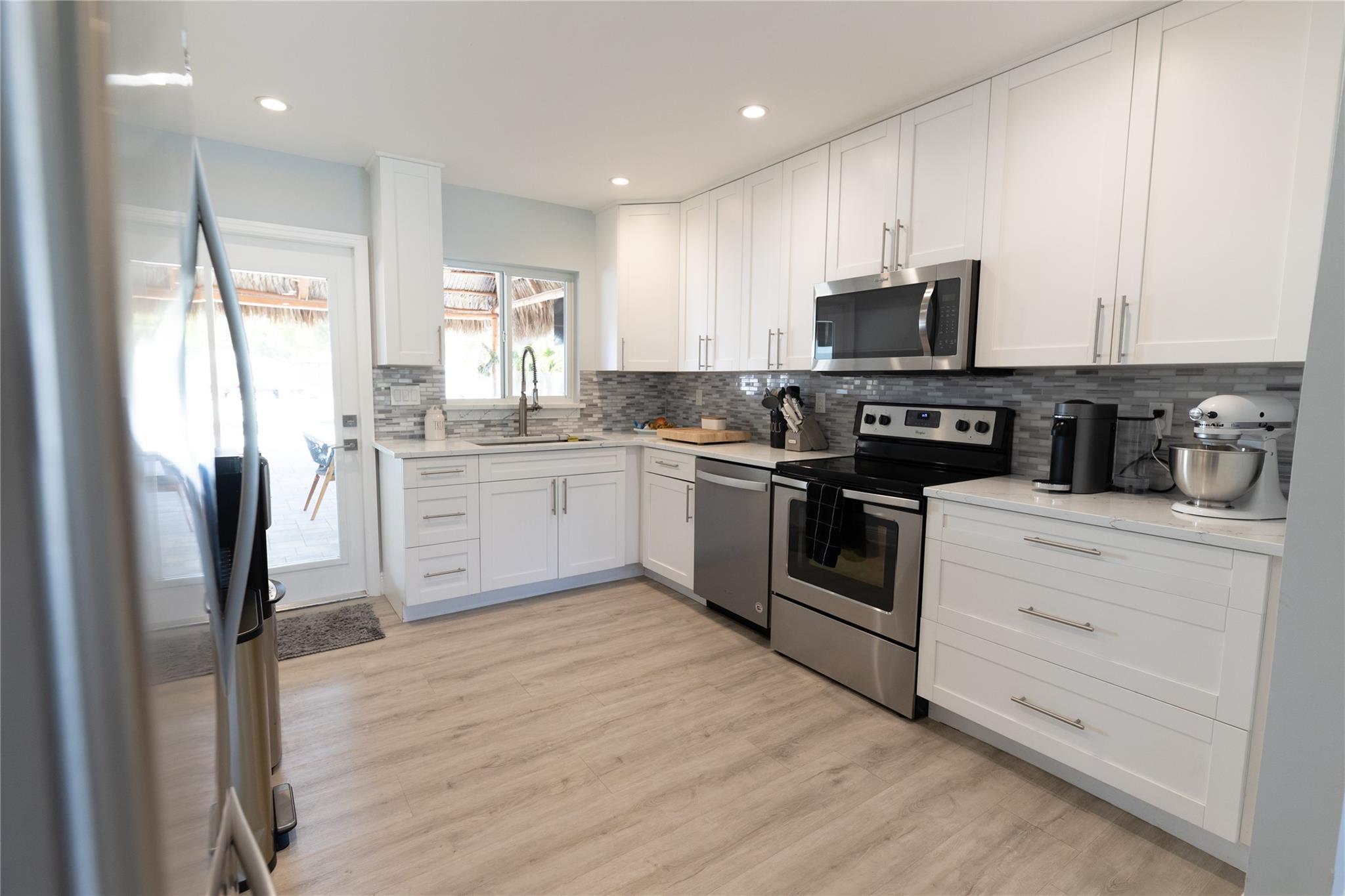 Welcome to your updated Stuart home, offering space, style, and total freedom with no HOA! Sitting on half an acre, this home features impact windows, a hurricane-rated garage door, and a 2017 metal roof with added clips for insurance savings. Inside, enjoy a completely renovated home featuring a stunning kitchen with quartz counters, marble backsplash, and updated bathrooms with elegant finishes as well. A huge 40x50 workshop with 14K lb car lift, impact-rated doors, and 100-amp service is perfect for work or play. Outside, relax under a 35x25 tiki hut with fans, TVs, and a 2024 hot tub, all surrounded by stunning pavers. City water/sewer, new A/C, full irrigation—this one has it all! Schedule your showing today!