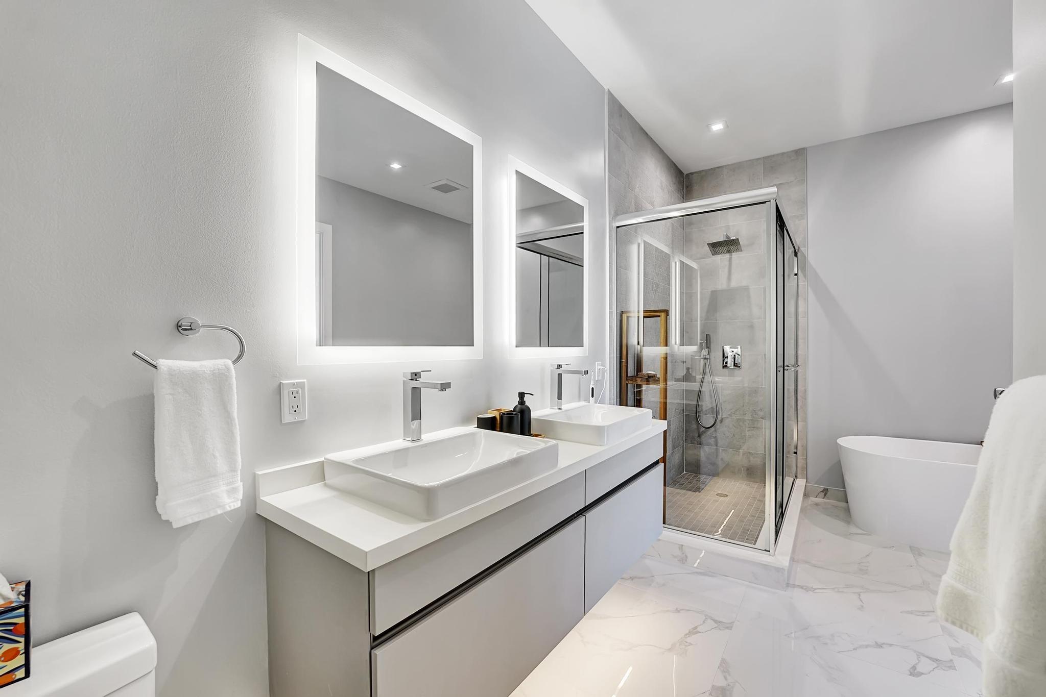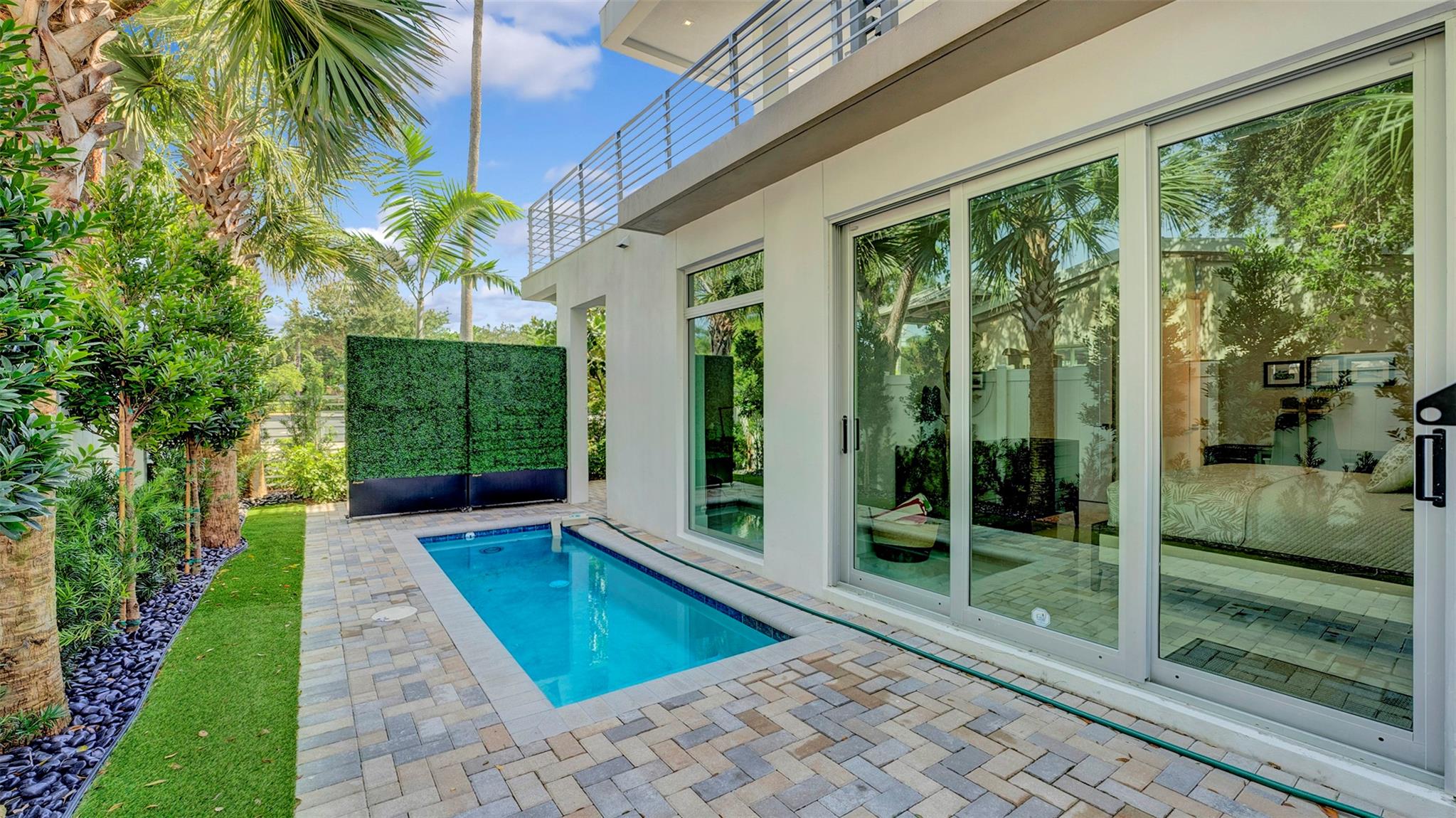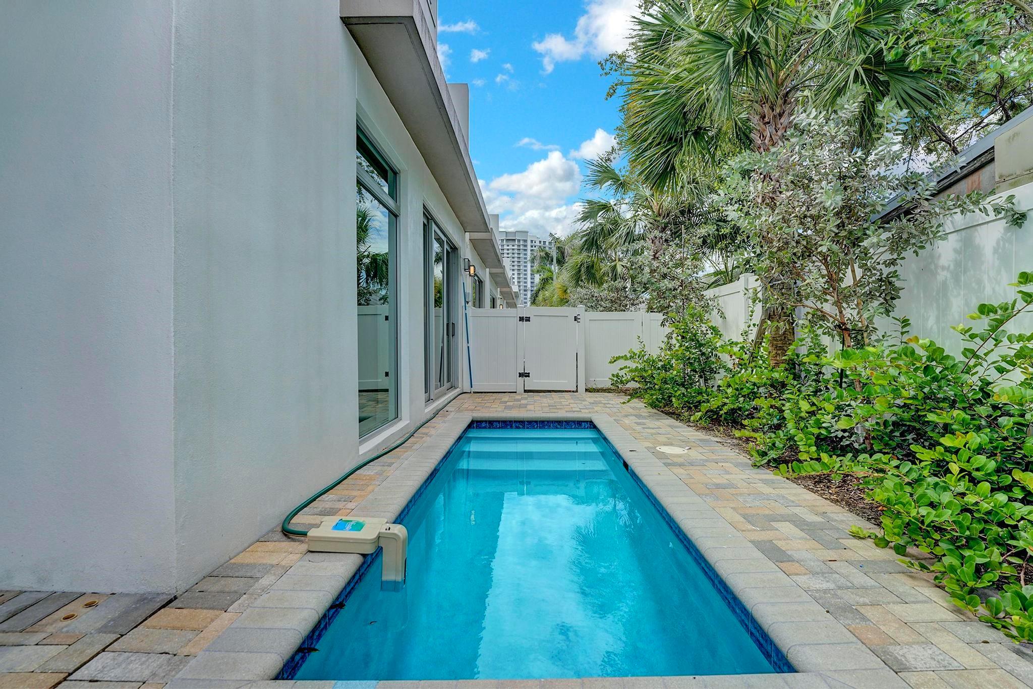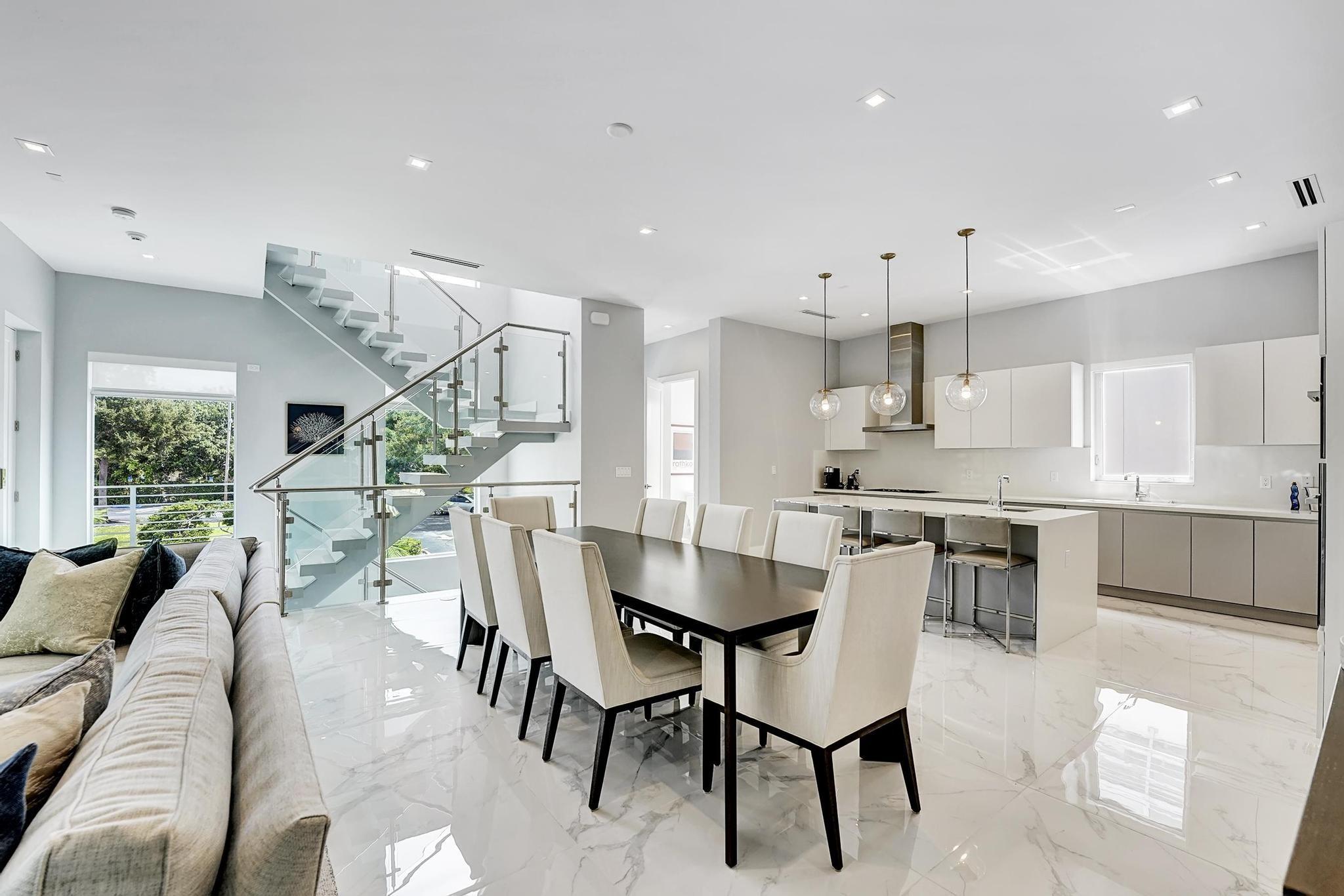 Nestled in the center of it all, walk to everything. This 3/3 new construction corner townhouse is all you need. The main level is set for entertaining with a 27 x 41 kitchen / living / dining combo that opens to a 11 x 32 patio, 10-foot ceilings, huge floor to ceiling windows to let in all that sunshine. The kitchen is fit for a chef, with a huge waterfall center island, Miele appliances, natural gas cooktop and a huge pantry. All the bedrooms are en-suite and well appointed. There is an elevator for easy accessibility to each floor. On the ground floor there is a huge paver patio and a heated splash pool. The oversized two-car garage is equipped with an EV charger. Automatic shades, tankless hot water heater and a whole house generator. Why buy something old, this one is almost new!!