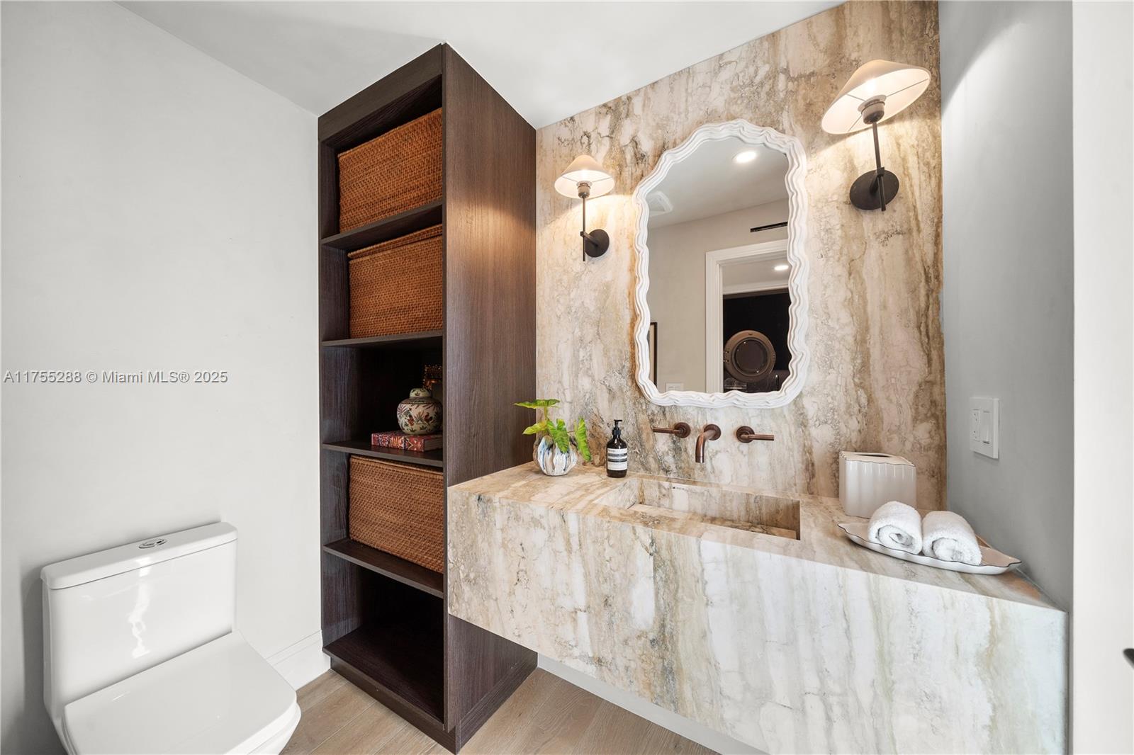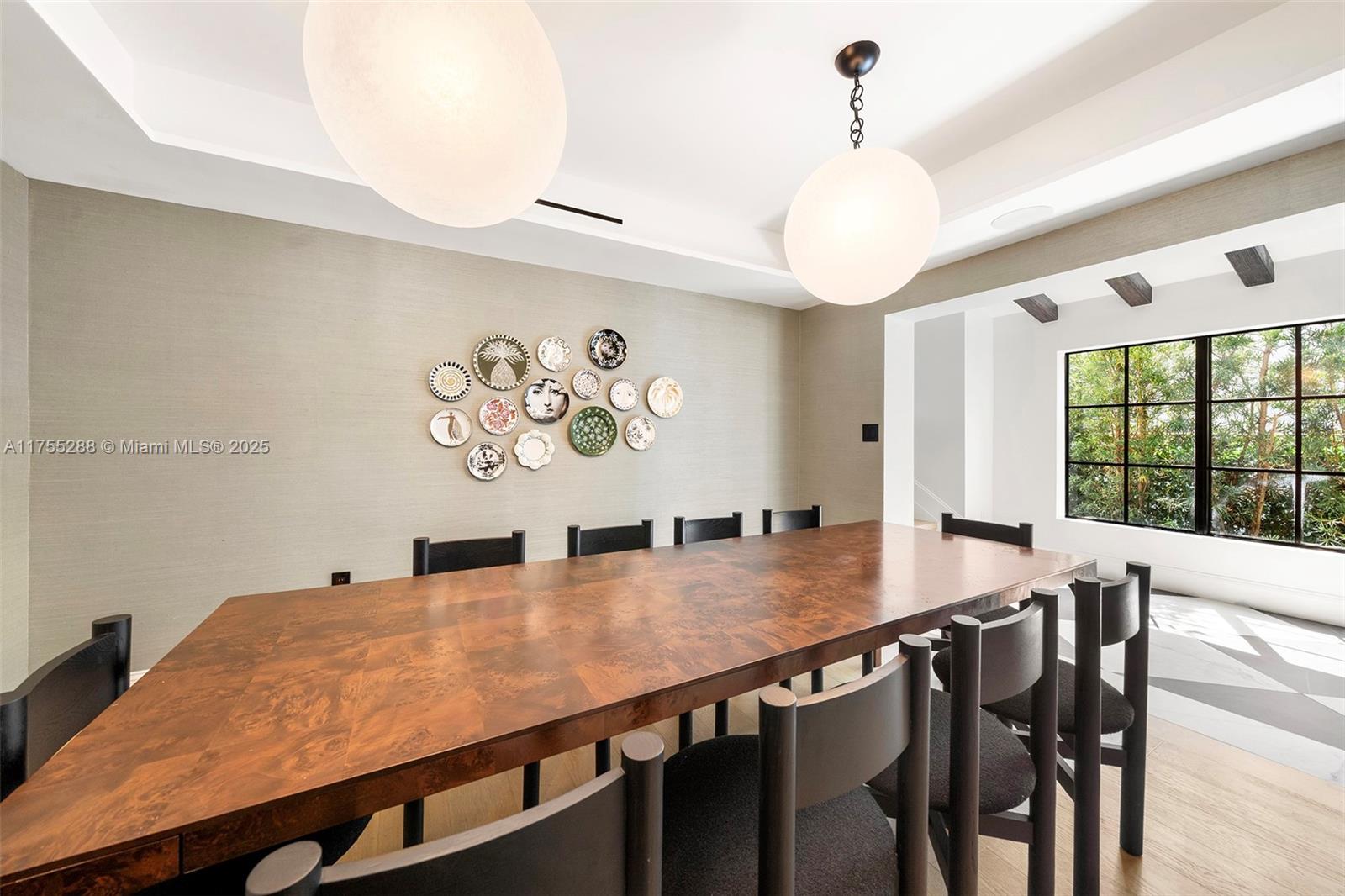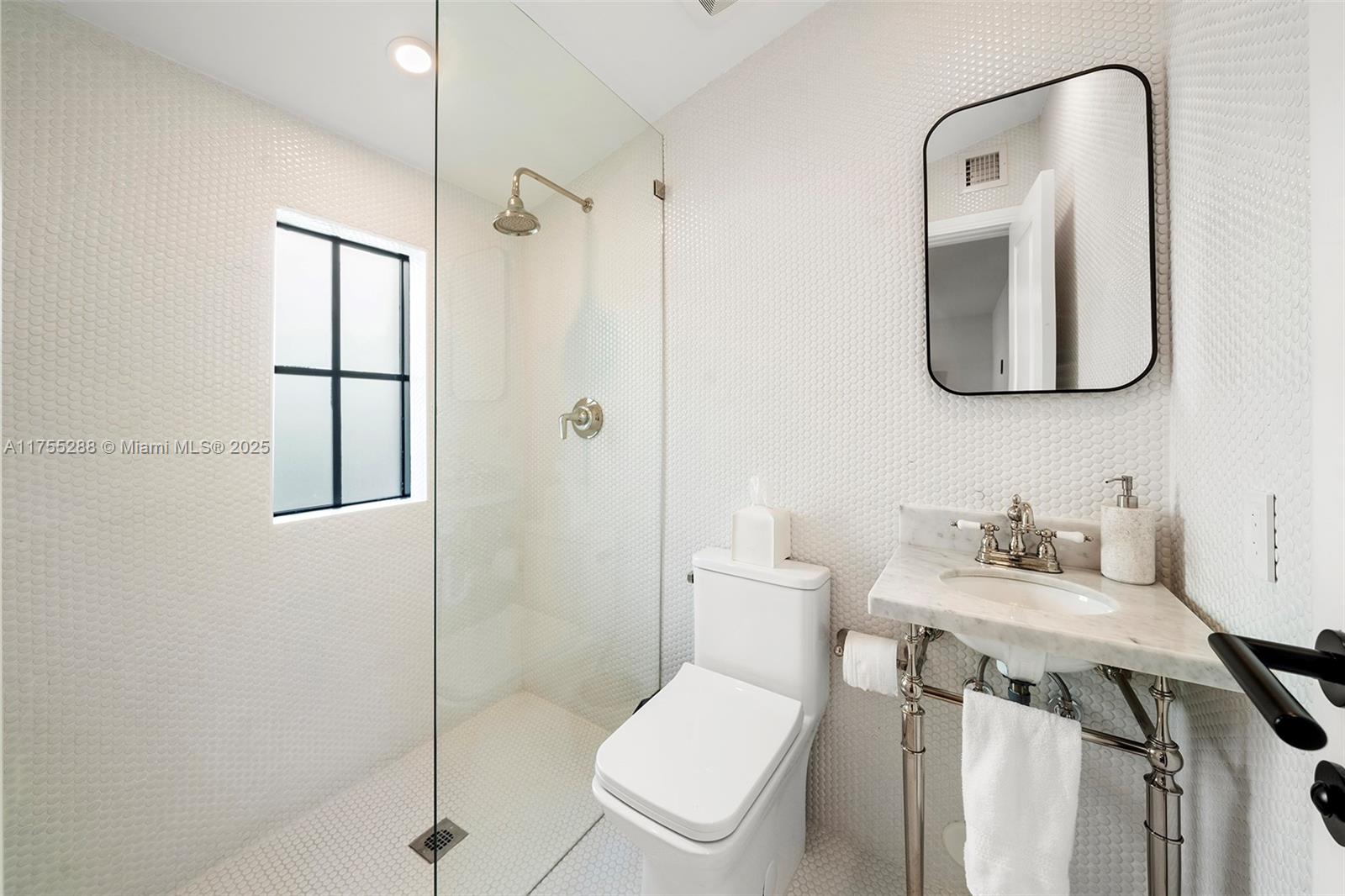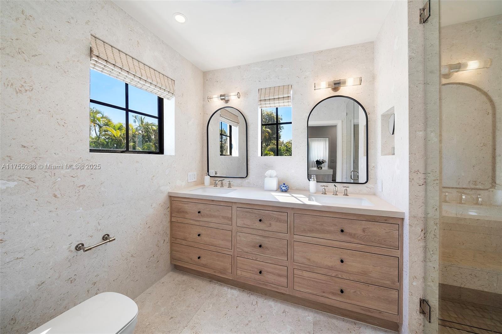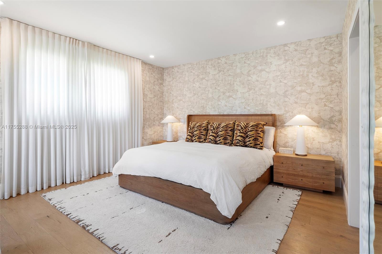 This spacious, fully remodeled two-story home blends modern elegance with high-end finishes. Filled with natural light, it features 3 bedrooms, 3 updated bathrooms, hardwood floors, porcelain tile in the hallway, terrazzo tile in the nursery bathroom, and Florida shellstone in the master bathroom. Redone in 2023 with new electrical, HVAC, plumbing, pool, and flat roof. Luxury touches include Italian doors, Ralph Lauren curtains, Sonos sound, and a marble kitchen island. The quartzite kitchen flows into the dining area, overlooking a fruit tree garden. French doors open to a deck & backyard with a pool and barbecue. Features security cameras, impact windows, landscape lighting, artificial turf & sprinkler system. Near the beach, Bal Harbour & A-rated Bay Harbor Schools.