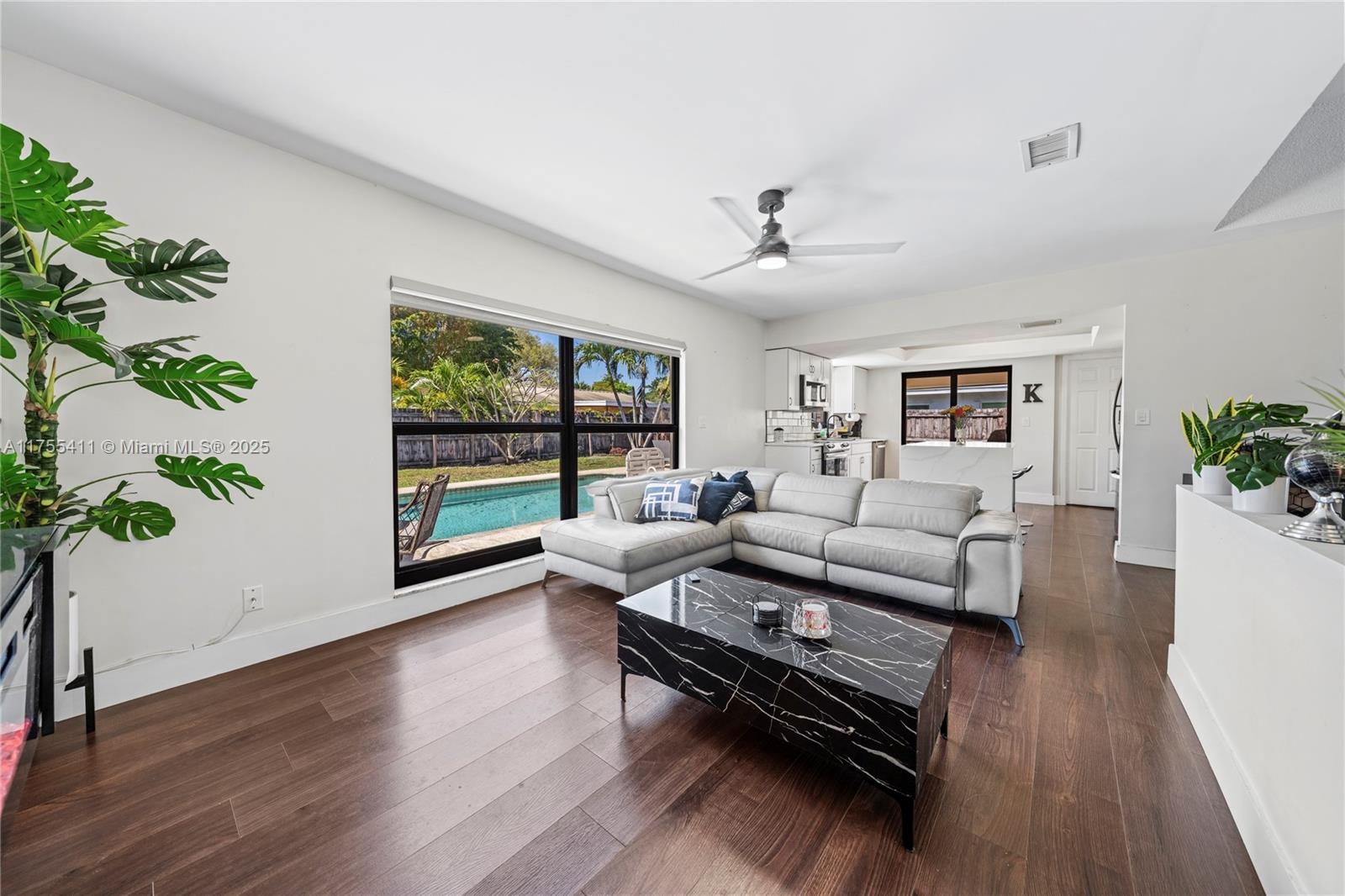 Discover this fully renovated home, where modern style meets comfort. With a brand-new roof, impact-resistant windows and doors, vaulted ceilings, and a spacious open layout, it’s designed for today’s lifestyle. The chef-inspired kitchen comes with top-of-the-line smart appliances and sleek fixtures. The primary bedroom features a walk-in closet and a beautifully designed ensuite.Can easily convert back to a fourth bedroom. Enjoy one of the few homes in the area with a pool, along with plenty of outdoor space for entertaining. Situated in a family-friendly community, it's just a short walk to an “A” rated charter school, and minutes from top grocery stores, dining, shopping, the Coral Square Mall, and the Sawgrass Expressway.