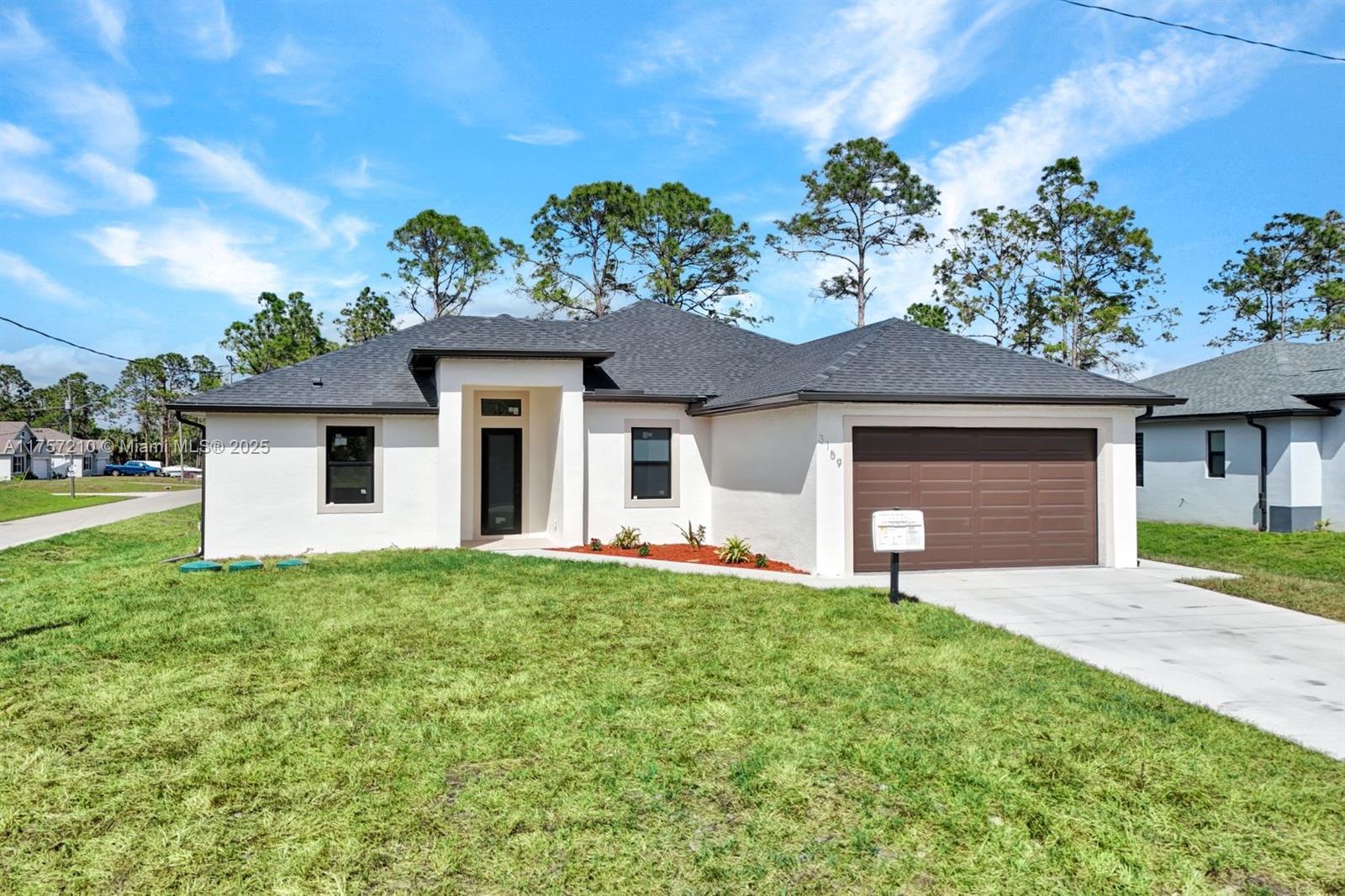 Best priced, biggest and highest quality new construction home in the area! Experience modern Florida living in this new-construction 3+den, 2-bath home near Lehigh Acres’ shopping and dining. Enjoy 1,812 sq. ft. with impact windows/doors, glossy tile floors, and an open layout under tray ceilings. The gourmet kitchen features quartz counters, stainless appliances, soft-close cabinets, and a large island. Retreat to a spacious primary suite with ample closets and a spa-like bath. The covered lanai, equipped with an outdoor sink and prep station, is perfect for gatherings. Located in a rapidly growing area with easy access to new shops, restaurants, I-75, parks, and beaches, this home delivers style, comfort, and incredible value. Seller offering $5,000 credit on a full offer!