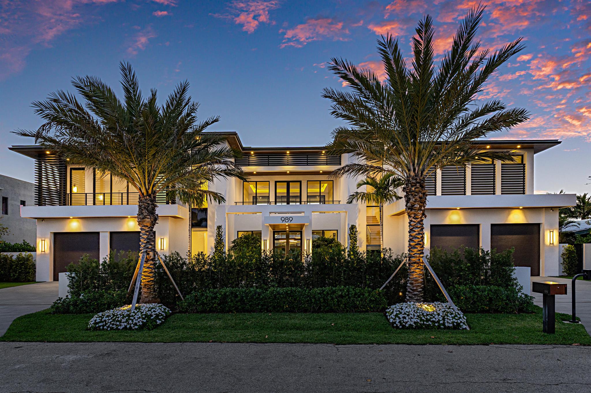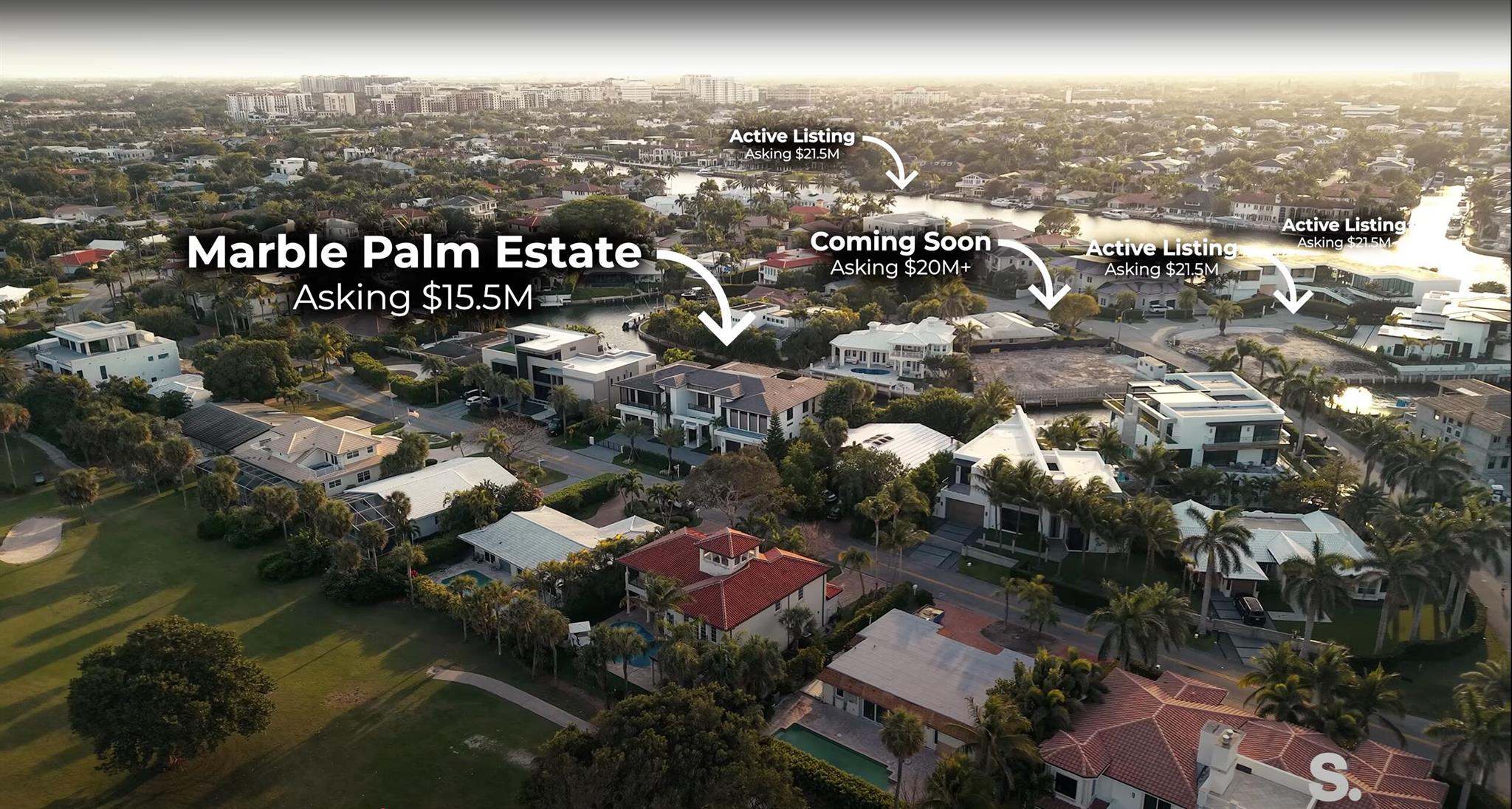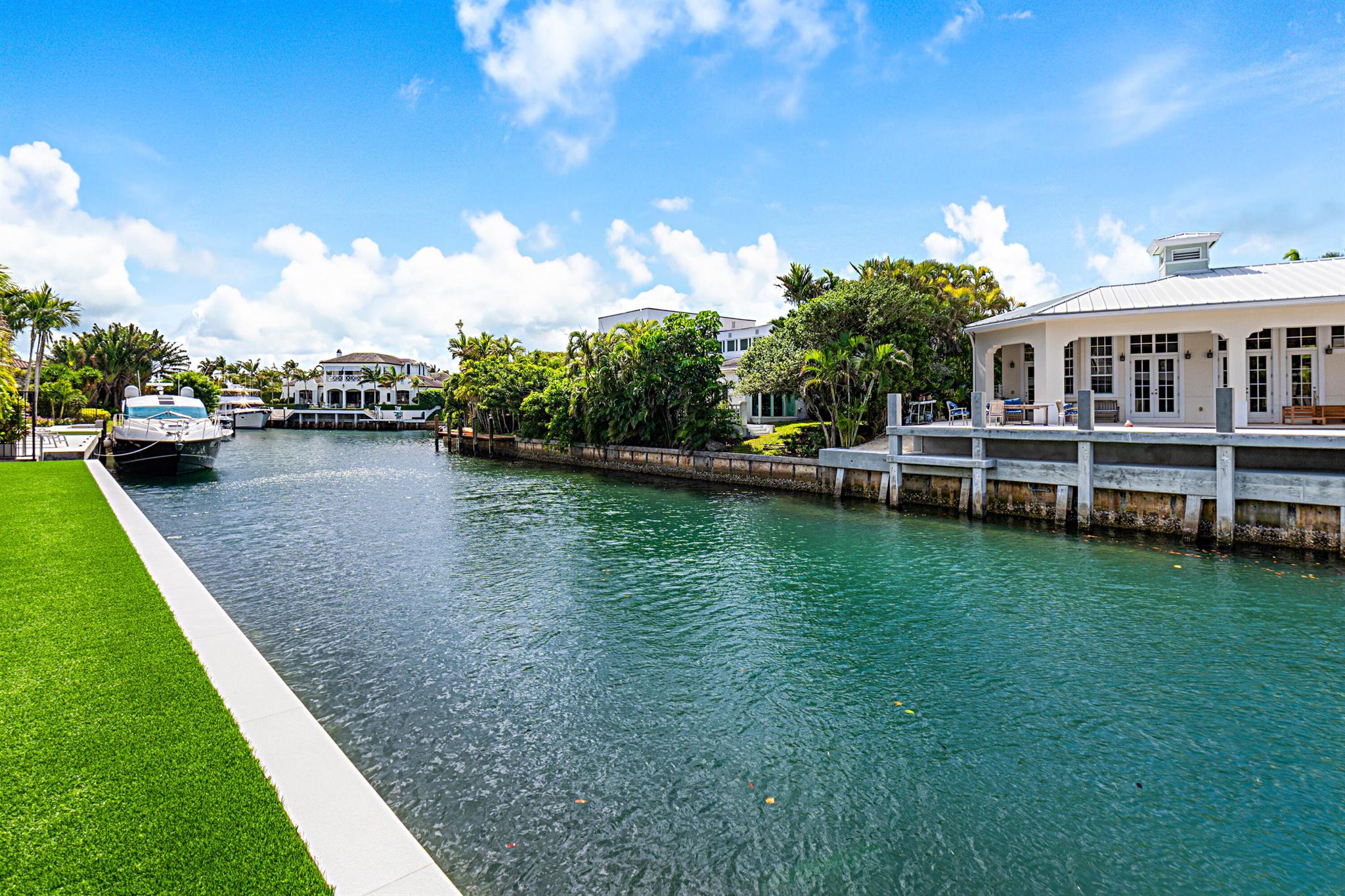 Welcome to The Marble Palm Estate, a British West Indies-inspired masterpiece, just steps from the beach. Nestled on 119 feet of deep-water frontage, this newly constructed estate offers 5 bedrooms, 5.2 baths, and an exquisite blend of sophisticated design and cutting-edge technology.Upon entry, you are greeted by a lovely living room featuring stunning Azure Blue Quartzite slabs around the gas fireplace and TV, adding a touch of natural beauty and elegance to the space. The open concept seamlessly flows into the gourmet chef's kitchen, which is framed by a beautiful Cypress wood ceiling, creating a warm and inviting atmosphere. The kitchen features bar seating for 5/6, offering an ideal spot for casual dining or entertaining. Outfitted with top-tier Wolf & Sub-Zero appliances, it is