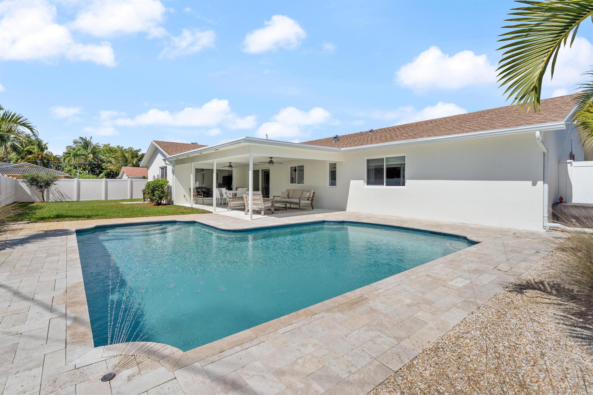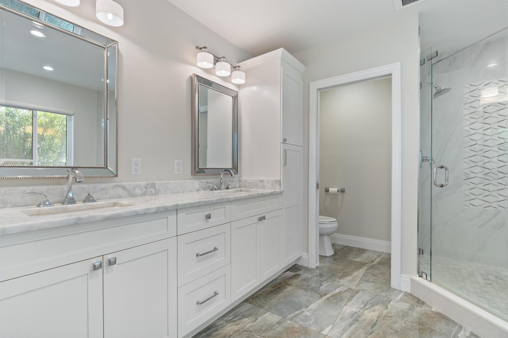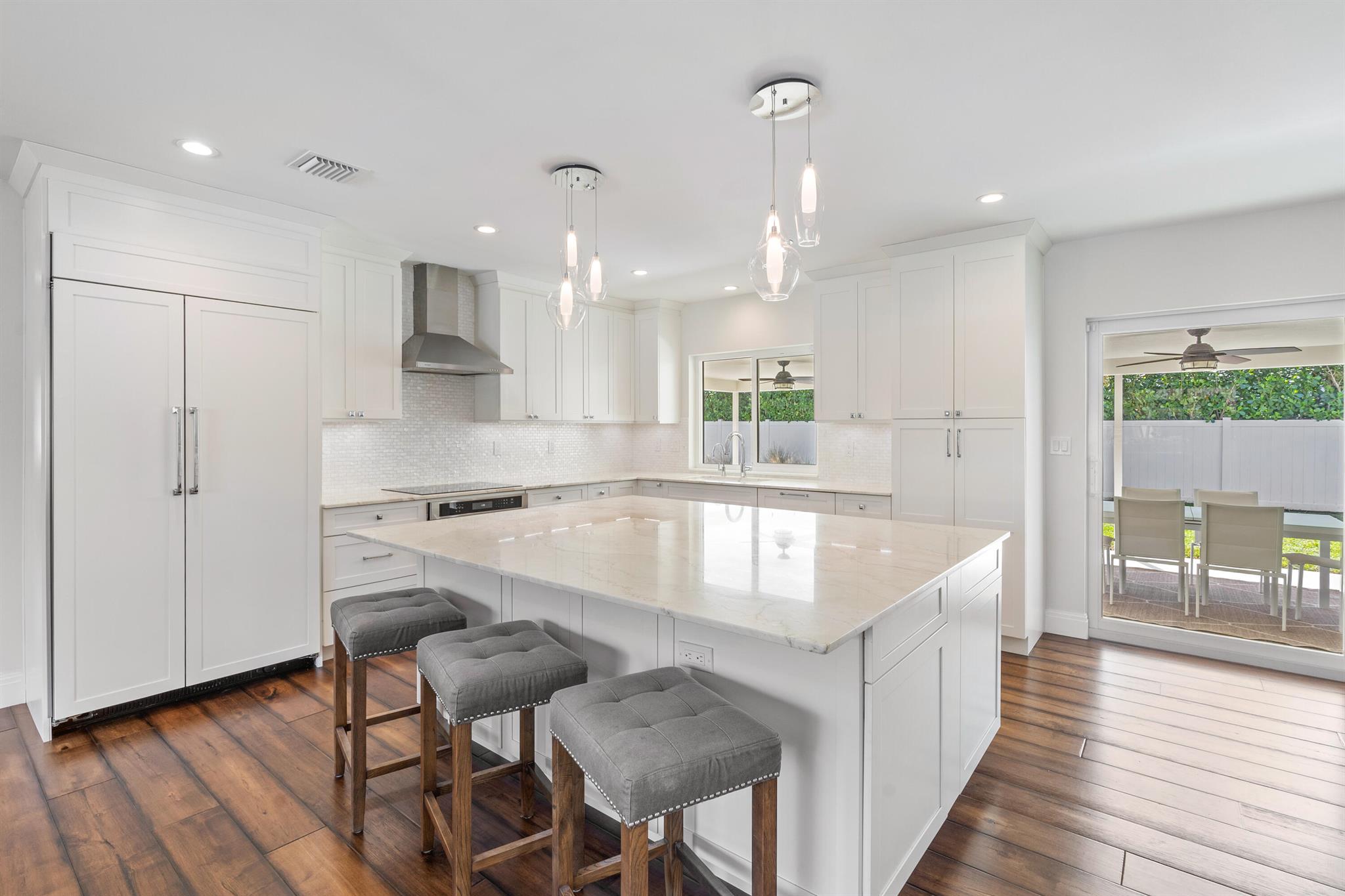 Welcome to this exquisite 4 bedroom, 4 1/2 bathroom single-family home, where each of the bedrooms is complemented by its own private ensuite. The heart of the home is the chef's kitchen, featuring a large island, built-in refrigerator, induction cooktop and a unique filtered, chilled water system right at the sink. The primary suite features a spa-like ensuite that includes a generous walk-in shower, separate soaking tub, and a walk-in closet with custom built-ins for maximum organization. A separate media room with sliders to the patio and additional storage completes this home, offering even more space to entertain or unwind. The expansive yard offers a sparkling pool, covered patio, and plenty of space for play. Have peace of mind with the energy efficient impact windows. Roof 2017