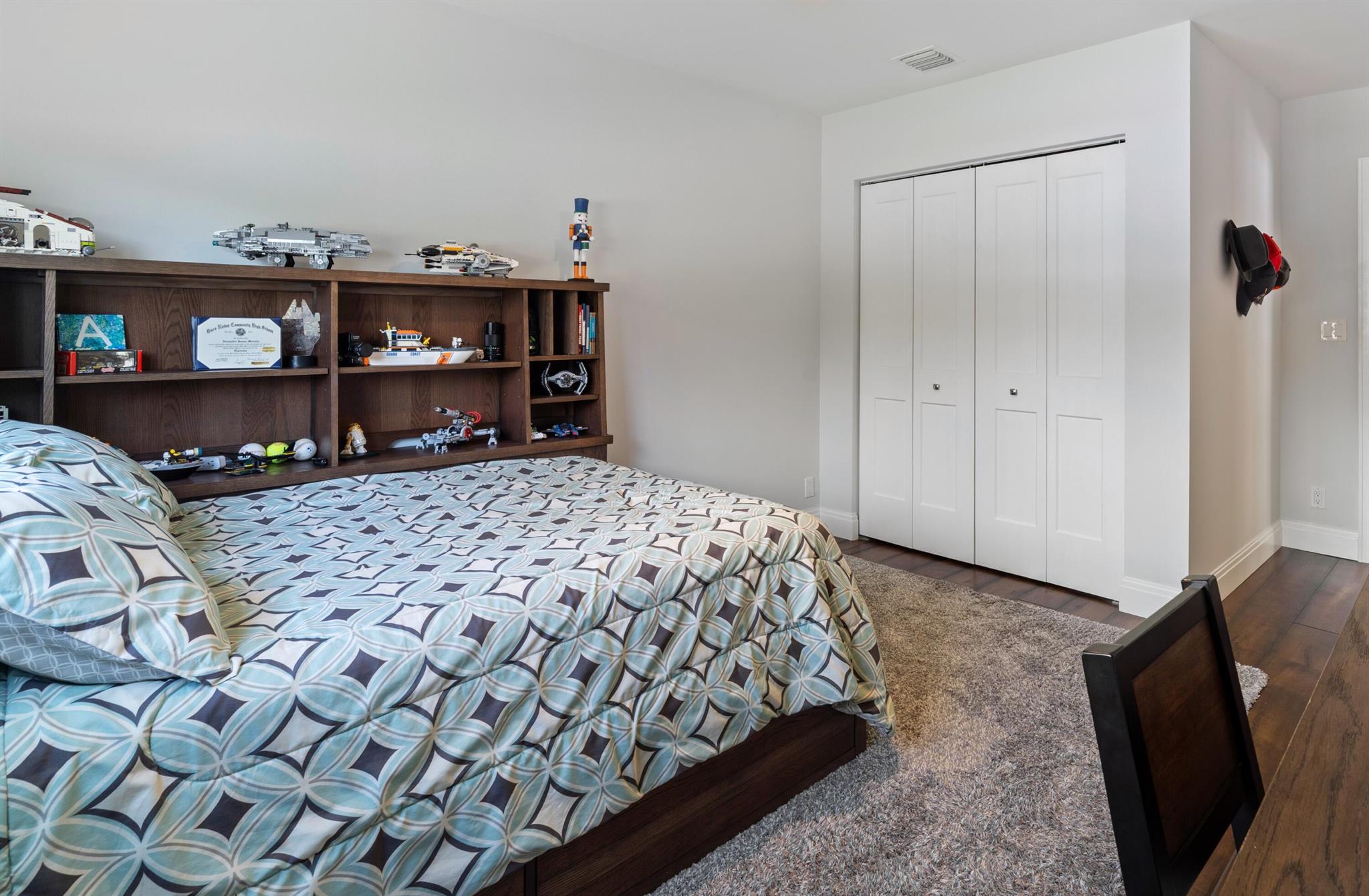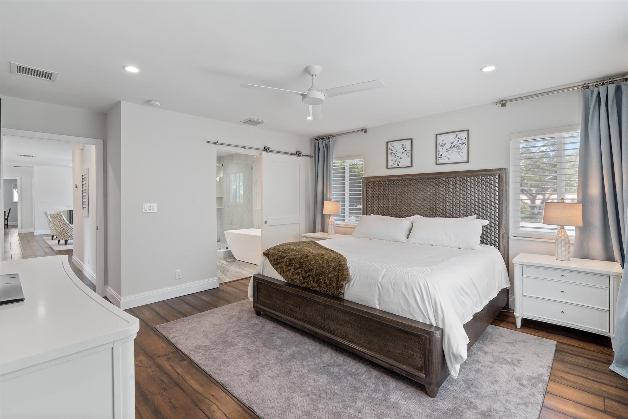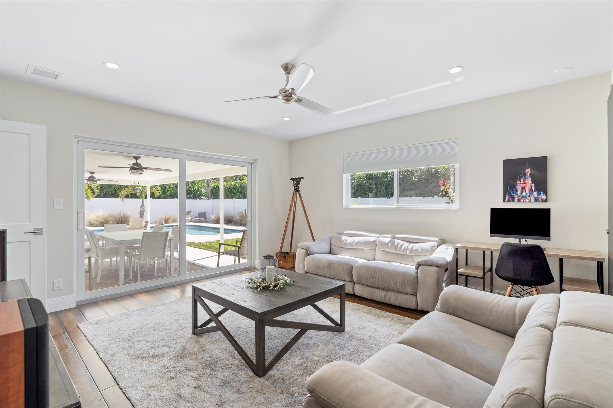 Welcome to this exquisite 4 bedroom, 4 1/2 bathroom single-family home, where each of the bedrooms is complemented by its own private ensuite. The heart of the home is the chef's kitchen, featuring a large island, built-in refrigerator, induction cooktop and a unique filtered, chilled water system right at the sink. The primary suite features a spa-like ensuite that includes a generous walk-in shower, separate soaking tub, and a walk-in closet with custom built-ins for maximum organization. A separate media room with sliders to the patio and additional storage completes this home, offering even more space to entertain or unwind. The expansive yard offers a sparkling pool, covered patio, and plenty of space for play. Have peace of mind with the energy efficient impact windows. Roof 2017
