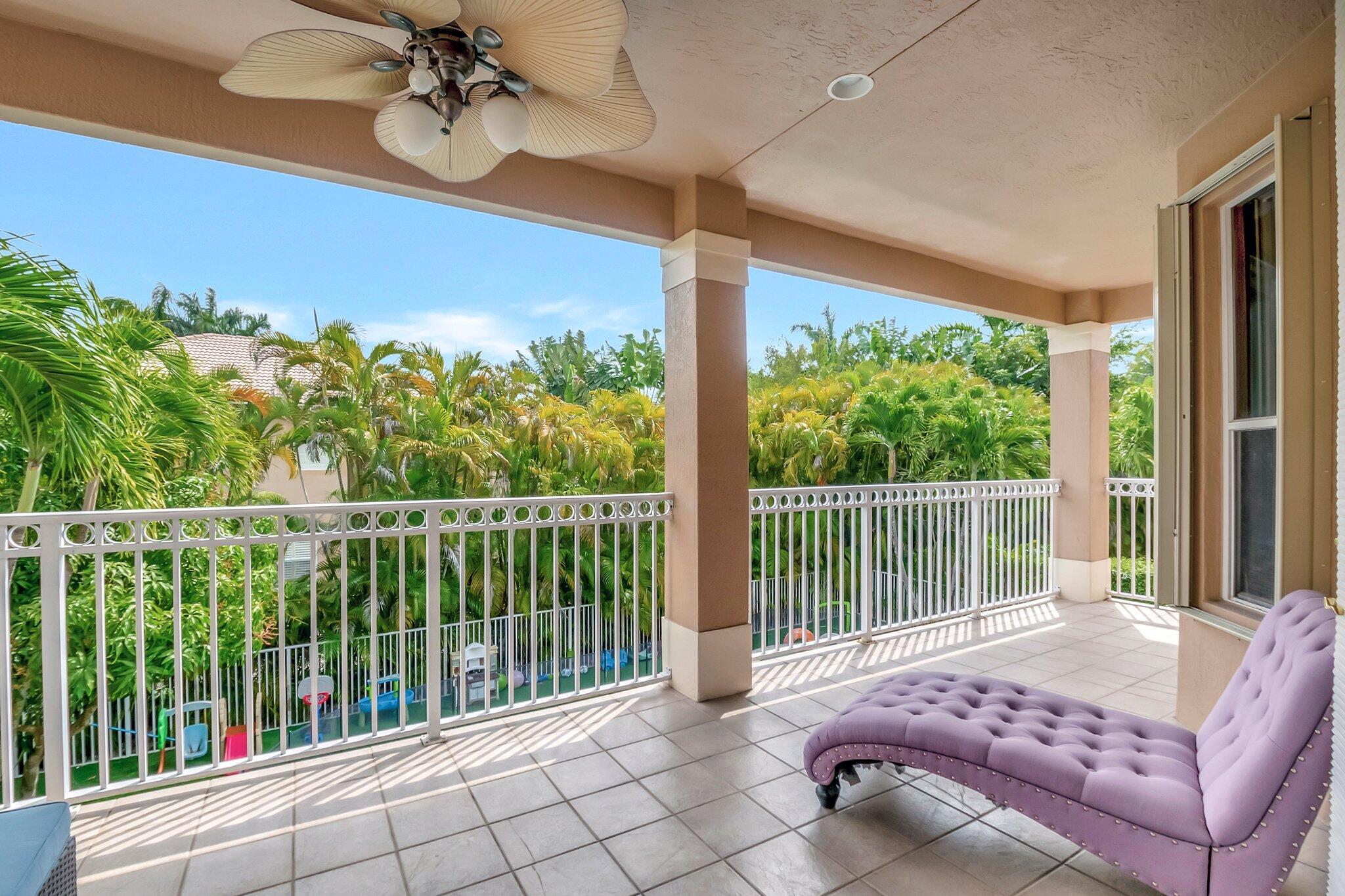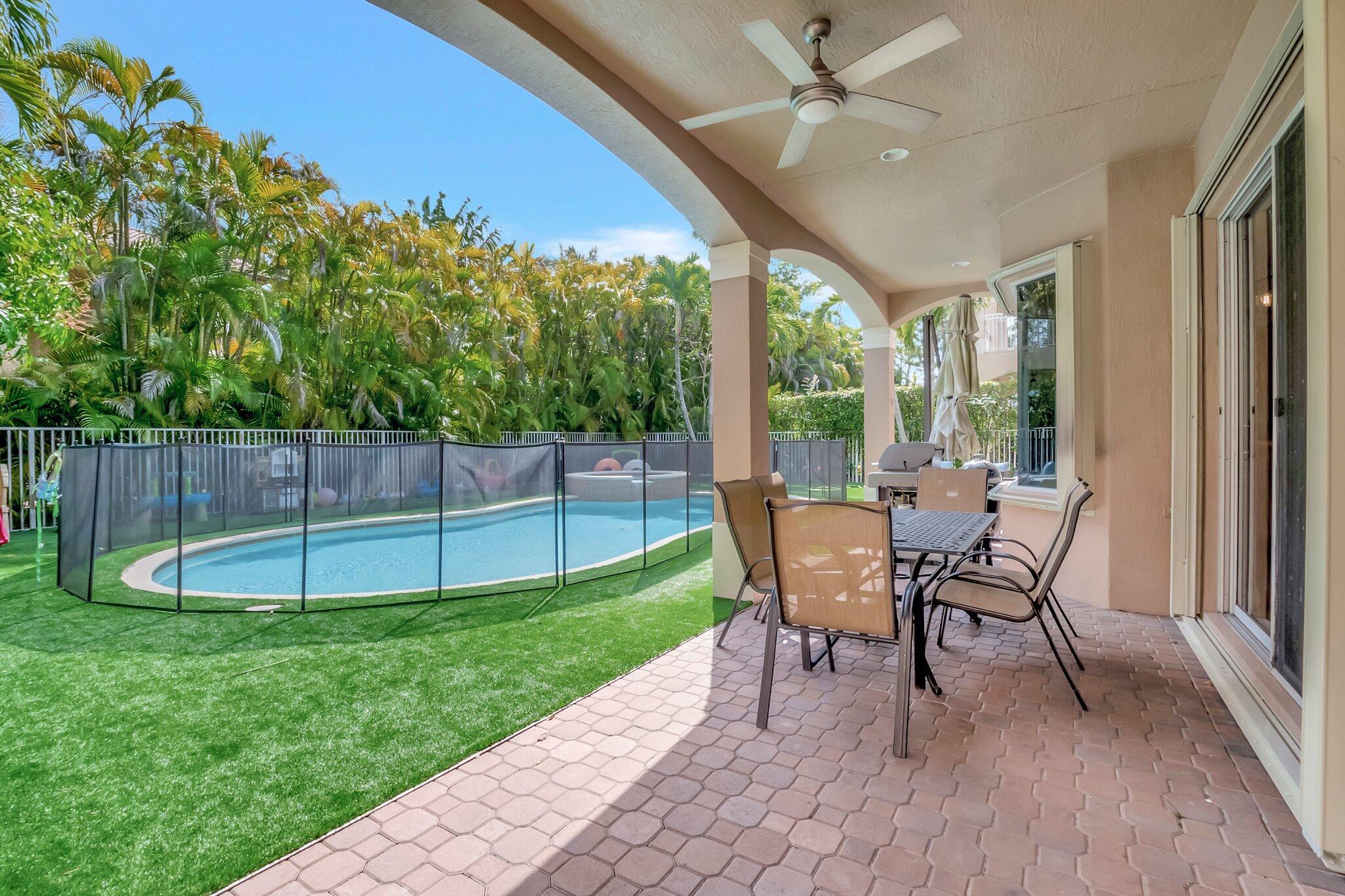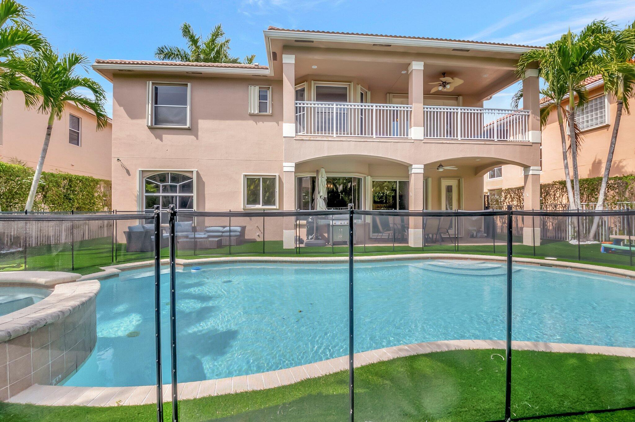 Beautiful Castellana model offers 6 bedrooms, 5.1 baths, & 3-car garage on a private and secluded homesite. The park and playground are close by. Ceramic flooring throughout the living area & beautiful engineered wood flooring on the 2nd floor. The kitchen features granite counter tops, dishwasher, double oven & a complete walk-in pantry. A 2nd dishwasher is in the laundry room. The garage has an additional full size refrigerator & freezer which are included in the purchase. The upstairs primary suite has a sitting area, his & her bath & a covered balcony overlooking the pool. The closets are fully built-out. Crown molding detailing is in every bedroom. The backyard has a heated pool with salt-water chlorination & a waterfall spa. Artificial turf completes the tropical feel.