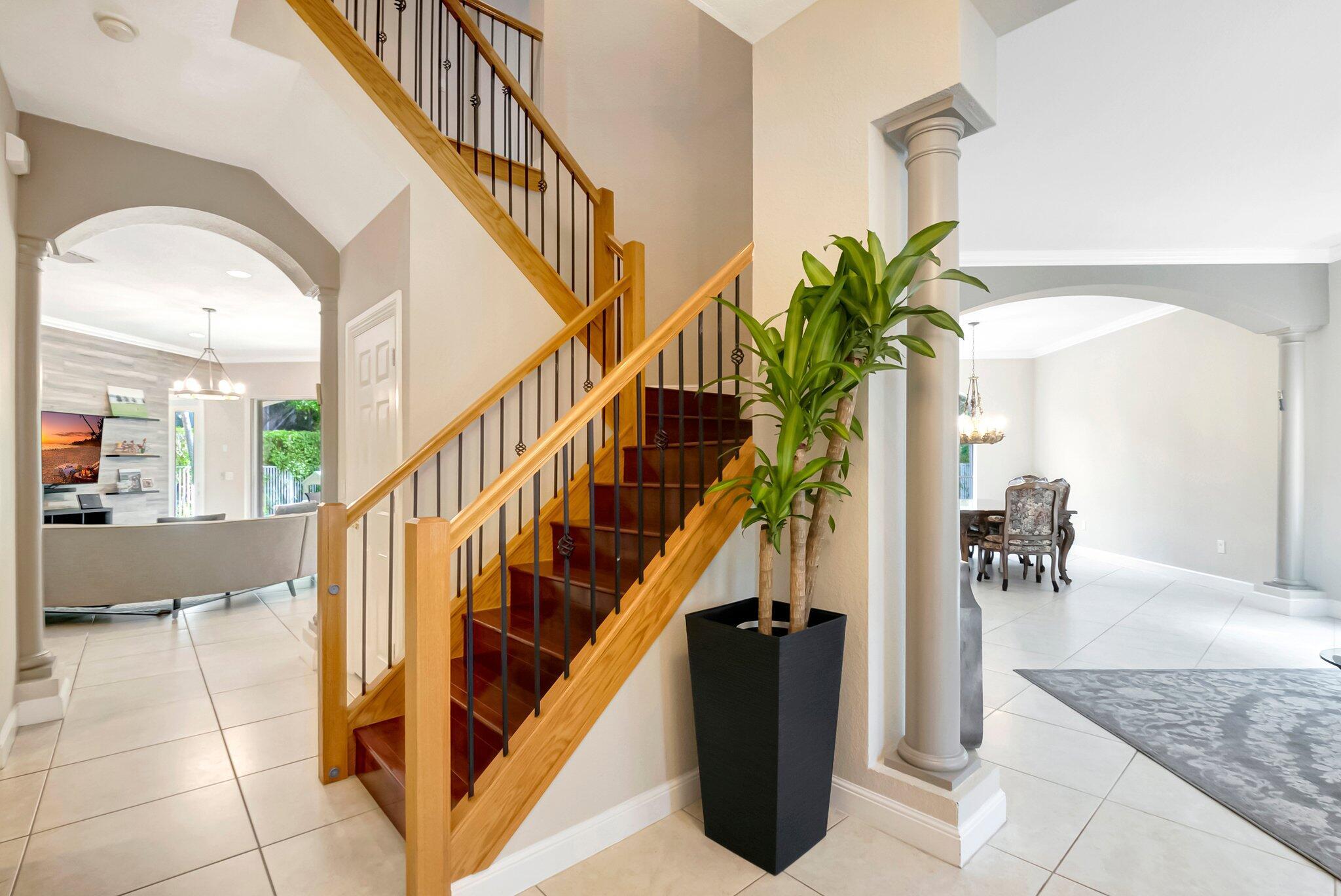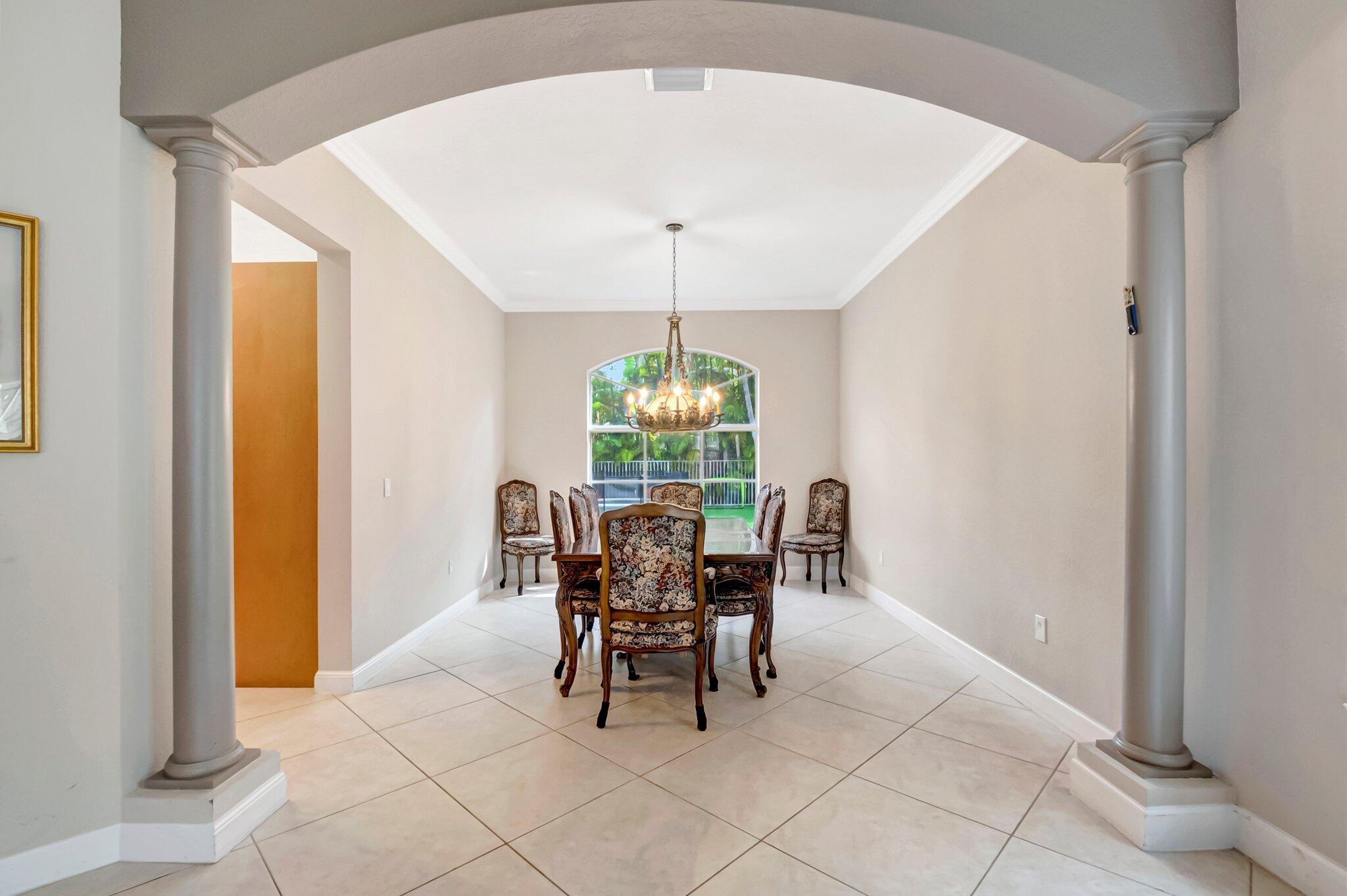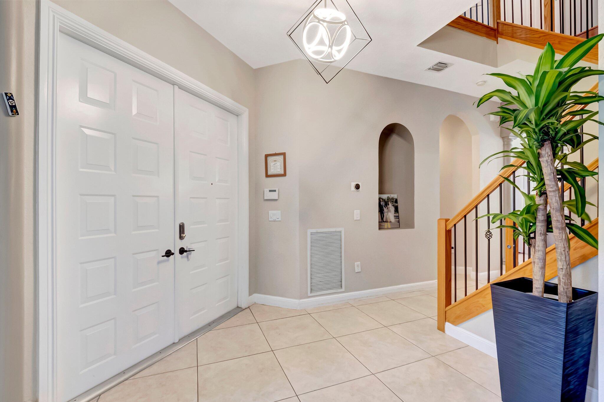 Beautiful Castellana model offers 6 bedrooms, 5.1 baths, & 3-car garage on a private and secluded homesite. The park and playground are close by. Ceramic flooring throughout the living area & beautiful engineered wood flooring on the 2nd floor. The kitchen features granite counter tops, dishwasher, double oven & a complete walk-in pantry. A 2nd dishwasher is in the laundry room. The garage has an additional full size refrigerator & freezer which are included in the purchase. The upstairs primary suite has a sitting area, his & her bath & a covered balcony overlooking the pool. The closets are fully built-out. Crown molding detailing is in every bedroom. The backyard has a heated pool with salt-water chlorination & a waterfall spa. Artificial turf completes the tropical feel.