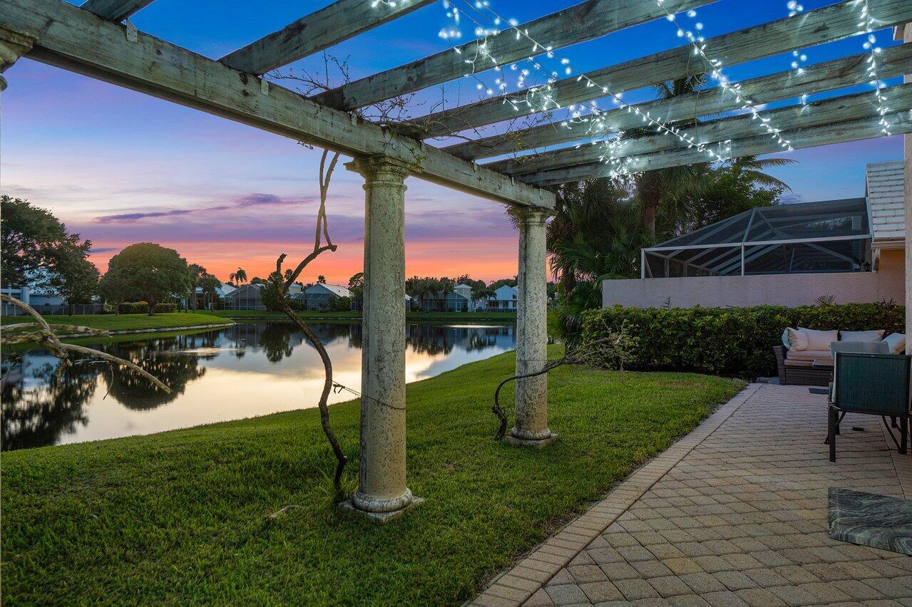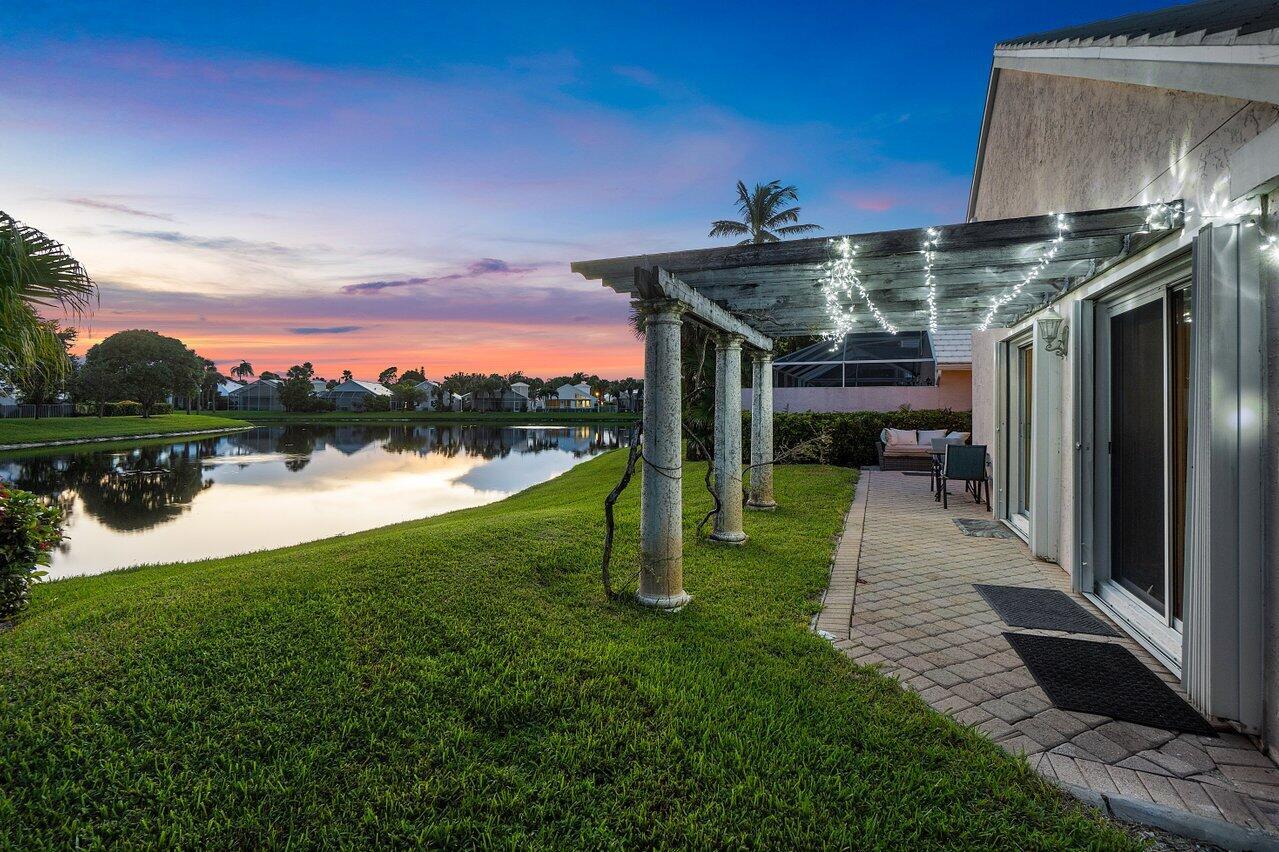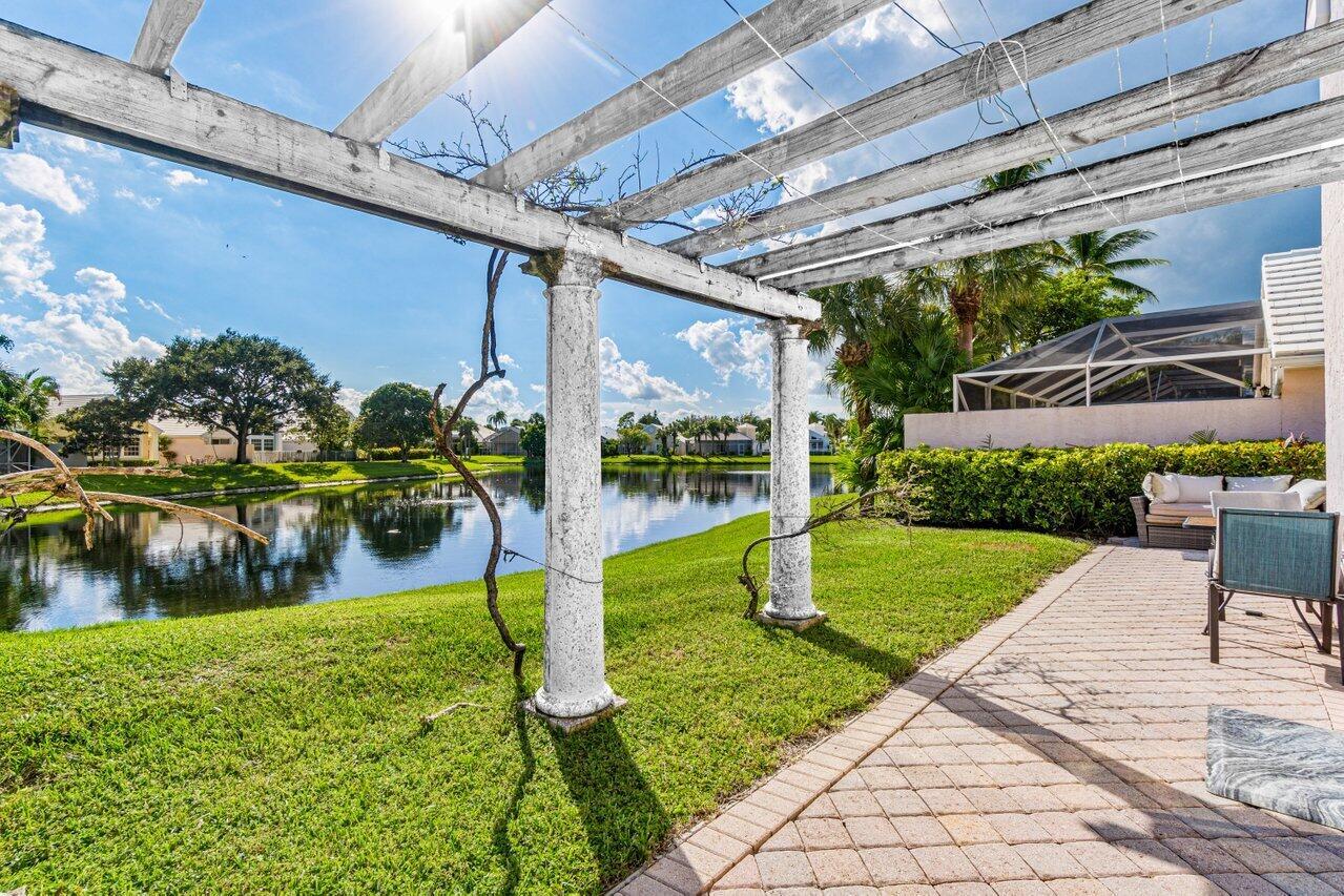 This beautifully designed one-story home, nestled at the end of a cul-de-sac in the desirable Breakers West community, offers exceptional privacy and breathtaking lake views. With a recently replaced roof, a whole-house generator, and tastefully updated kitchen and bathrooms, this home is move-in ready. Best of all, no membership is required, and it welcomes residents of all ages. 3rd bedroom being used as a den Step inside to an inviting open floor plan with vaulted ceilings and abundant natural light, creating a warm and airy ambiance. Outside, two spacious brick paver patios, complemented by an elegant pergola, provide the perfect setting for effortless outdoor entertaining. This home seamlessly blends comfort, style, and functionality--your perfect lakeside retreat await