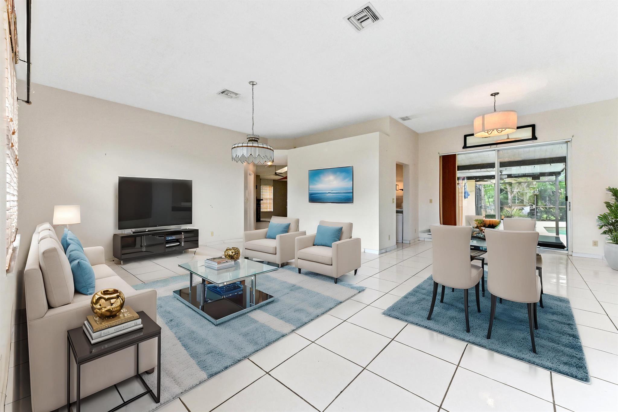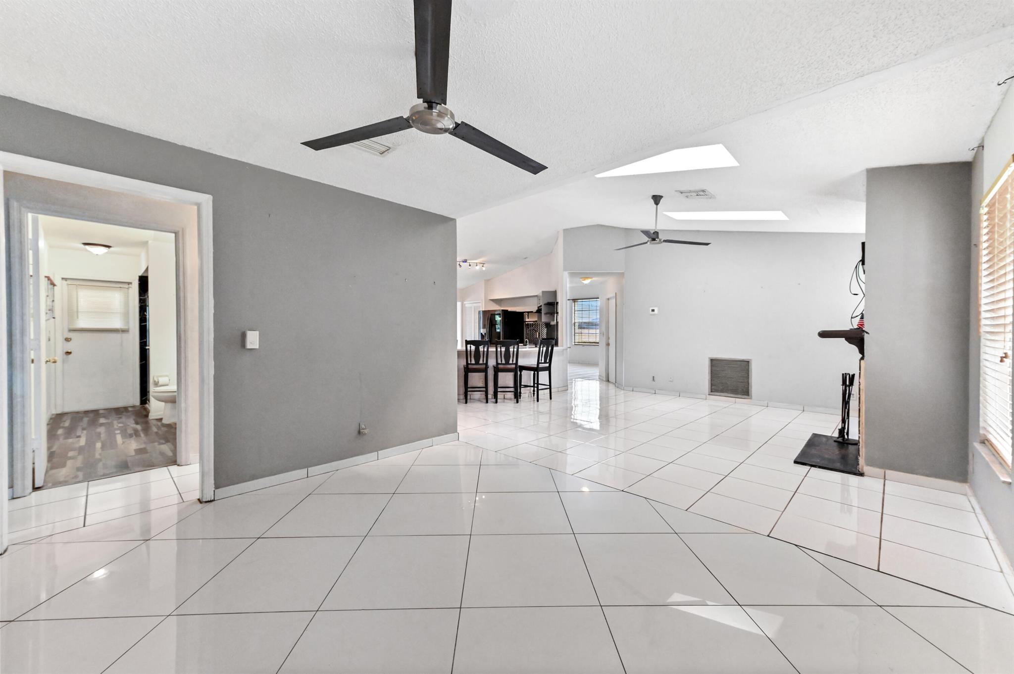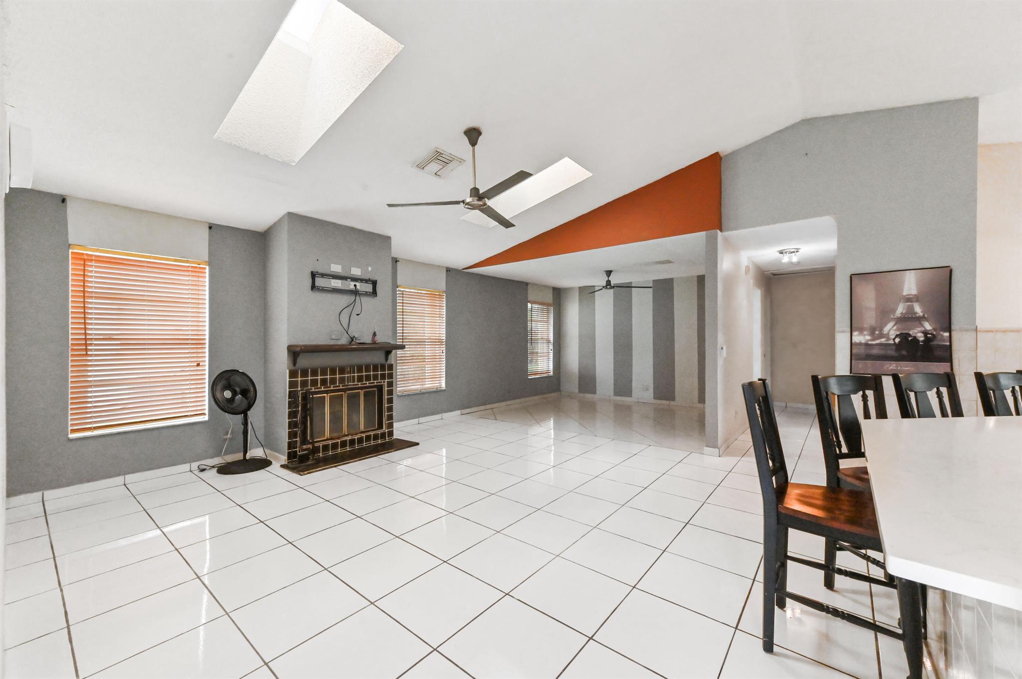 Welcome to this charming 1-story home in the desirable Woods Walk neighborhood, offering canal views and plenty of space to relax and entertain. Boasting 3 bedrooms plus den and 2 bathrooms, this well-maintained home features 2202 sqft of living space, perfect for comfortable family living.As you step inside, you'll be greeted by the cozy entry-level living area, complete with a decorative fireplace that adds warmth and character to the space. The family and dining areas provide an open, inviting environment for gatherings. The spacious kitchen includes ample cabinetry and a convenient bar, making meal prep and entertaining a breeze.