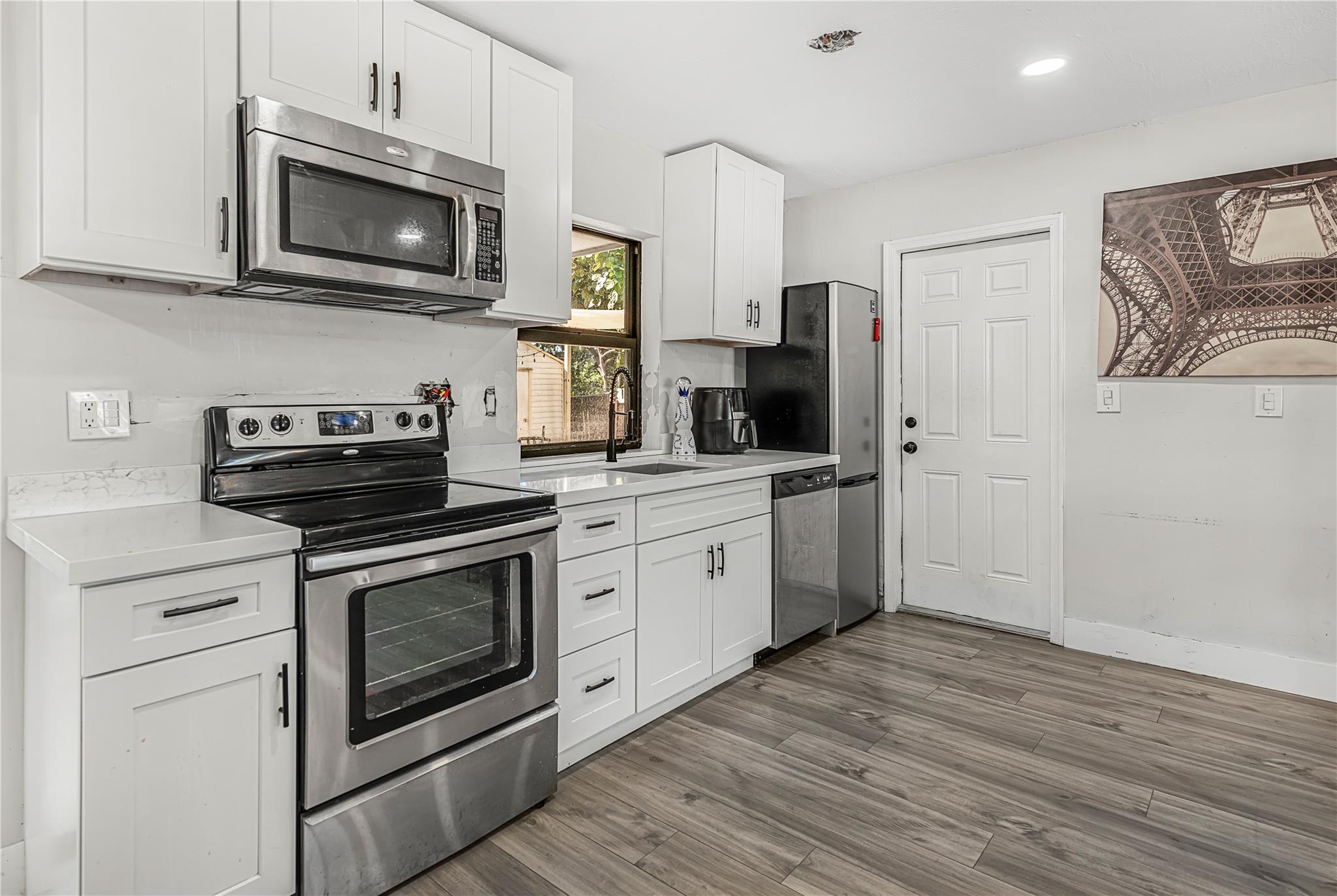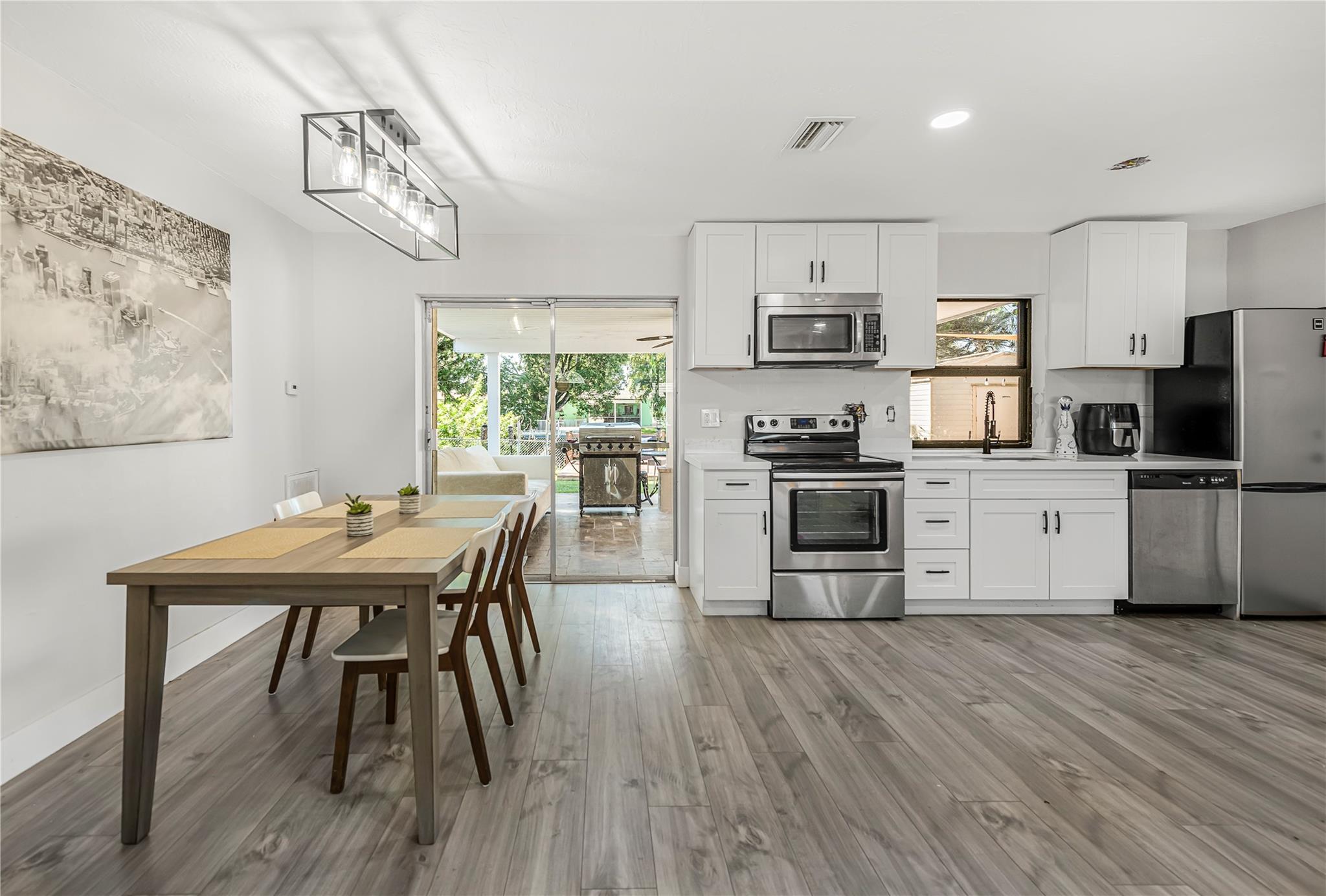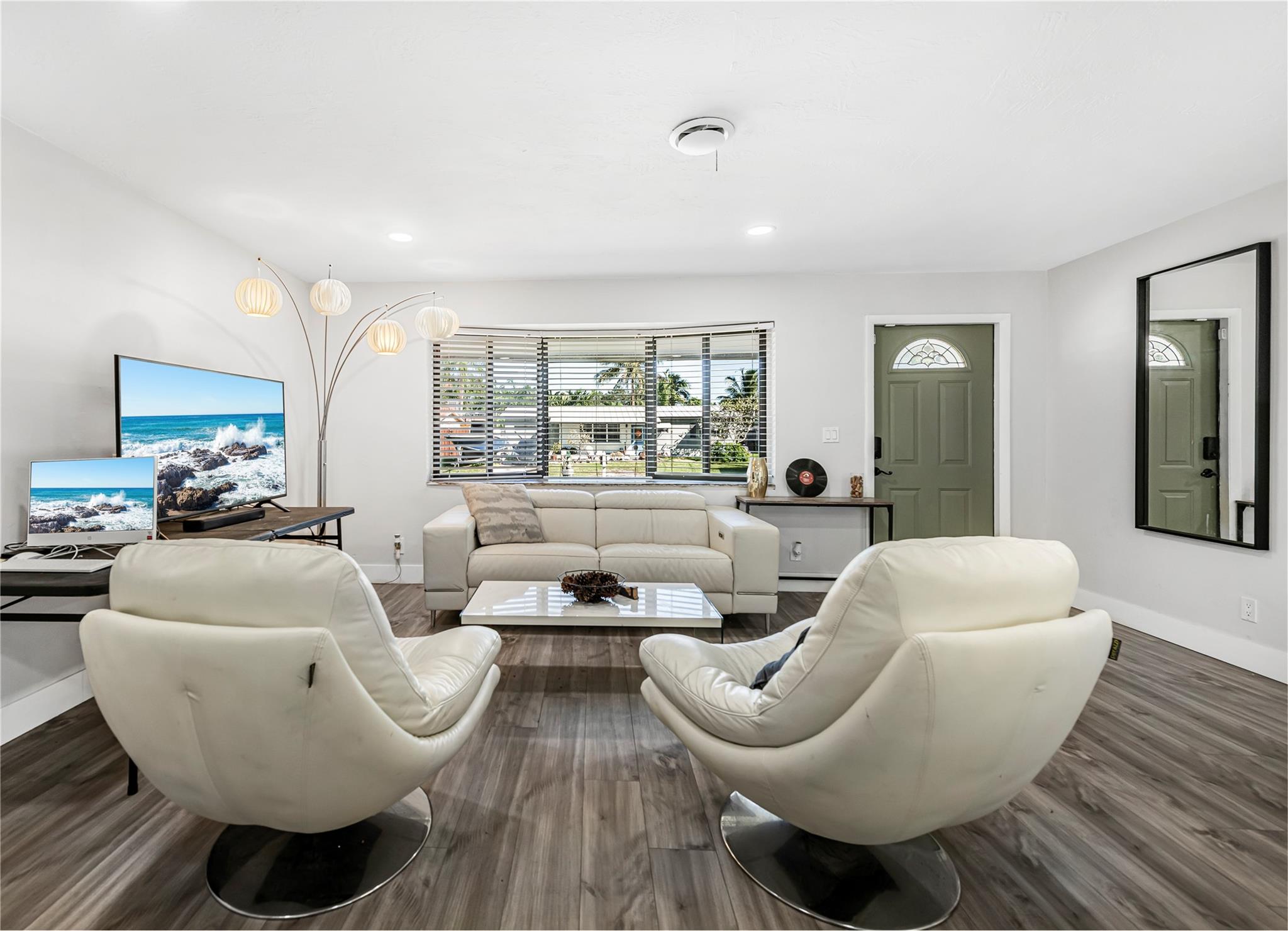 TURN KEY HOME ready for you! Charming and fully remodeled 2 bedroom, one bath home with open living concept and modern upgrades throughout. This beautifully updated home features newer roof, impact windows, fresh paint, new baseboards, stylish new floor, sleek recessed lighting. The kitchen boasts brand new cabinets and fridge while the renovated bathroom offers a contemporary feel. Enjoy waterfront living with direct cancel access and a brand new dock - perfect for boating fishing or relaxing by the water. Move in ready and waiting for you.