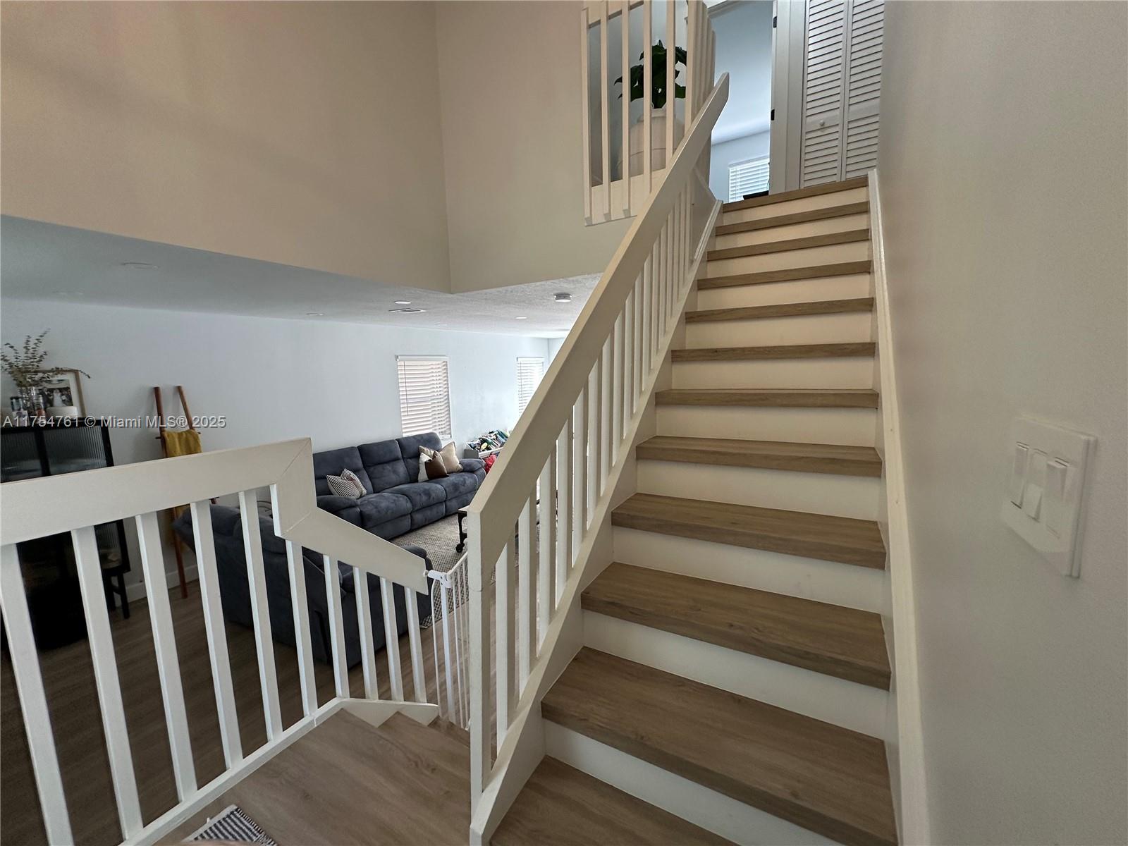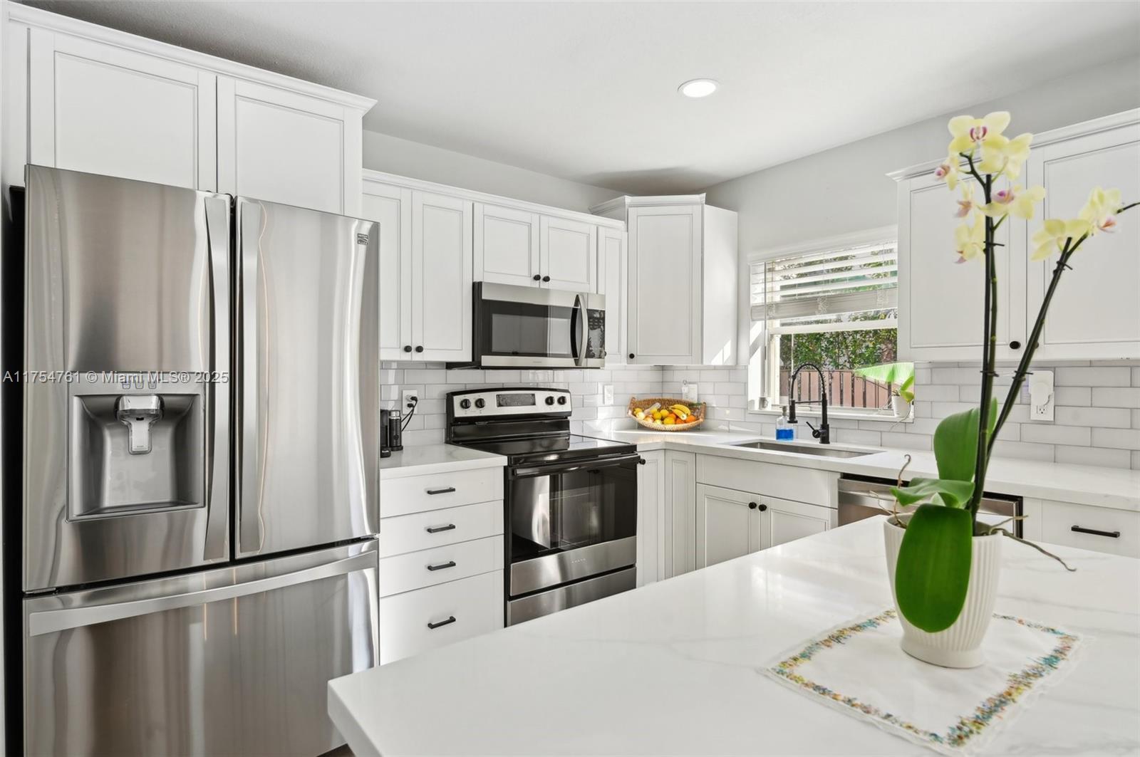 Incredible opportunity to own this 2 story 3 Bed 2.5 Bath home in desirable Fountain Spring in Plantation. Features of home include updated Kitchen with island and quartz counters, updated half bath and secondary bath. Freshly panted garage walls and epoxy floors. Washer/Dryer, water heater, and A/C less than 1 yr old! Roof less than 7 yrs old! Hurricane shutters on all windows and sliders. New stainless steel stove and microwave. Spacious primary suite with walk-in closet featuring built ins and en-suite bathroom with dual sinks and separate tub and shower. Large private fenced in yard with travertine patio and fruit trees. HOA covers: sprinklers, front lawn care, exterior painting and pressure washing. Community has a clubhouse with pool and gym. Close to highways, shopping, and dining.