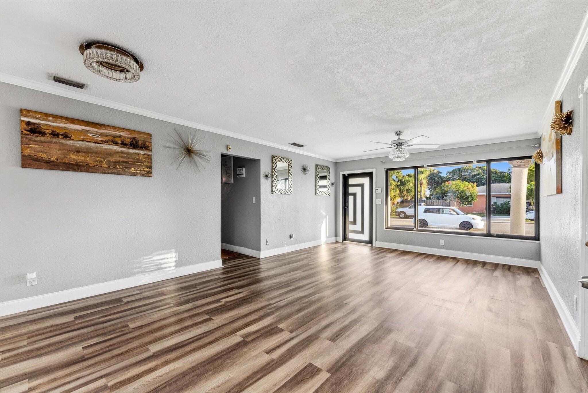 This Large 10,000 sq ft Corner Lot Home is Clean, Bright, Spacious and Located steps away from Downtown Lake Park, where there's Family entertainment, Theatre, Eateries, Shopping and Waterside-Intercoastal Kelsey Park. 651 Foresteria is perfect for a Large Family or Wellness Facility offering 4 bed 3bath has a 2.5 car garage plus mini bonus space. Could covert to separate living quarters. Improvements: Roof 2023, AC 2025, Impact W&D 2025, Water Heater 2022, New Fans, Granite Counter Tops, Recess lighting and Chandeliers.Exterior: Extended Paver Patio, Deep well water sprinkler system, multiple power sources in yard for outdoor decor plug ins, 1 avacado, 2 mango, 10 Palm trees, Sprinkler and Security camera.