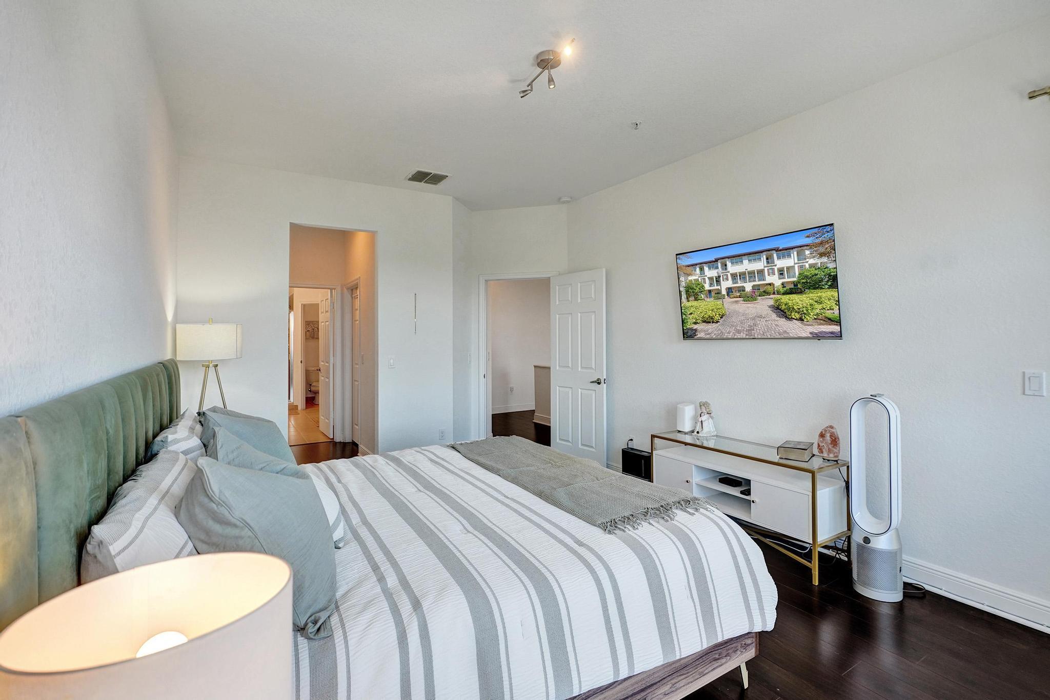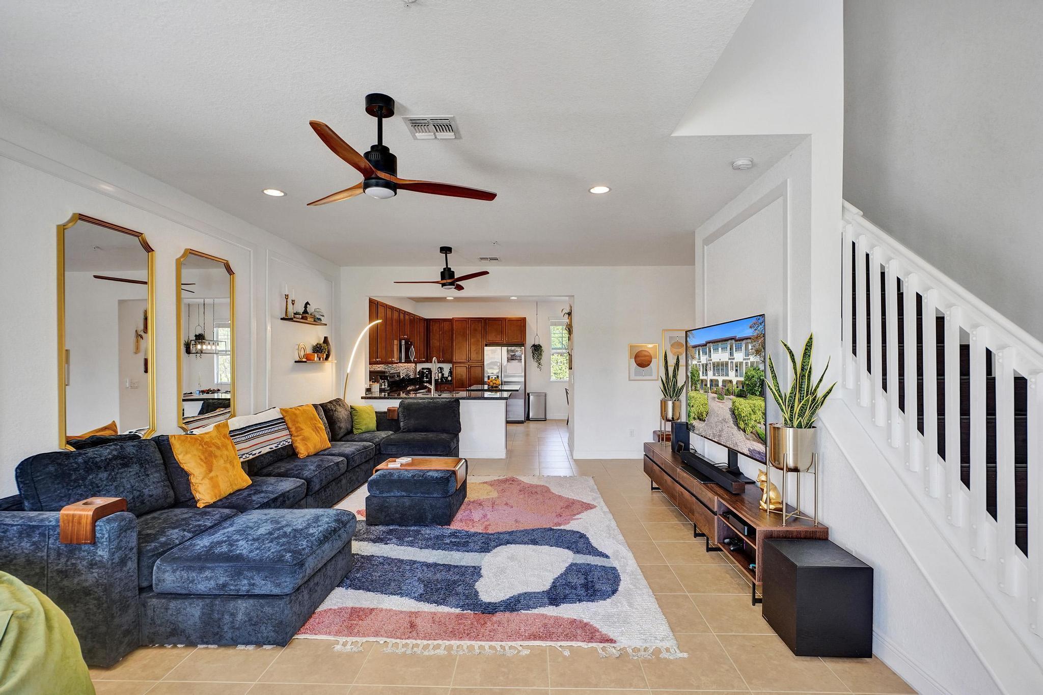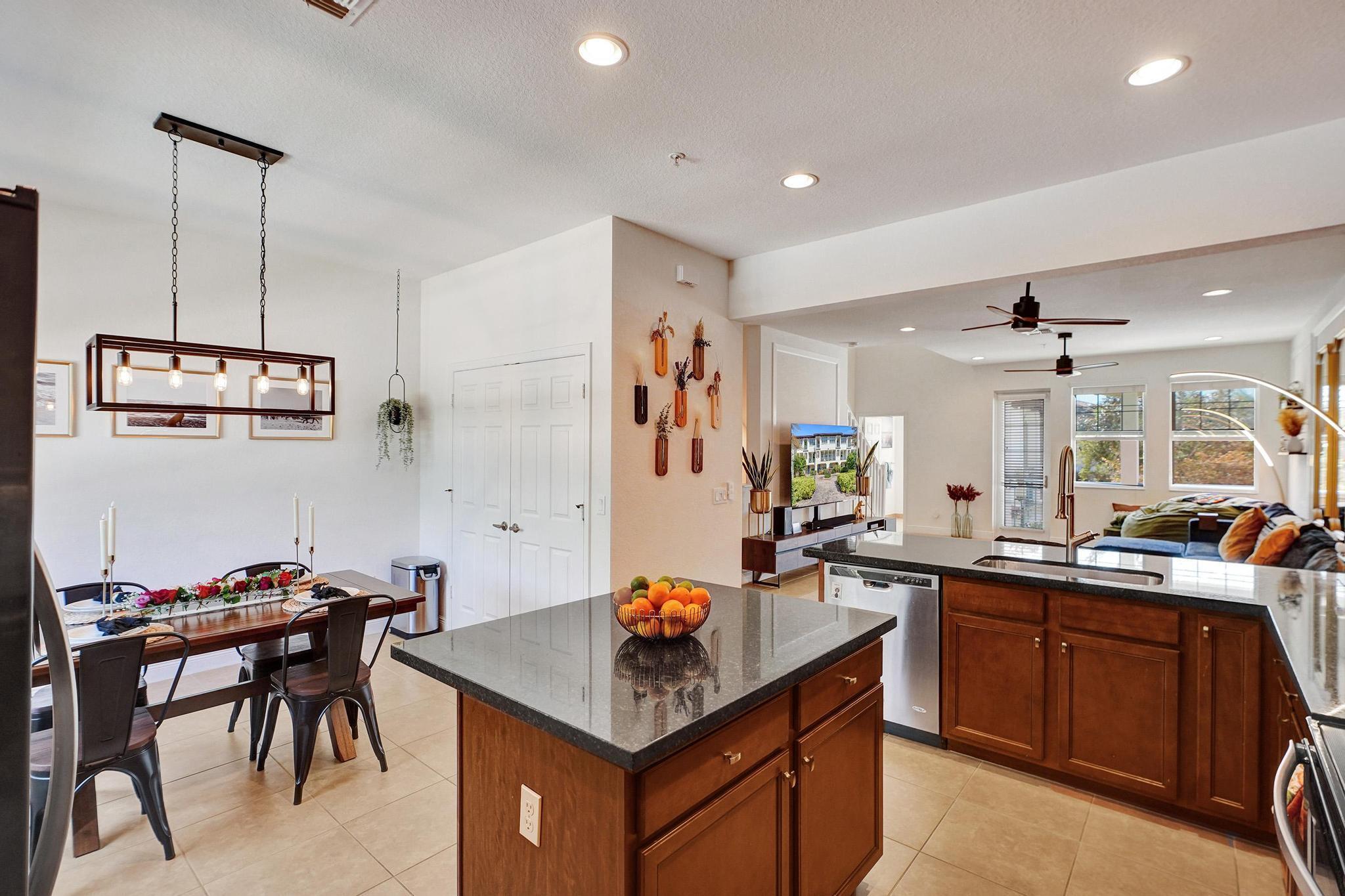 Nestled in the heart of Montclair, a coveted gated community, this pristine tri-level townhome offers 3 BR, 3.1 BA, and a 2-car garage (with EV Charger) with almost 2,100 sqft under air; one of the largest homes in the community. The gourmet kitchen boasts 42'' solid wood cabinetry, a large island, granite counters, and SS appliances.High-impact doors and windows provide security and peace. Enjoy two private balconies--one off the main living area, another off the primary suite--overlooking a serene courtyard and play area.Voluminous ceilings with sprinklers on each floor, two en-suite guest bedrooms, ample storage, wood flooring upstairs, and tile throughout. Low HOA includes cable, internet, clubhouse, gym, pool & walking paths. Schedule your showing today!