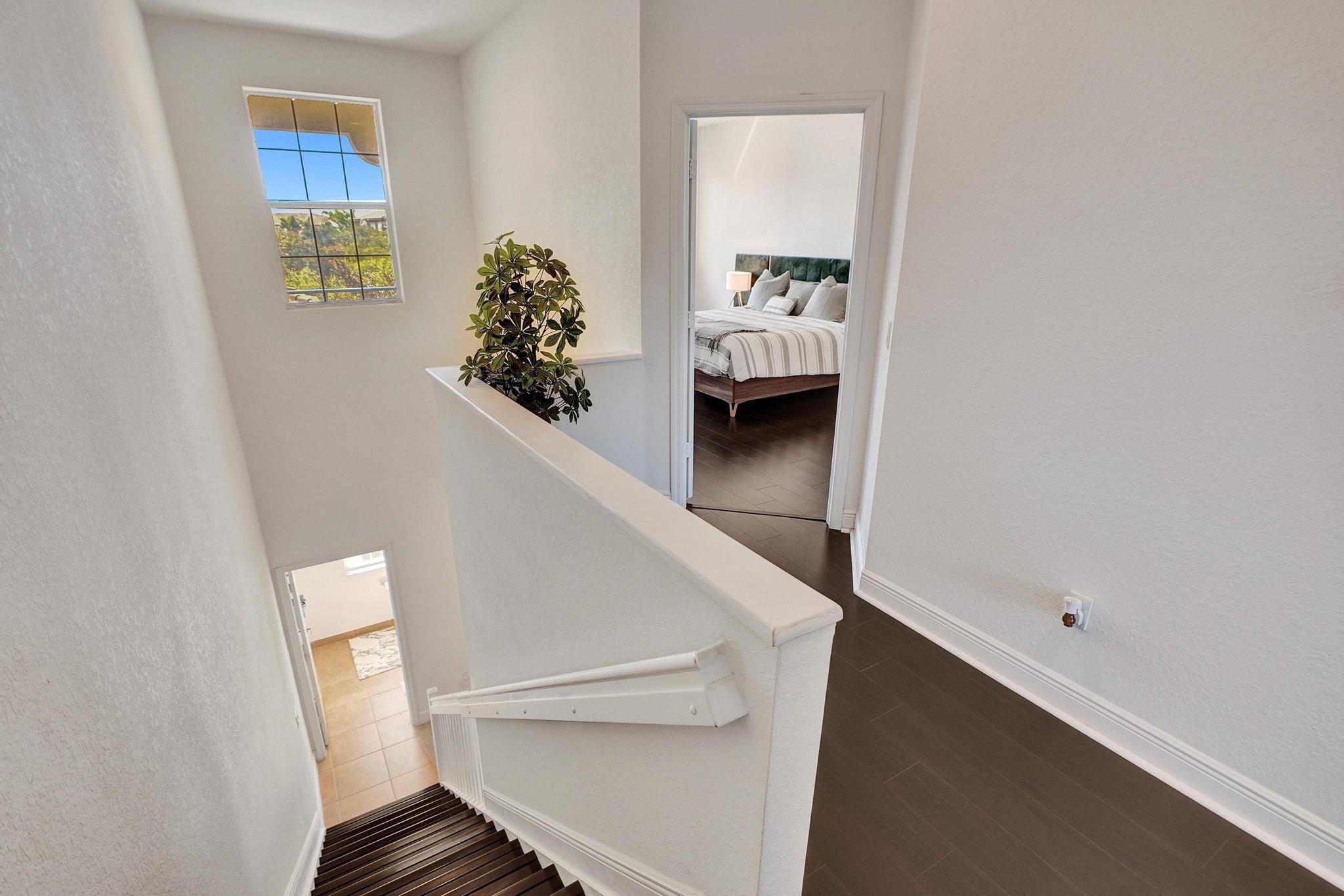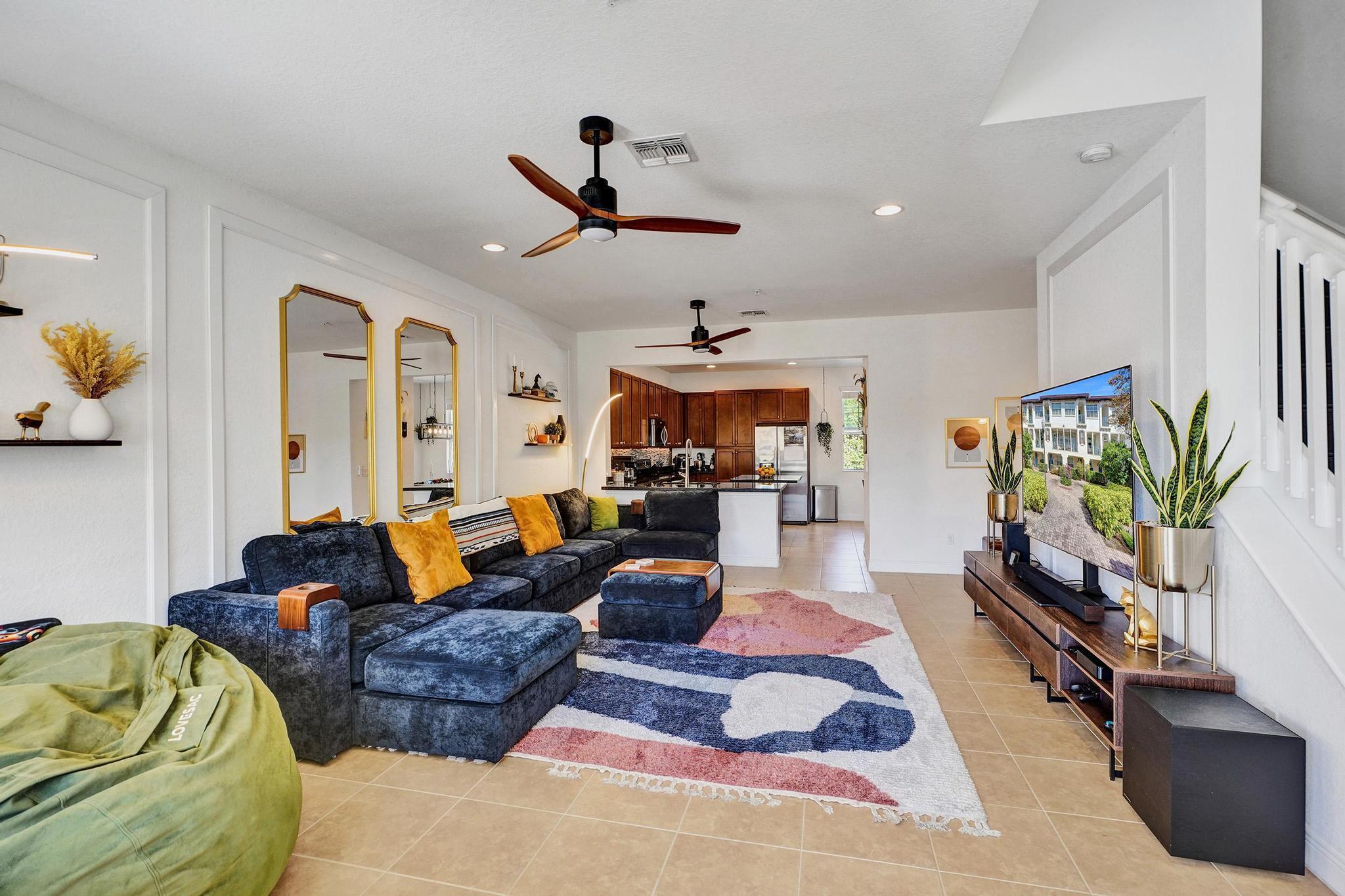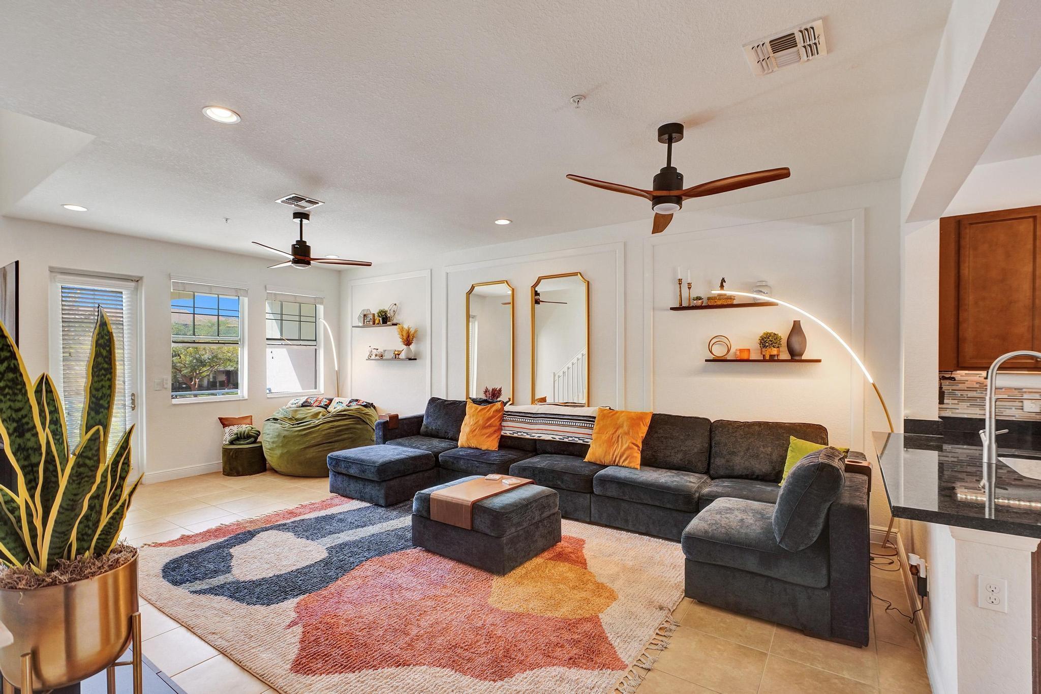 Nestled in the heart of Montclair, a coveted gated community, this pristine tri-level townhome offers 3 BR, 3.1 BA, and a 2-car garage (with EV Charger) with almost 2,100 sqft under air; one of the largest homes in the community. The gourmet kitchen boasts 42'' solid wood cabinetry, a large island, granite counters, and SS appliances.High-impact doors and windows provide security and peace. Enjoy two private balconies--one off the main living area, another off the primary suite--overlooking a serene courtyard and play area.Voluminous ceilings with sprinklers on each floor, two en-suite guest bedrooms, ample storage, wood flooring upstairs, and tile throughout. Low HOA includes cable, internet, clubhouse, gym, pool & walking paths. Schedule your showing today!