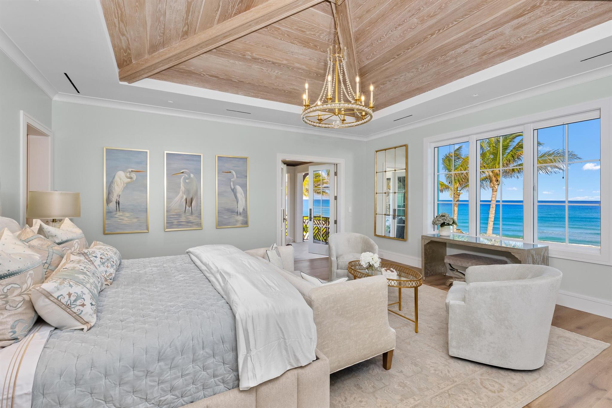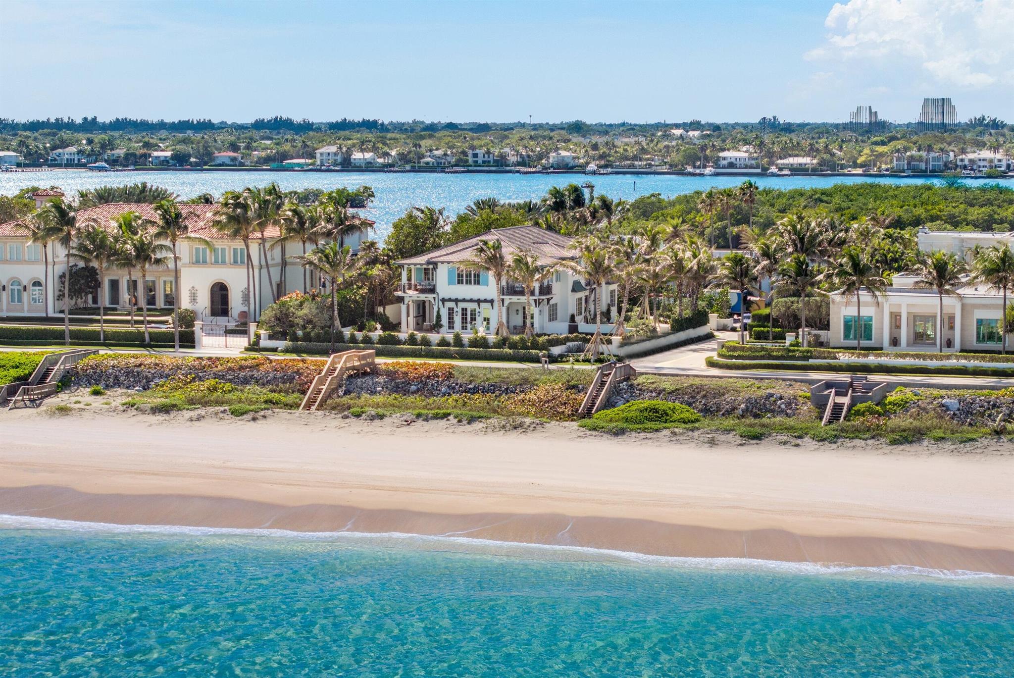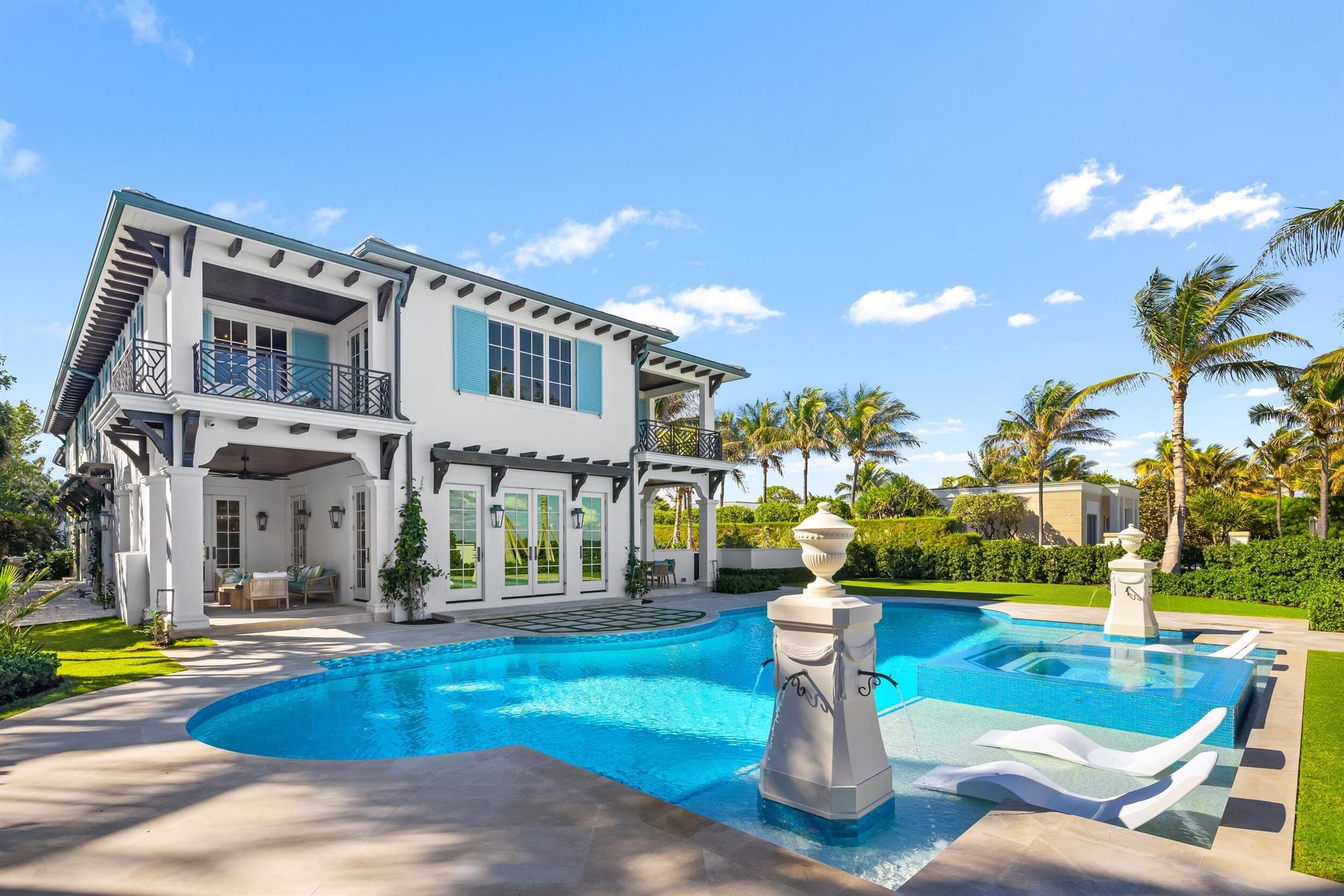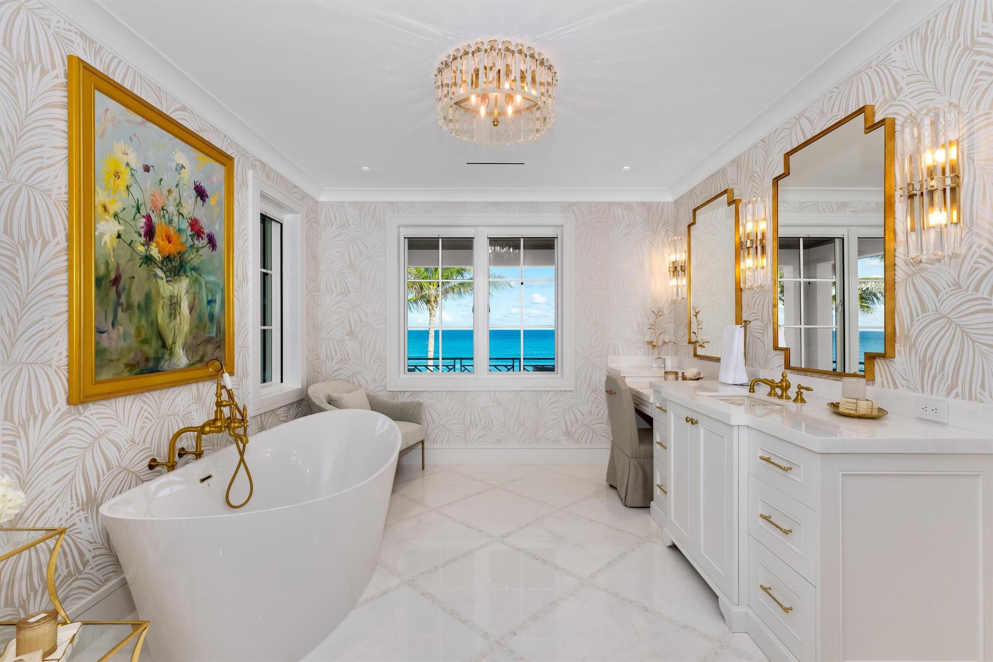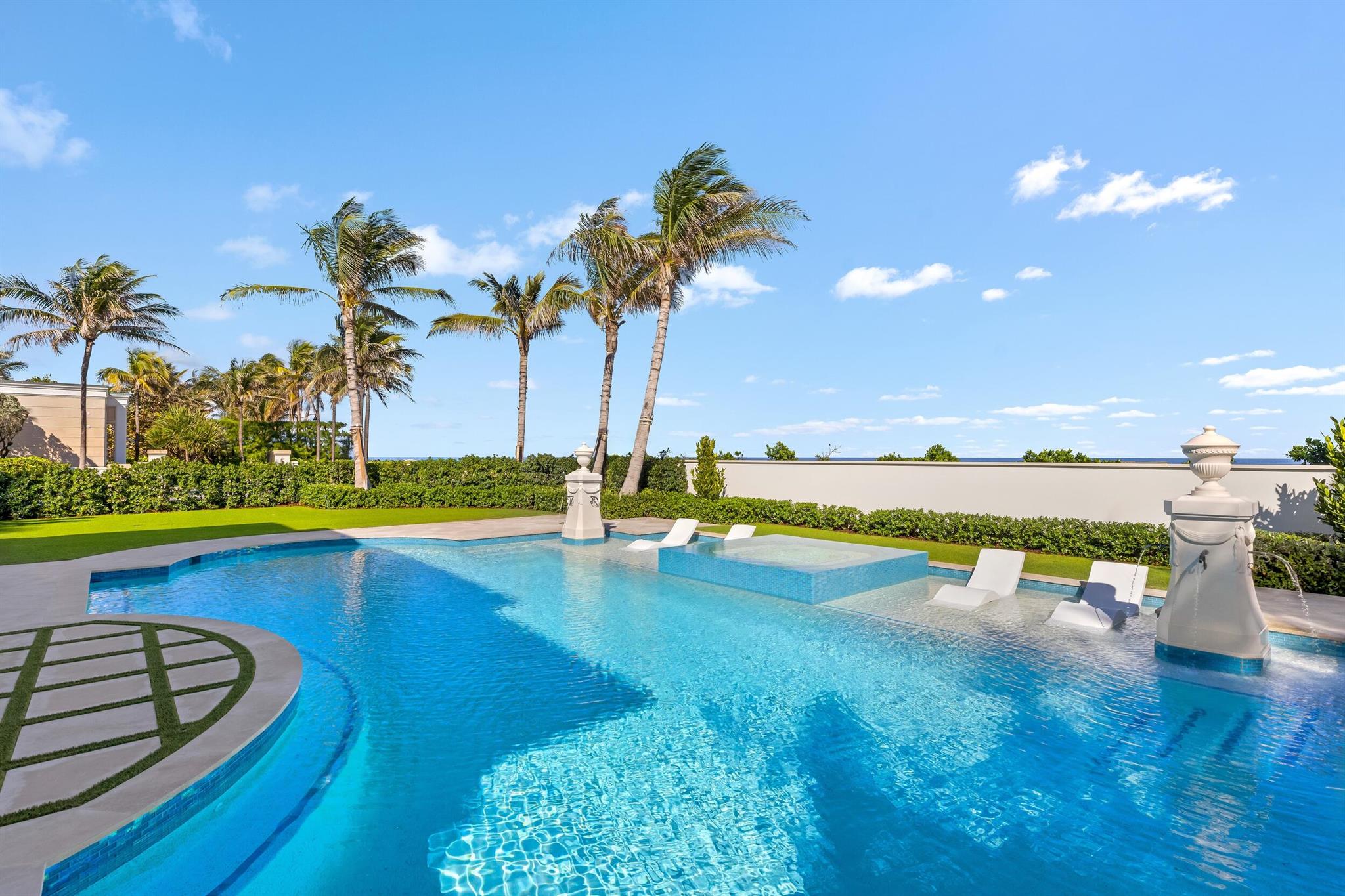 Spectacular, Newly Built Oceanfront Estate with 6 bedrooms, 7 full baths, 1 powder room, and sweeping views of the Atlantic Ocean. This immaculate British West Indies home features beautiful finishes throughout including stunning hardwood and marble flooring, detailed ceilings, and exemplifies the highest standard in craftsmanship and attention to detail. Welcoming foyer leads to the formal living room with gorgeous, beamed ceiling. Chef's kitchen with top-of-the-line appliances, large U-shaped island with seating for 6, and breakfast area with peeks of the ocean. Additional interior highlights include formal dining room, light-filled family room, and office with floor-to-ceiling built-ins. Elegant, oceanfront Primary Suite features sitting room, dual bathrooms, and dual walk-in closets.