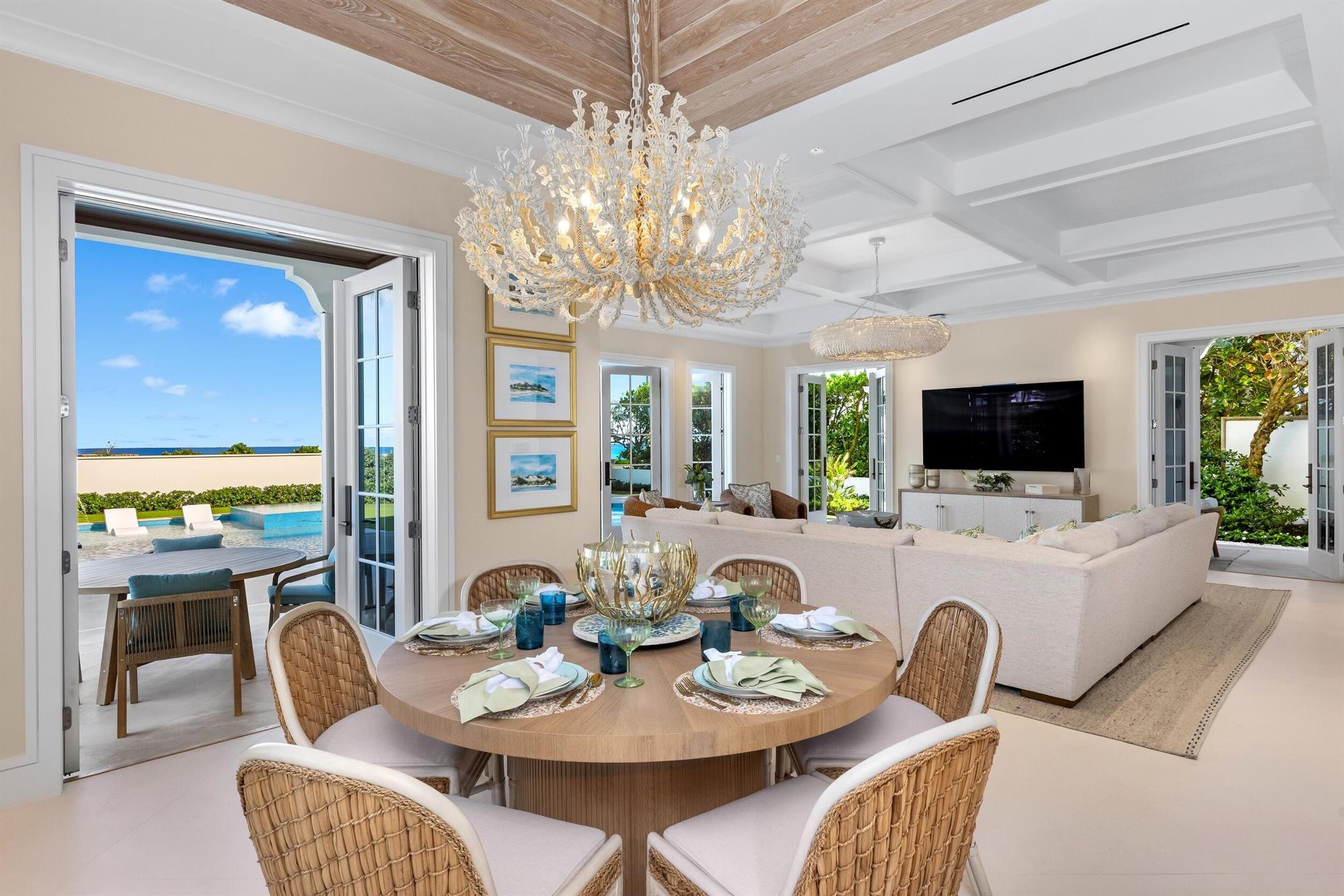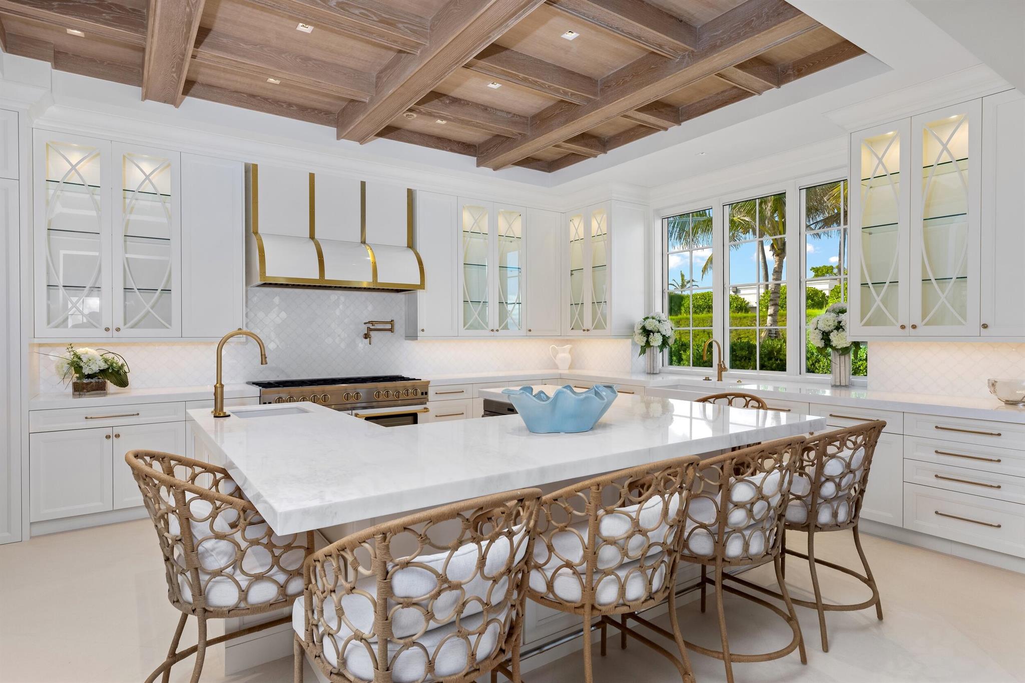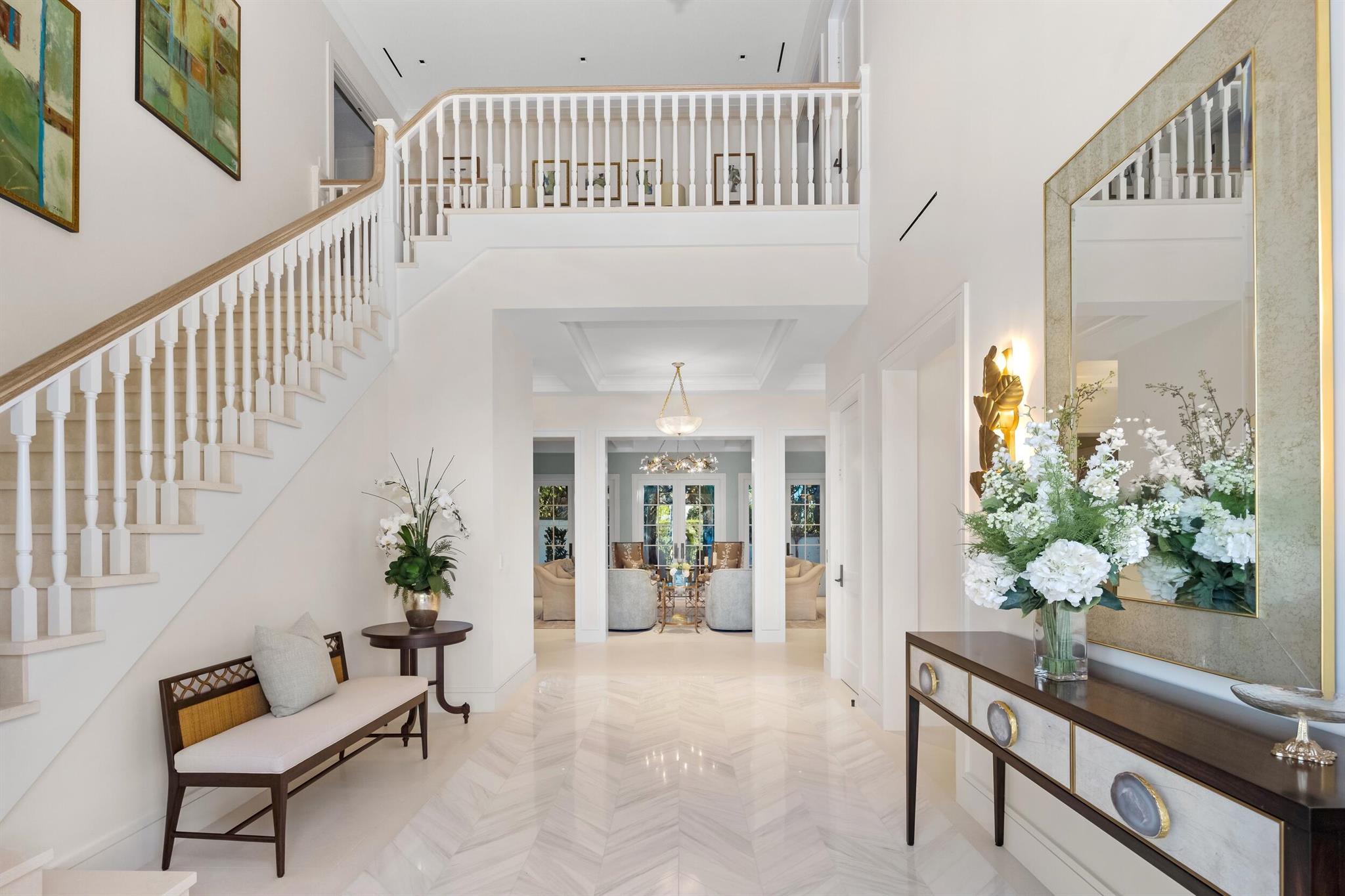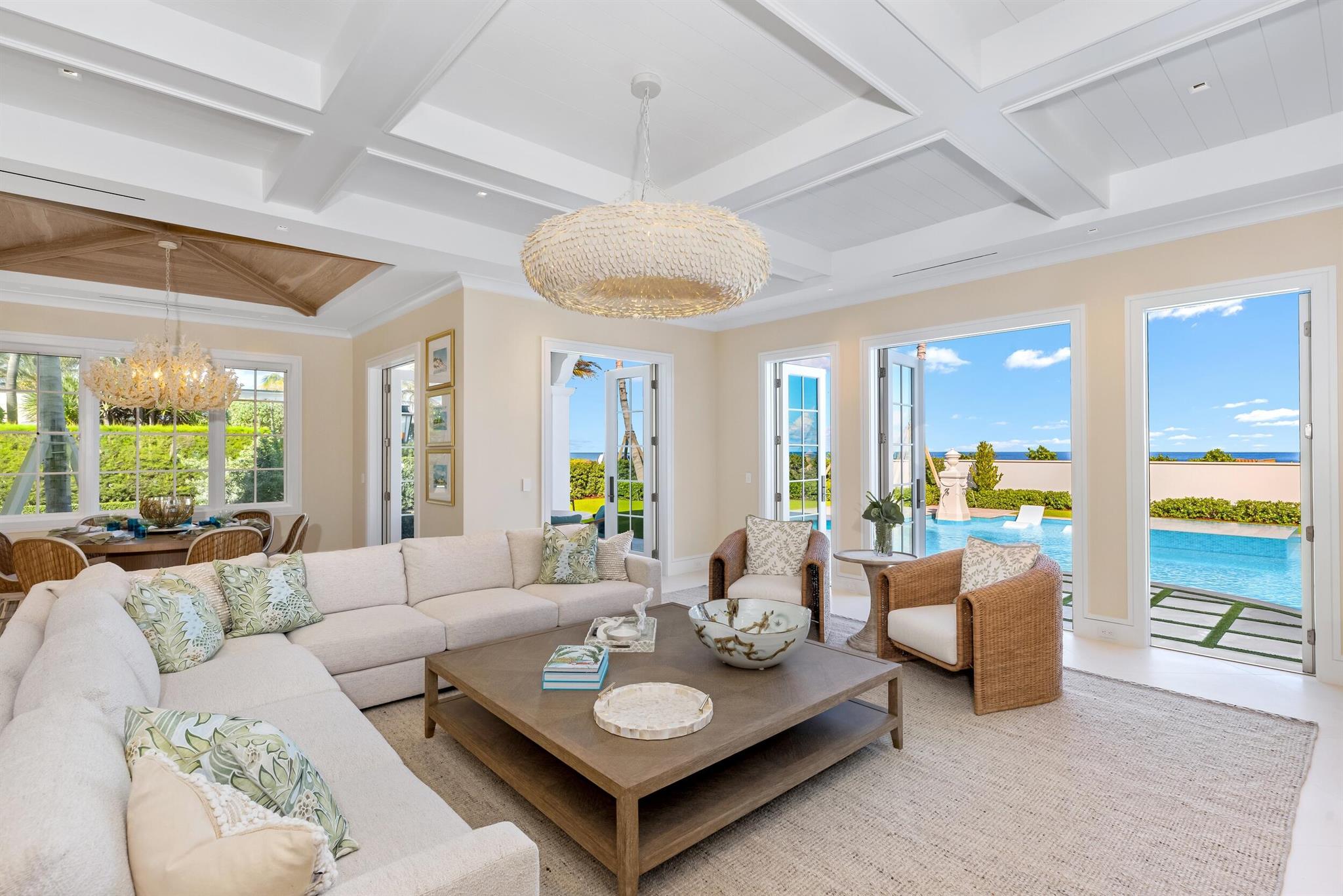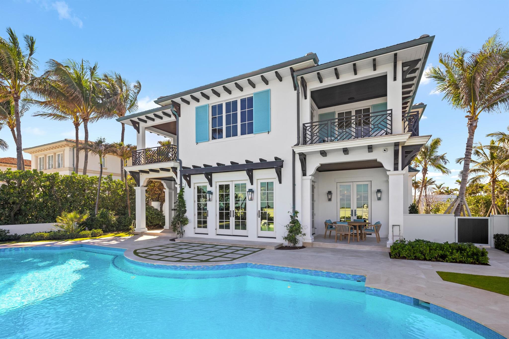 Spectacular, Newly Built Oceanfront Estate with 6 bedrooms, 7 full baths, 1 powder room, and sweeping views of the Atlantic Ocean. This immaculate British West Indies home features beautiful finishes throughout including stunning hardwood and marble flooring, detailed ceilings, and exemplifies the highest standard in craftsmanship and attention to detail. Welcoming foyer leads to the formal living room with gorgeous, beamed ceiling. Chef's kitchen with top-of-the-line appliances, large U-shaped island with seating for 6, and breakfast area with peeks of the ocean. Additional interior highlights include formal dining room, light-filled family room, and office with floor-to-ceiling built-ins. Elegant, oceanfront Primary Suite features sitting room, dual bathrooms, and dual walk-in closets.