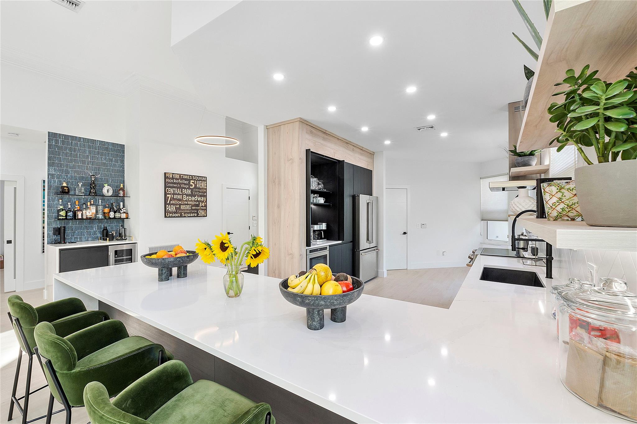Stunningly updated home in the sought-after, gated community of The Palms at Boca Pointe,offers luxury, comfort, and modern elegance! Step inside to find brand-new wood-toned tile flooring, crown molding in the main living areas and primary suite,completely redesigned kitchen with custom cabinetry, new appliances, gorgeous countertops, and an oversized peninsula with seating for four! The primary suite boasts custom bathroom cabinetry, and oversized shower. New landscaping in the front and backyard,hurricane impact windows and doors throughout plus a brand new flat roof,all-new turf, travertine pavers,a custom putting green with three holes! Located in a low-HOA community with optional country club membership,this home is perfect for those seeking a luxury lifestyle without the commitment.