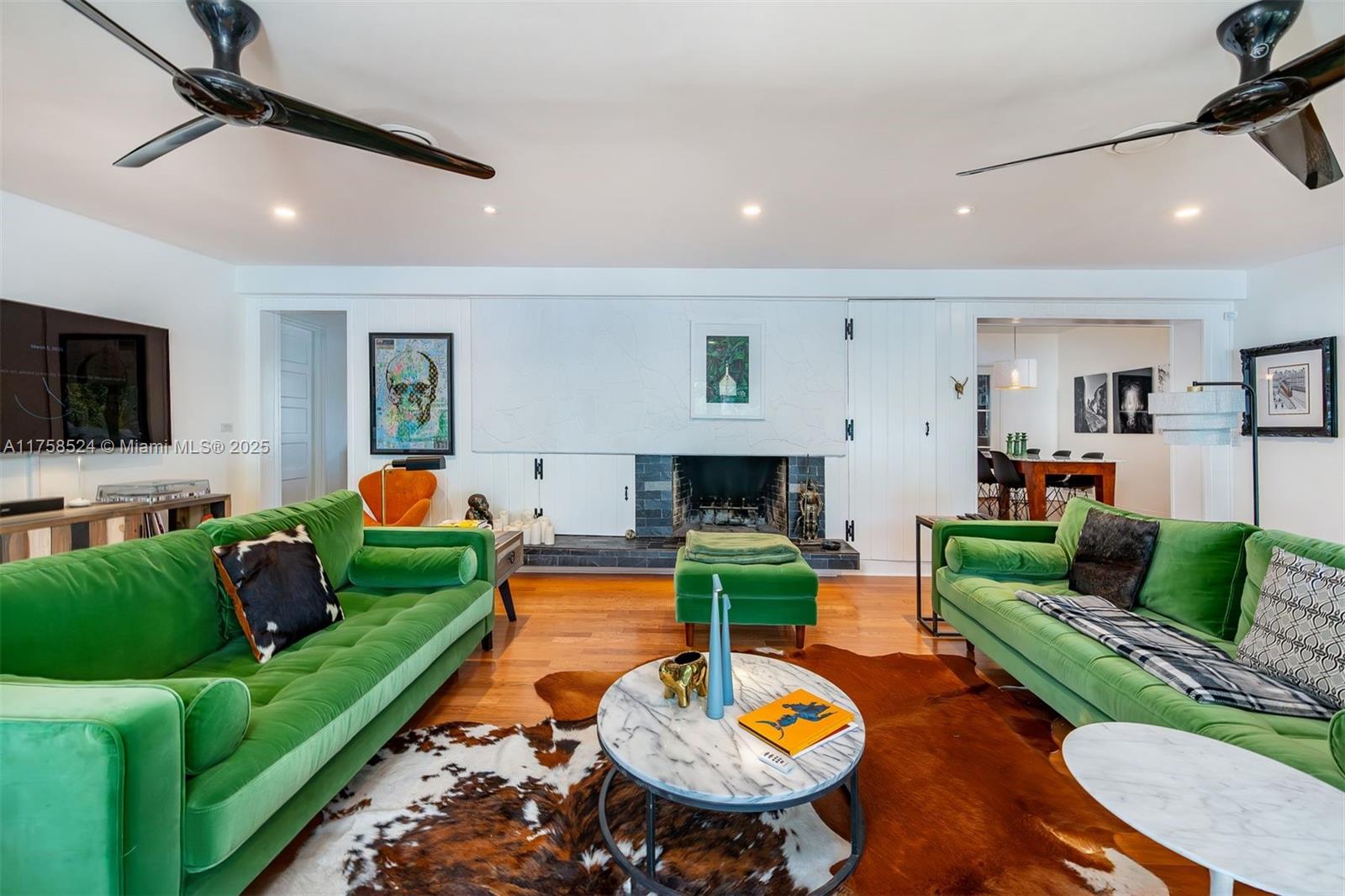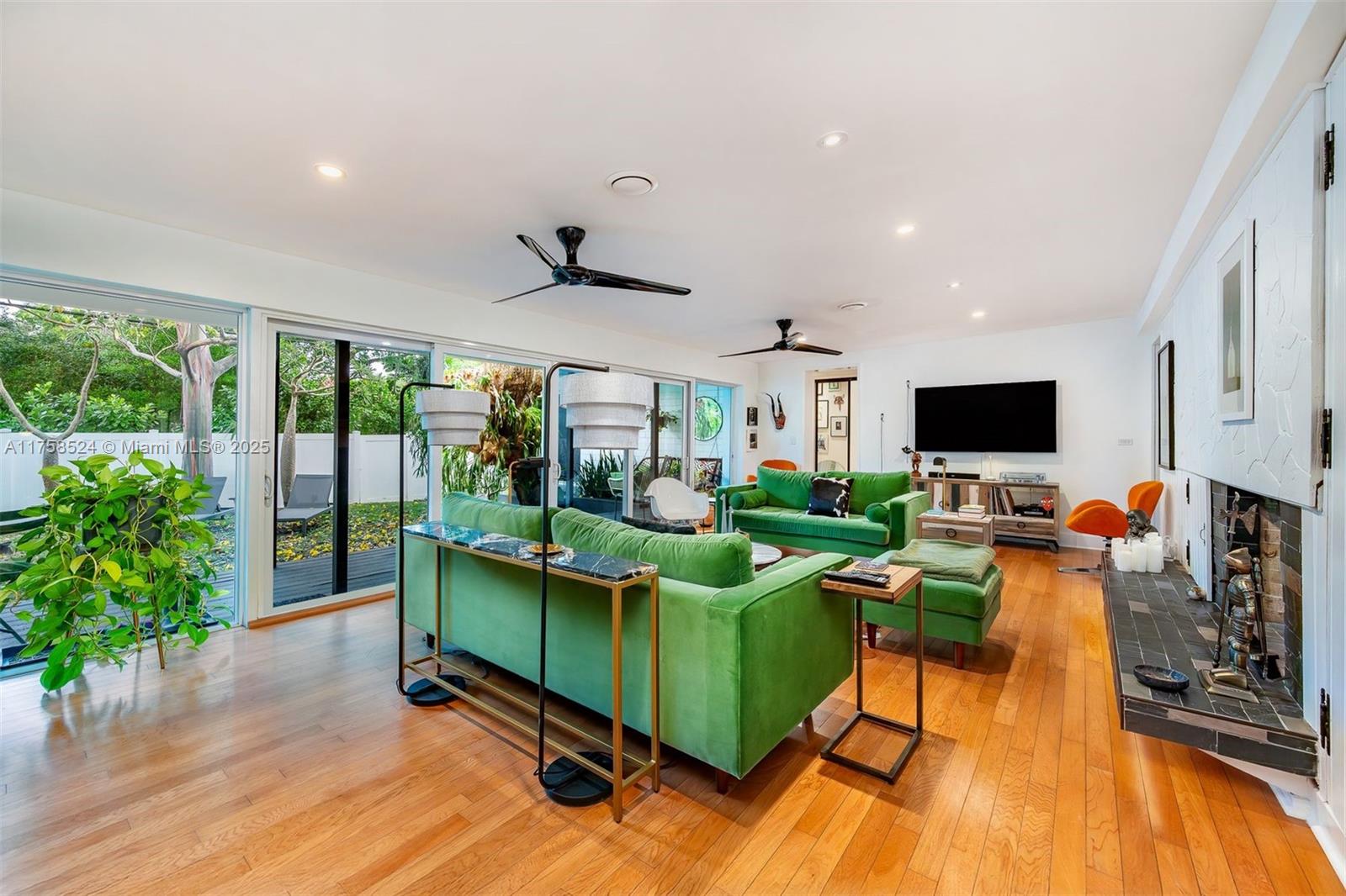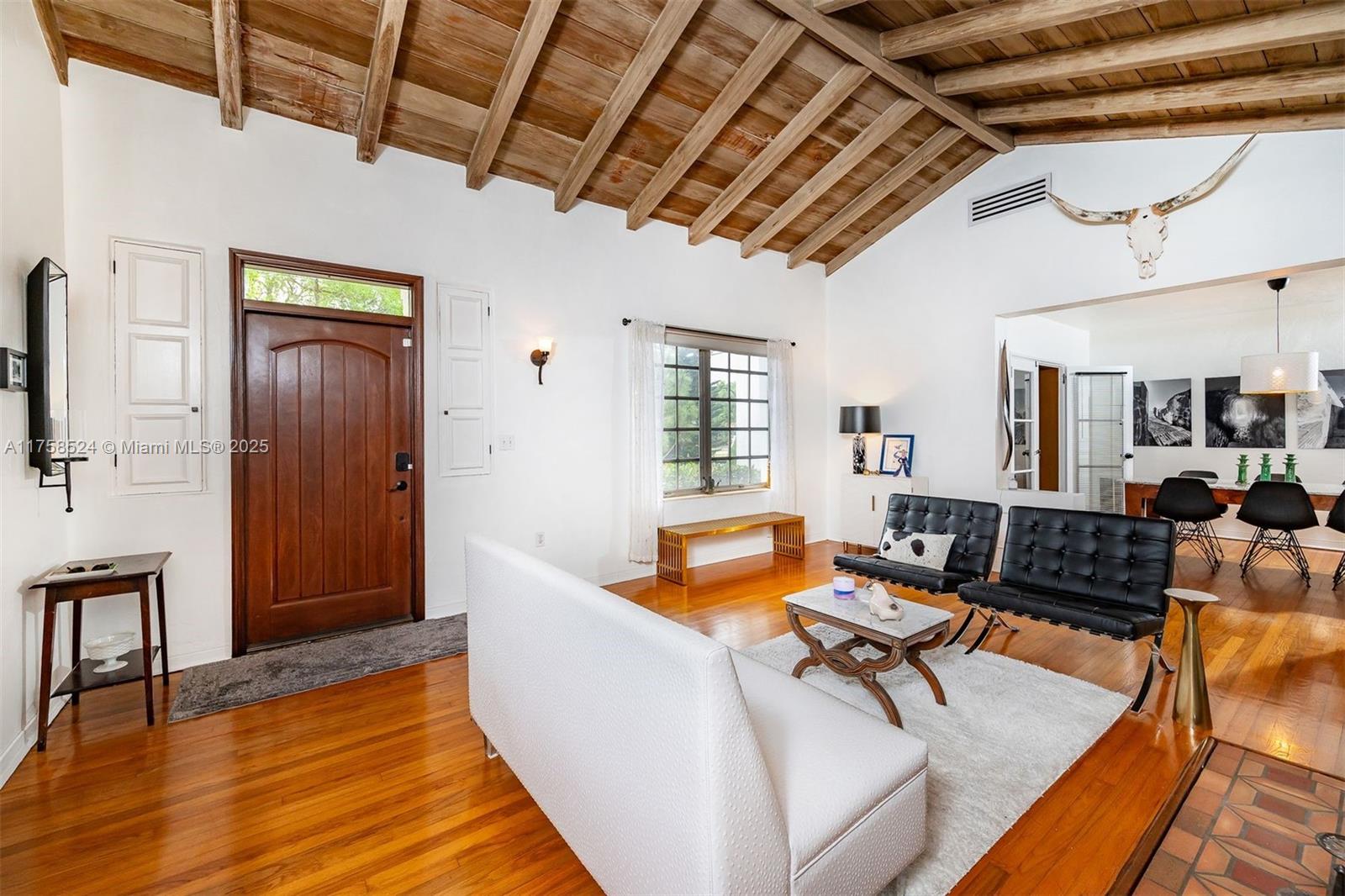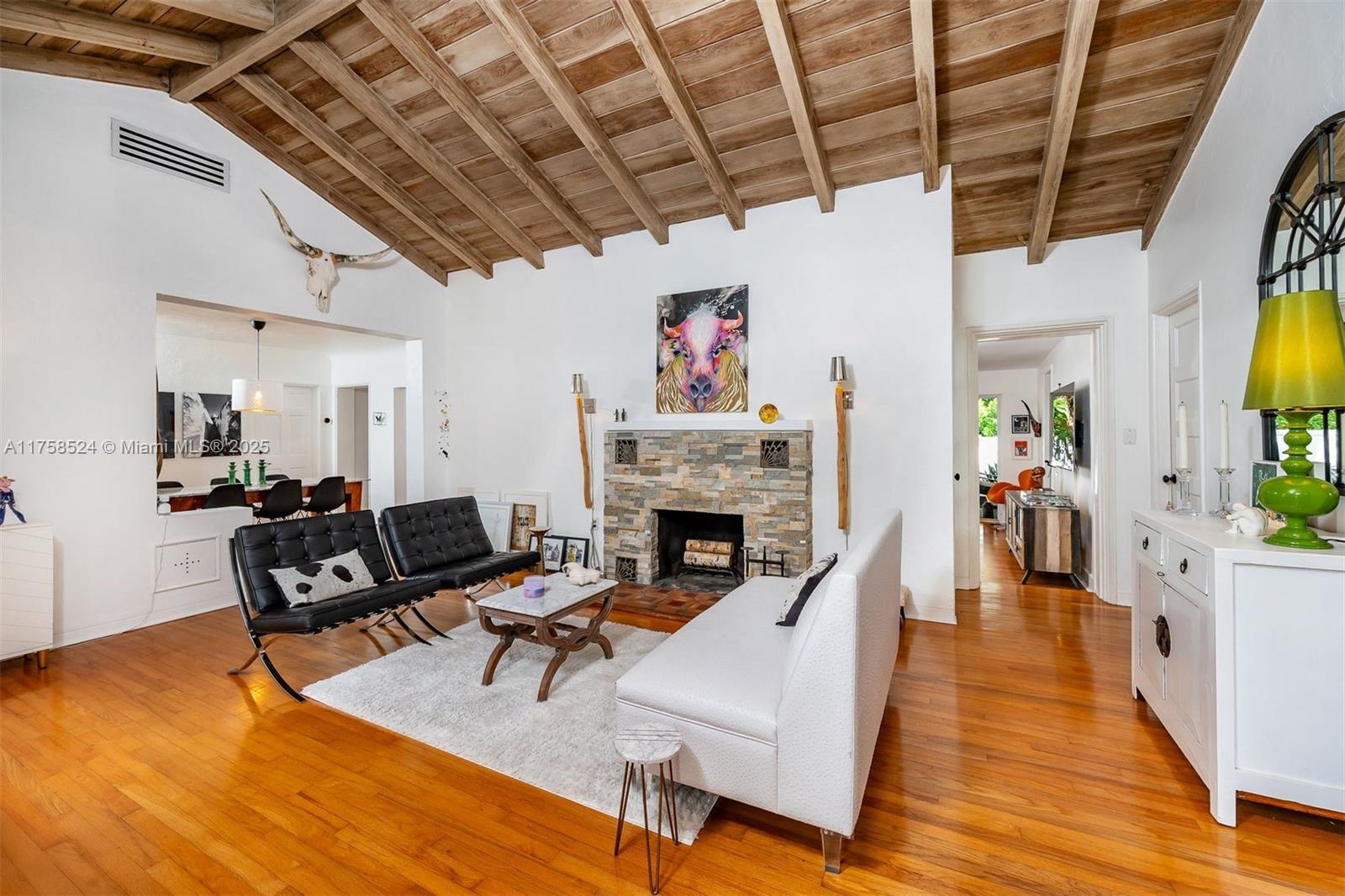 Miami Springs Charm at its Finest!! This Morningside Drive Home has been beautifully maintained by its three owners since 1937. Featuring 3 spacious bedrooms, two bathrooms and a 1-car garage/laundry room, this home is ready to move in and enjoy. Original hardwood floors, 2 wood burning fireplaces, spacious family room, beautiful vaulted tongue and groove ceilings, built ins and more. The primary bedroom is very spacious and features, two walk in closets, sitting area and double sliding doors with tranquil views of the garden and covered patio. The primary bath is complete with double sinks, shower and features imported Moroccan Zellige tile. The split bedroom plan features two additional bedrooms with jack and jill bathroom recently updated with all the modern finishes.