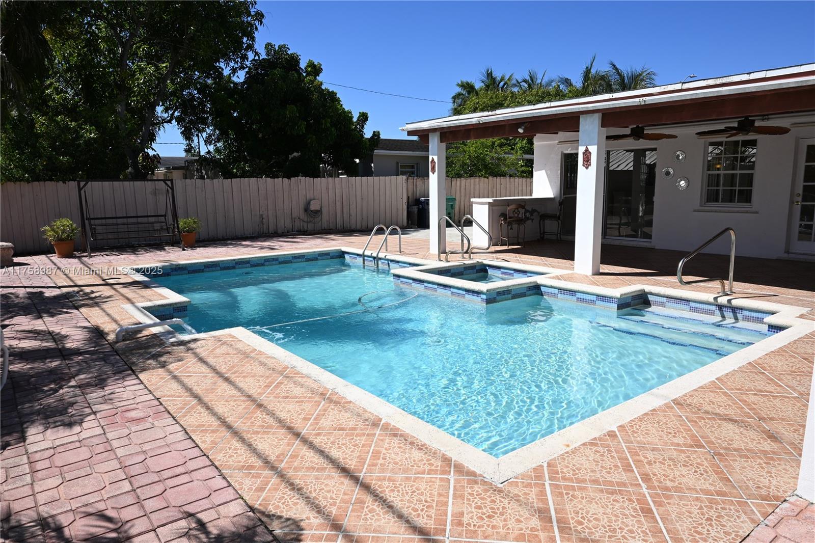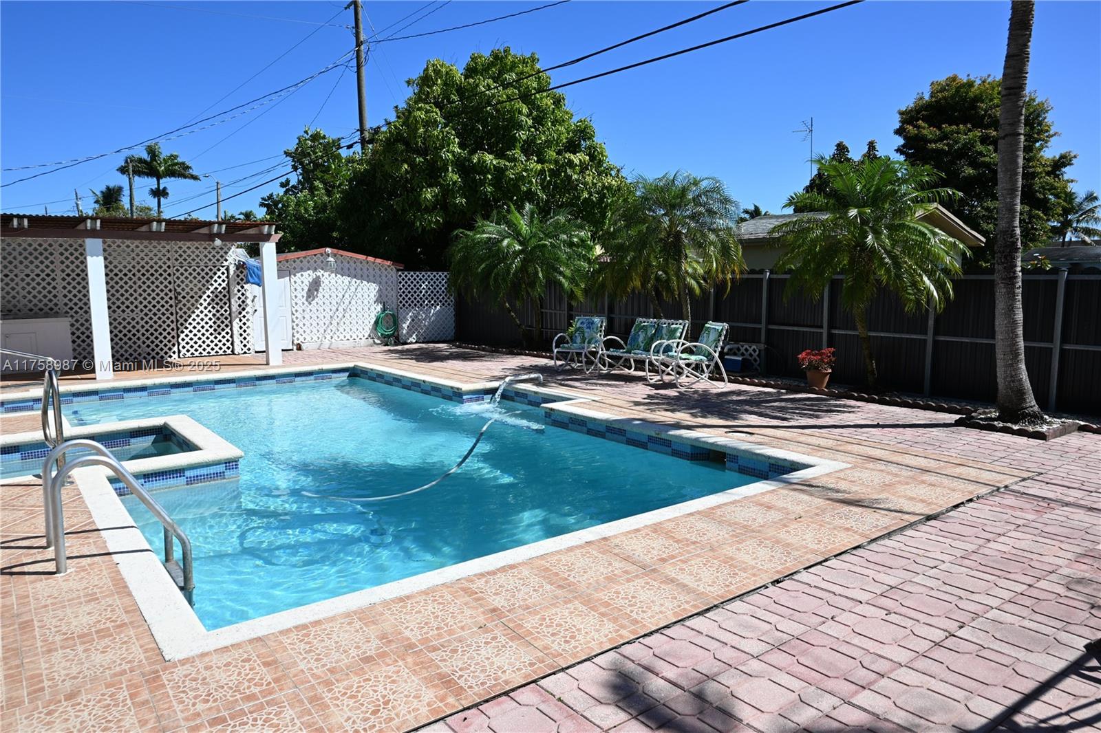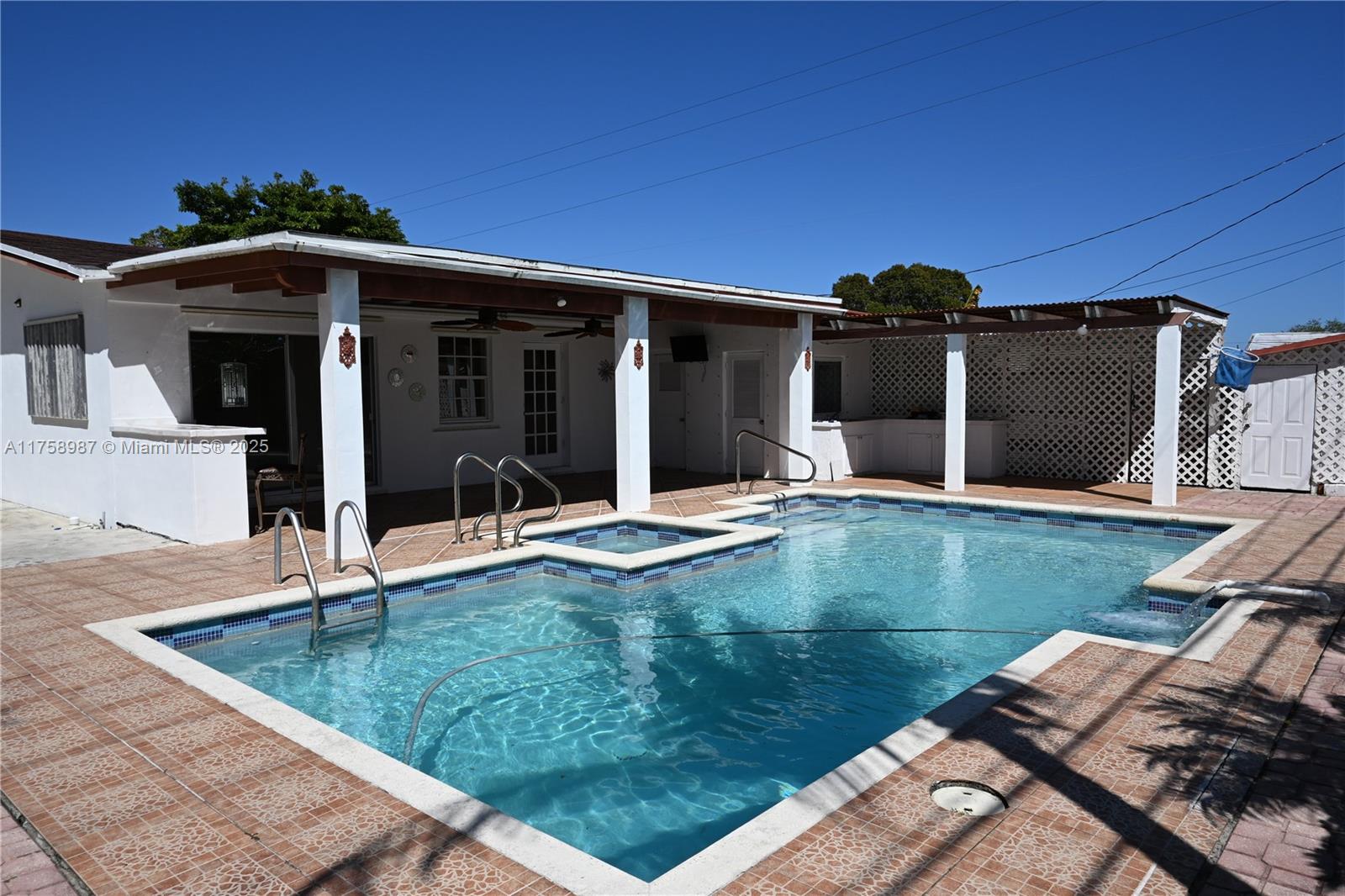 Spacious pool home in quiet neighborhood. Move in ready. 3 bedrooms 2 baths. Perfect for a family. Hurricane shutters throughout. Built in spa in pool area. plenty of parking with space for RV or boat including sewer, water and electric hookups. Cabana bath. Storage/workshop. Enjoy those family pool parties in your covered patio with built in kitchen area. Close to shopping and transportation. Priced to sell. Won't last. SELER WILL INDTSLL NEE ROOF PRIOR TO CLOSING.