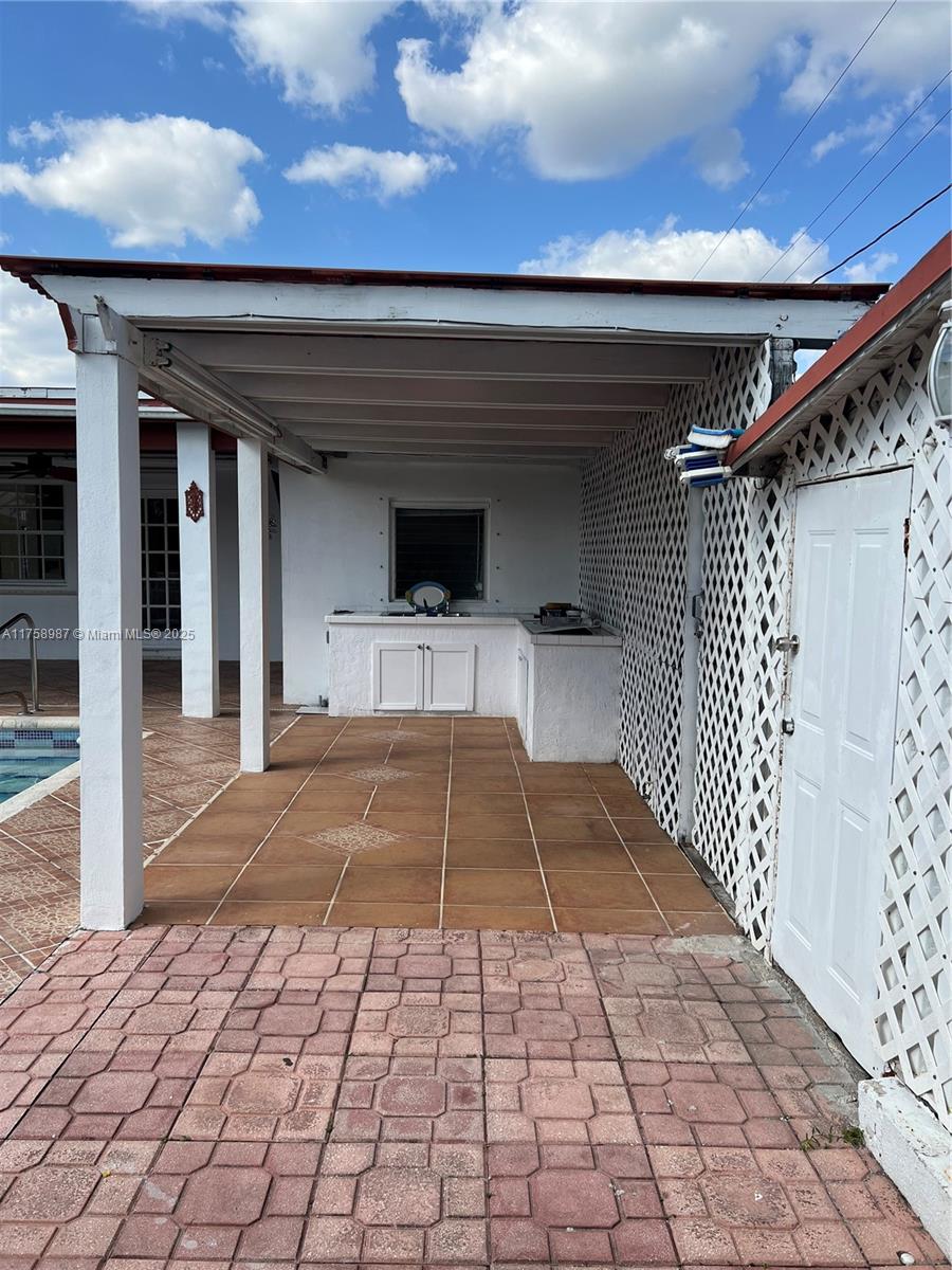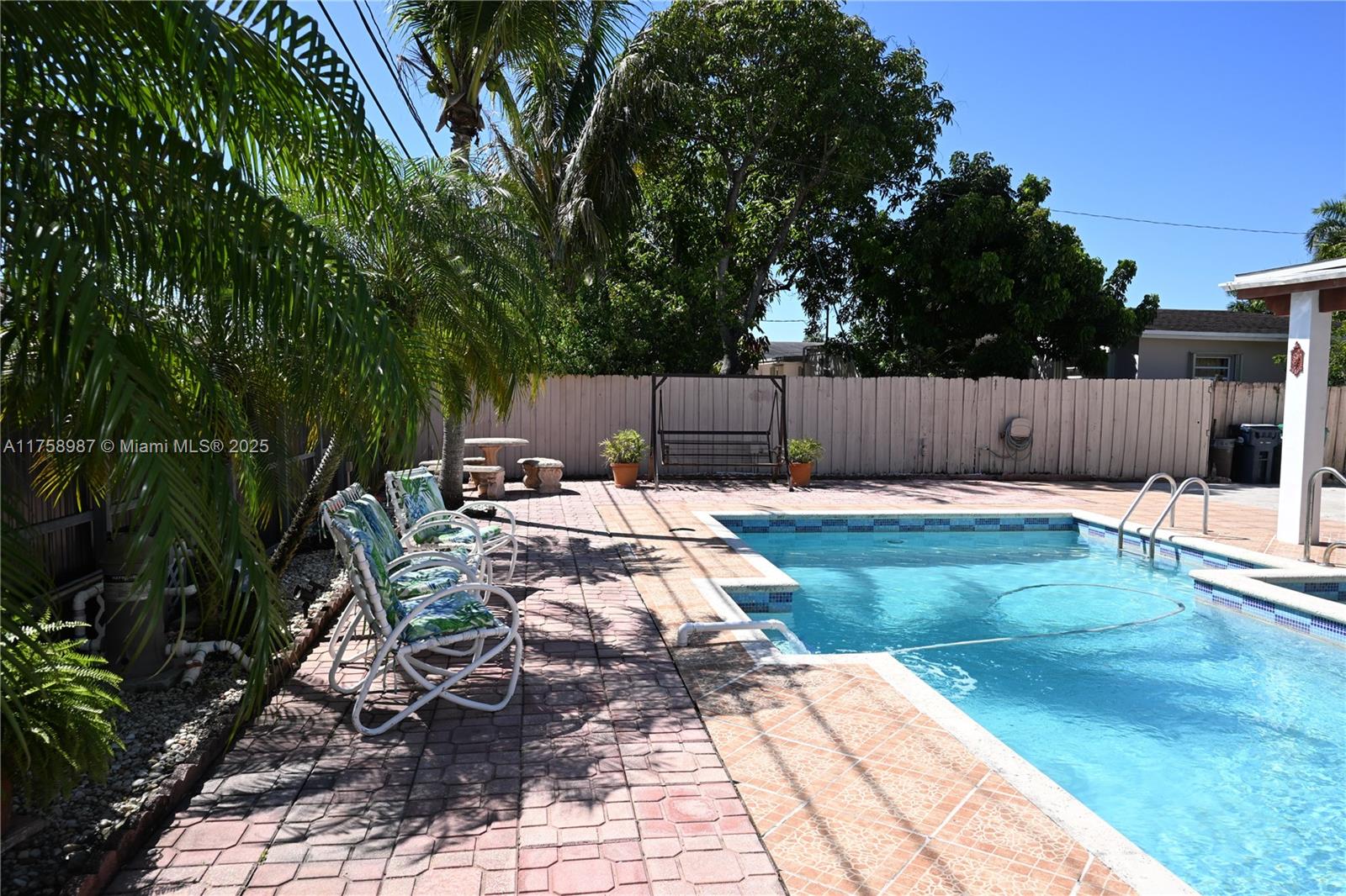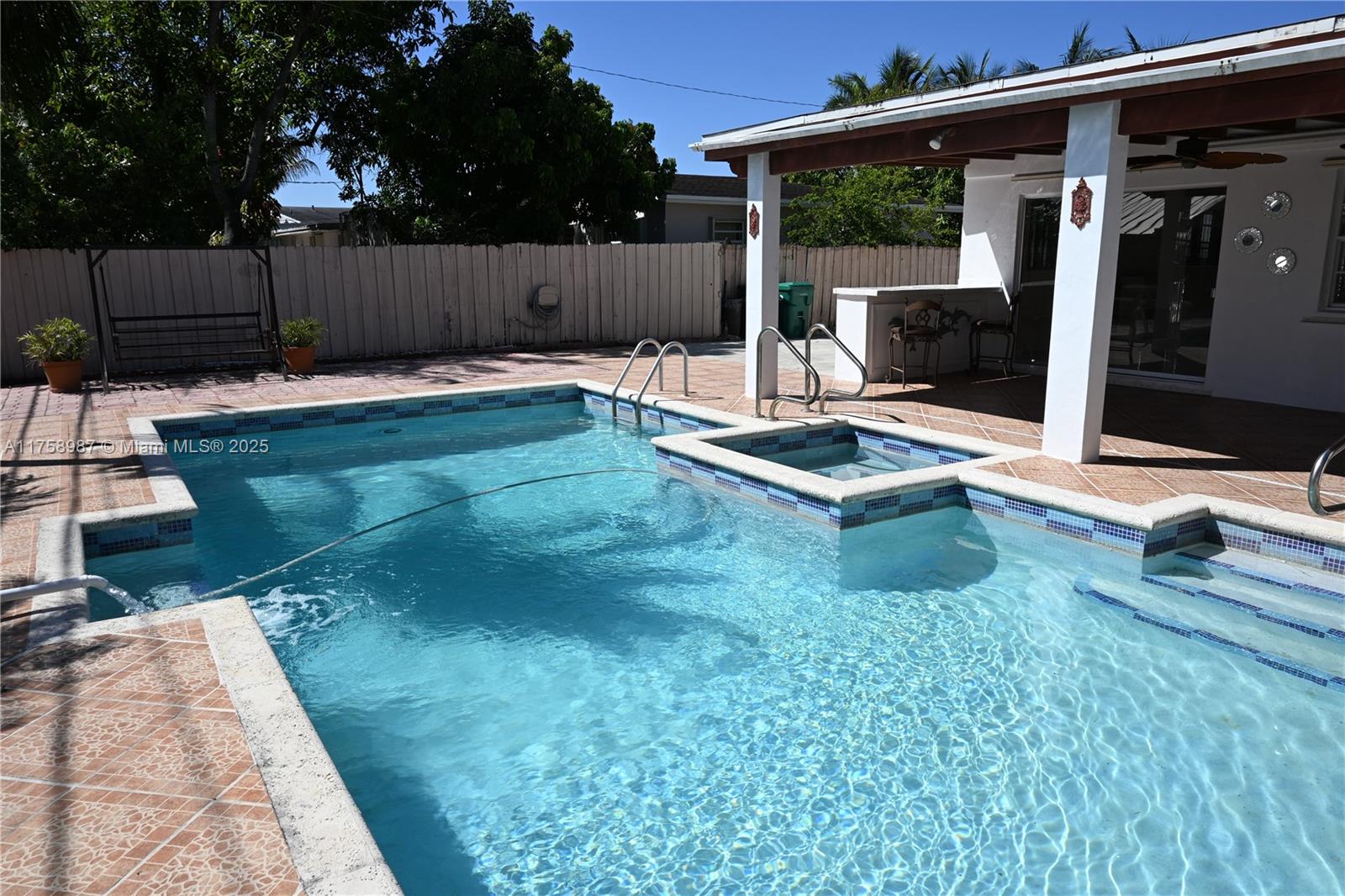 Spacious pool home in quiet neighborhood. Move in ready. 3 bedrooms 2 baths. Perfect for a family. Hurricane shutters throughout. Built in spa in pool area. plenty of parking with space for RV or boat including sewer, water and electric hookups. Cabana bath. Storage/workshop. Enjoy those family pool parties in your covered patio with built in kitchen area. Close to shopping and transportation. Priced to sell. Won't last. SELER WILL INDTSLL NEE ROOF PRIOR TO CLOSING.