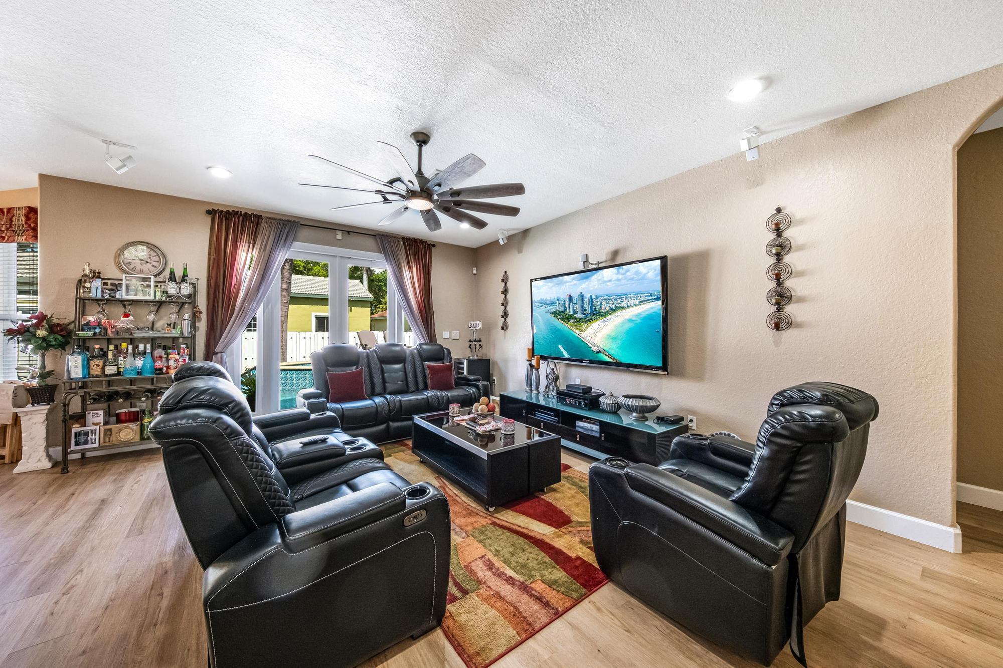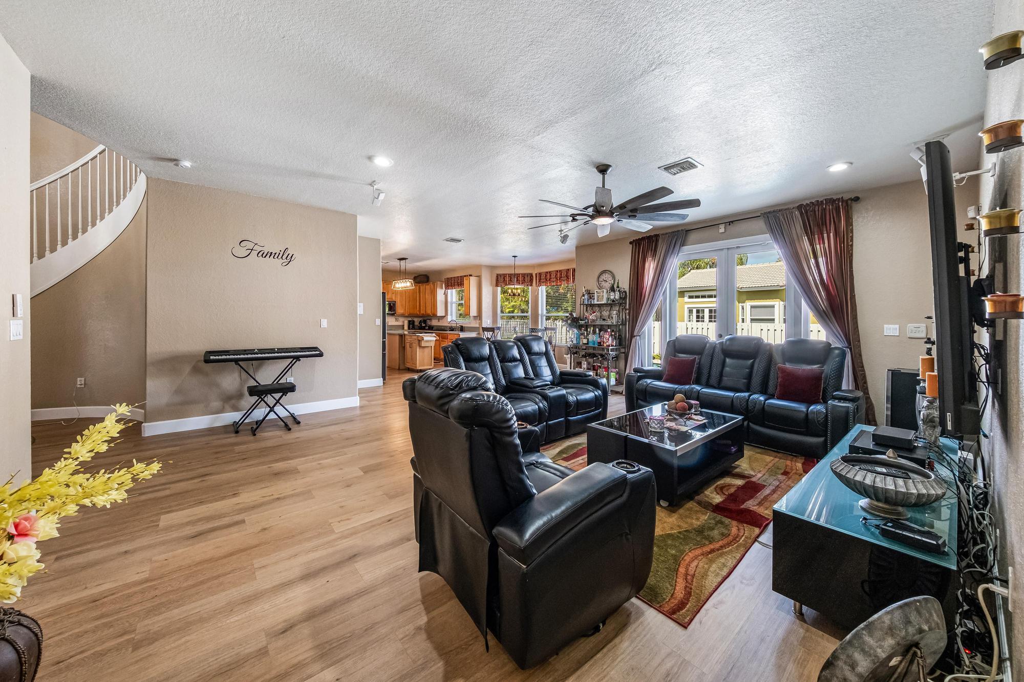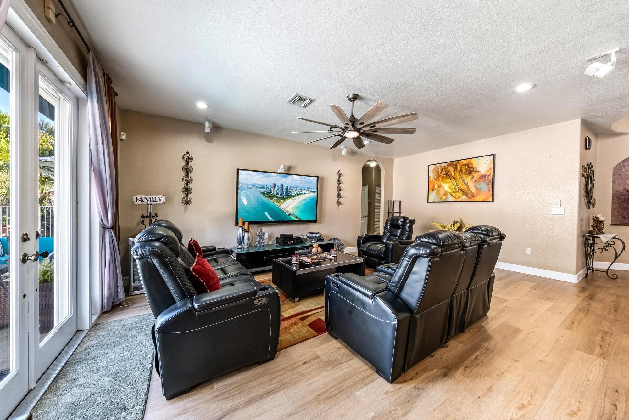 Spectacular 5-bedroom, 3-bathroom home with a heated pool, jacuzzi, and a spacious 3-car garage, nestled in one of Miramar's most sought-after neighborhoods Monarch Lakes! The extremely large primary suite has everything you need, 20 feet ceiling in the entry way offering the perfect blend of luxury and comfort, custom surround sound throughout the home, The upstairs loft can be converted into a large 6th bedroom. Perfect for those who need space, love entertaining, and enjoy having an amazing backyard oasis. 1bed/1bath located on the ground floor perfect for guests or mother-in-law suite. This home shines day and night, with stunning custom lighting that creates a warm and inviting ambiance.