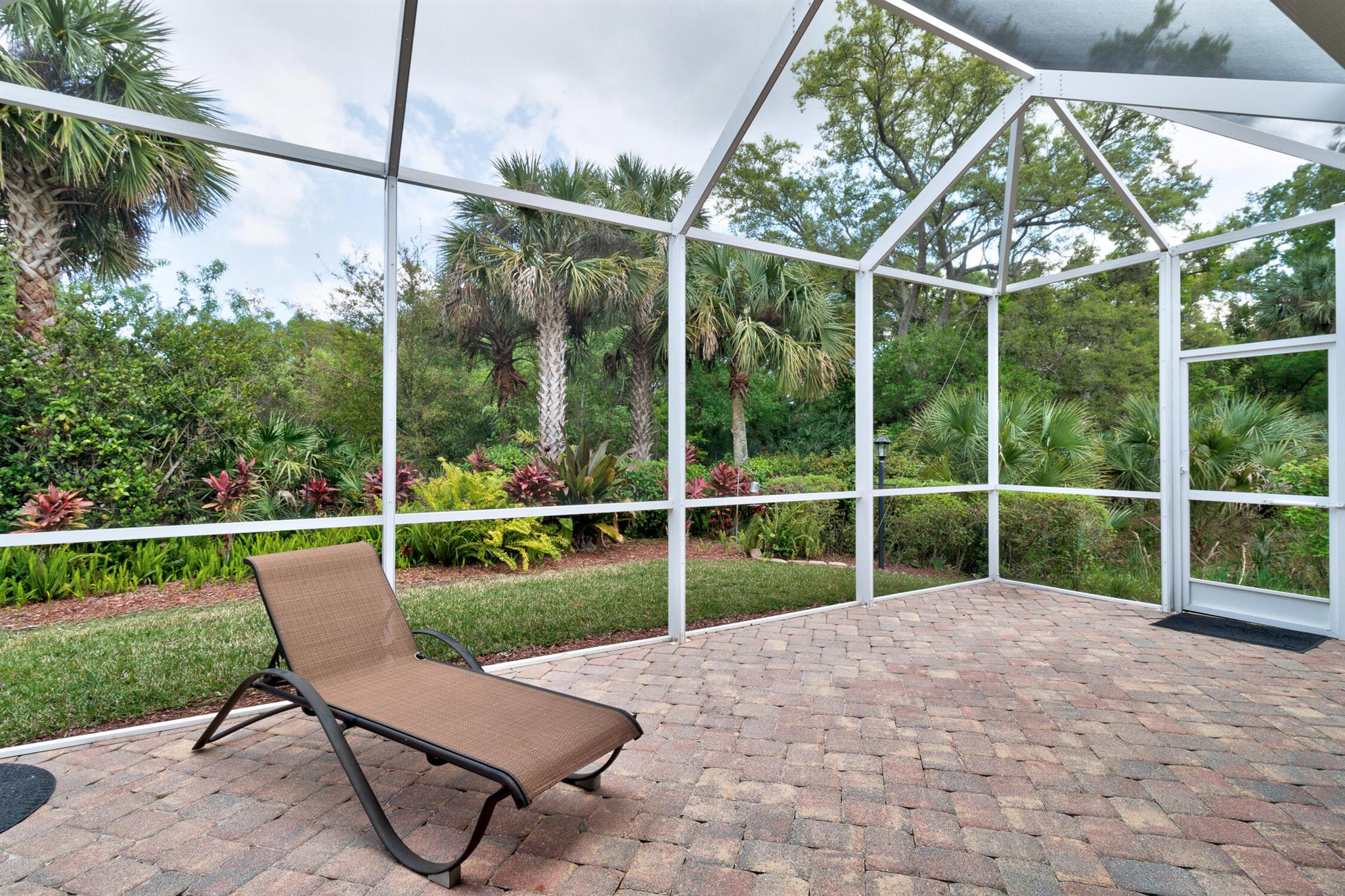What a private setting. The kitchen is large and has a spacious eat-in area. Vaulted ceilings. Built-in electric fireplace. Very large newly re-screened lanai overlooks a preserve & is full of peaceful views. Bay window in the primary bedroom. Airconditioned 2-car garage. Fully tiled home. No carpet here! Clubhouse w/heated pool & spa, lots of social activities, bocce ball, tennis, billiards & fitness center. Cable TV & internet included in the HOA. Close to Vero's great beaches. Must see!