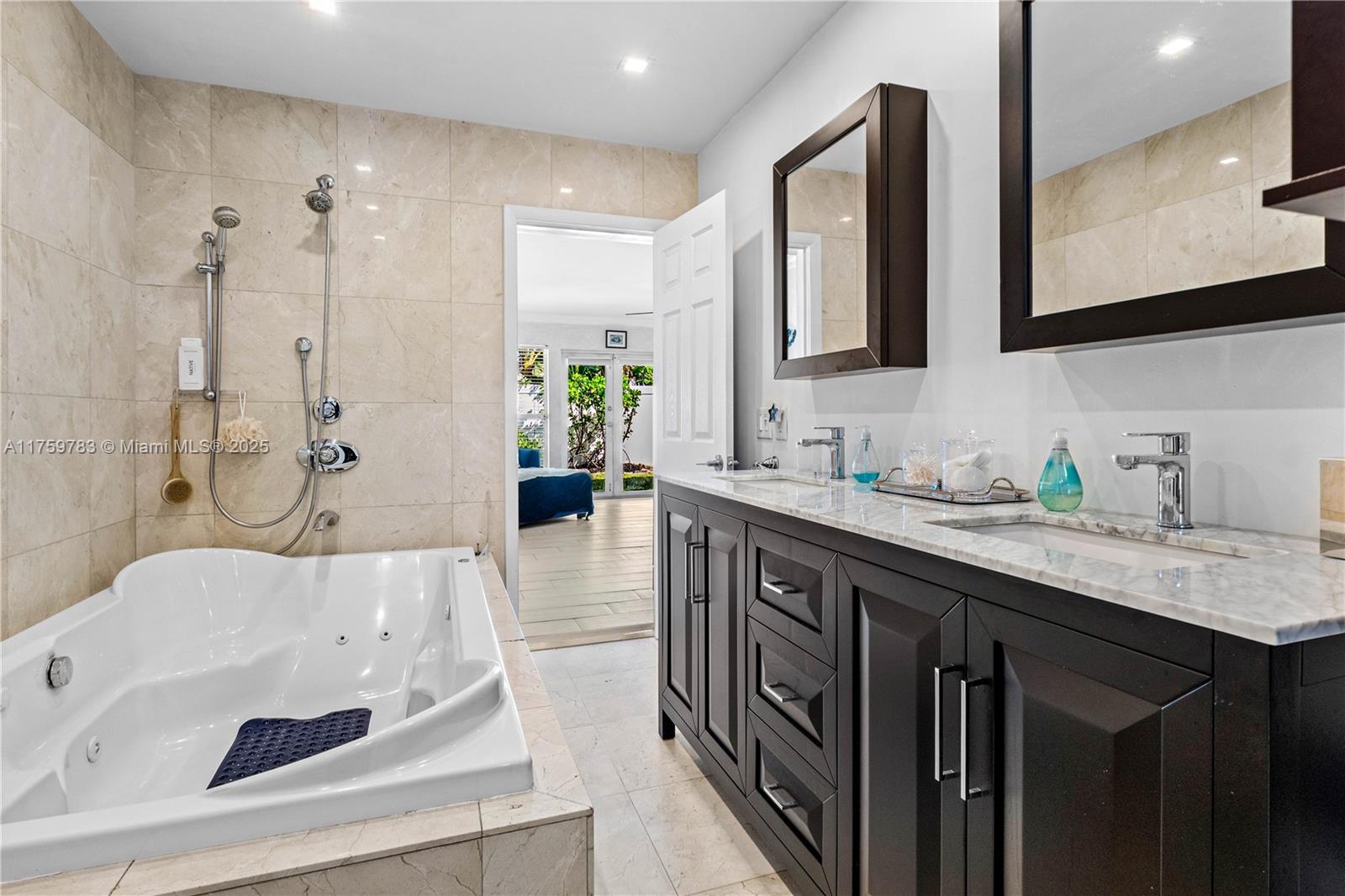 Beautifully remodeled pool home in sought-after Knoll Ridge. Light and bright with a modern open floor plan. Split bedroom design with a huge 18x21 primary bedroom plus adjoining office/nursery/home gym. French doors leading to the back patio and pool. En-suite bath with large spa tub/shower and dual sinks. Recently installed plank style tile floors throughout. Privacy and security are assured with double electronic gates and impact windows and doors all around. Metal roof (2014), A/C (2018), Water lines completely re-piped in 2007, new garage door 2021. Sewer line replaced with PVC in 2024. Chicago brick walkway leads from the circular driveway to the front door. Backyard is completely fenced with a brick paved entertainment area separate from the pool. Close to everything. No HOA.