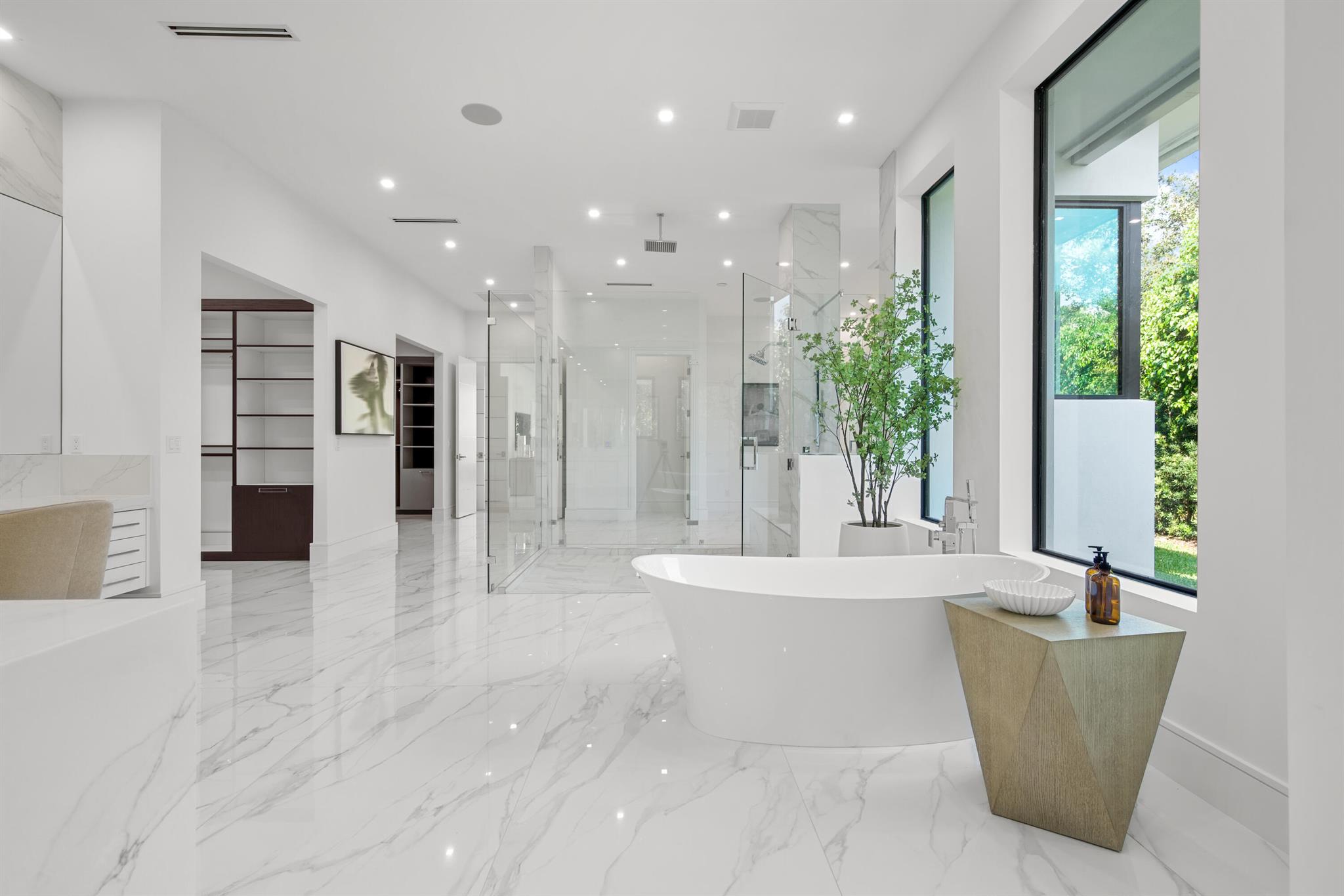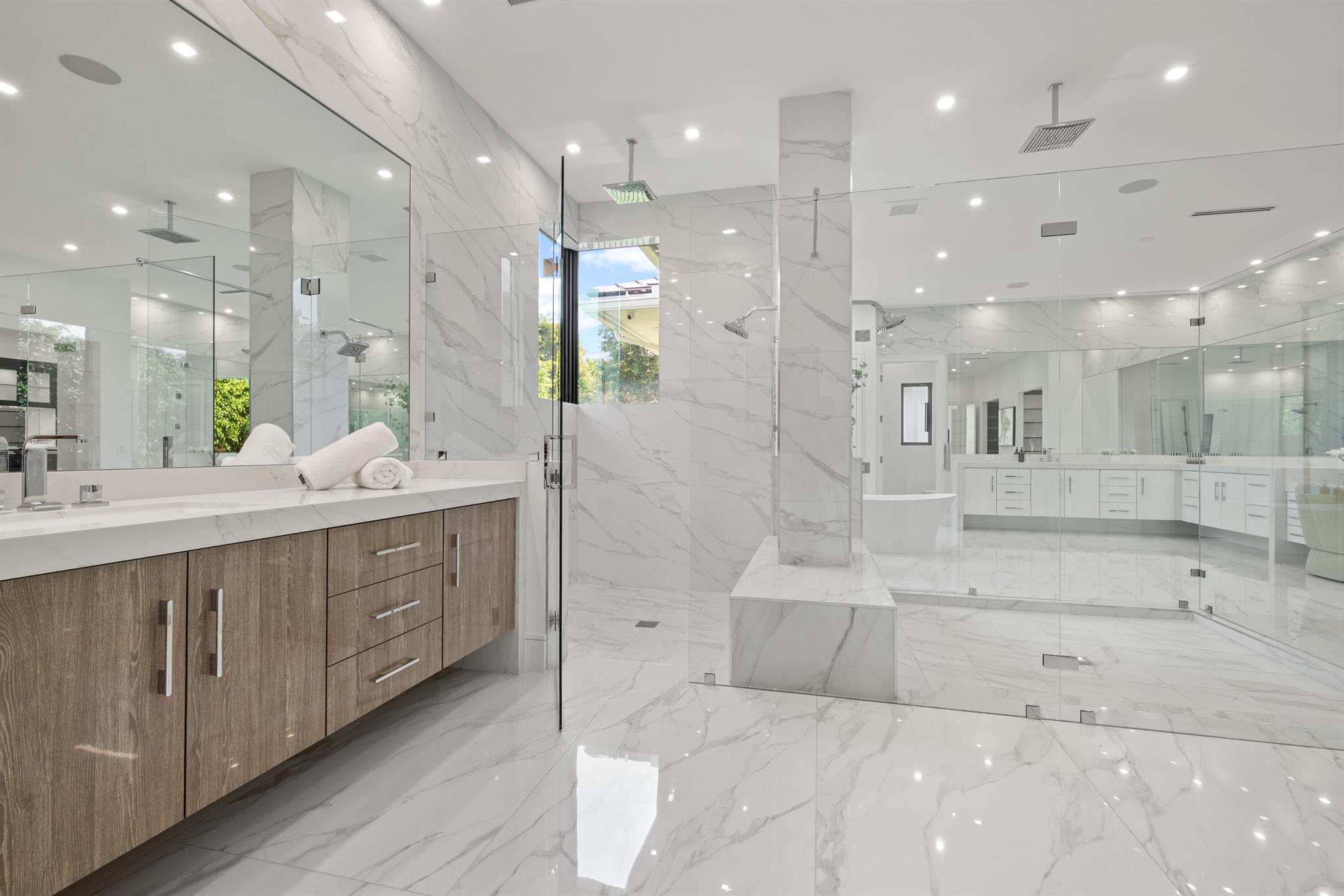 Nestled within the prestigious gated community of Long Lake Estates, this newly constructed contemporary architectural masterpiece offers an unparalleled opportunity to own a true trophy property. Situated on an acre plus and spanning over 7,400 interior square feet of meticulously curated living space, this one story exceptional estate seamlessly blends modern sophistication with timeless elegance. After entering through 10 foot high glass doors, a striking statement entry foyer welcomes you into a grand great room and living area, with oversized porcelain floors and floor-to-ceiling windows showcasing breathtaking views of the resort style backyard. Designed for both relaxation and entertaining, this property seamlessly blends indoor and outdoor living at its finest.