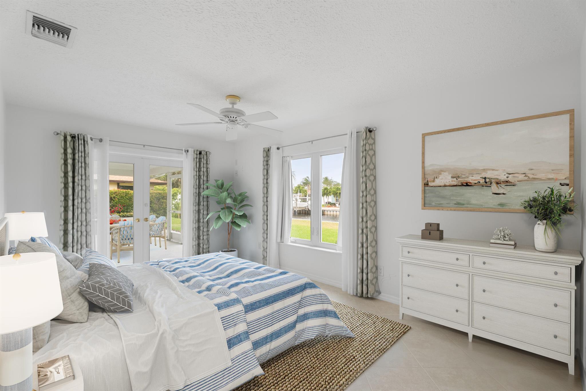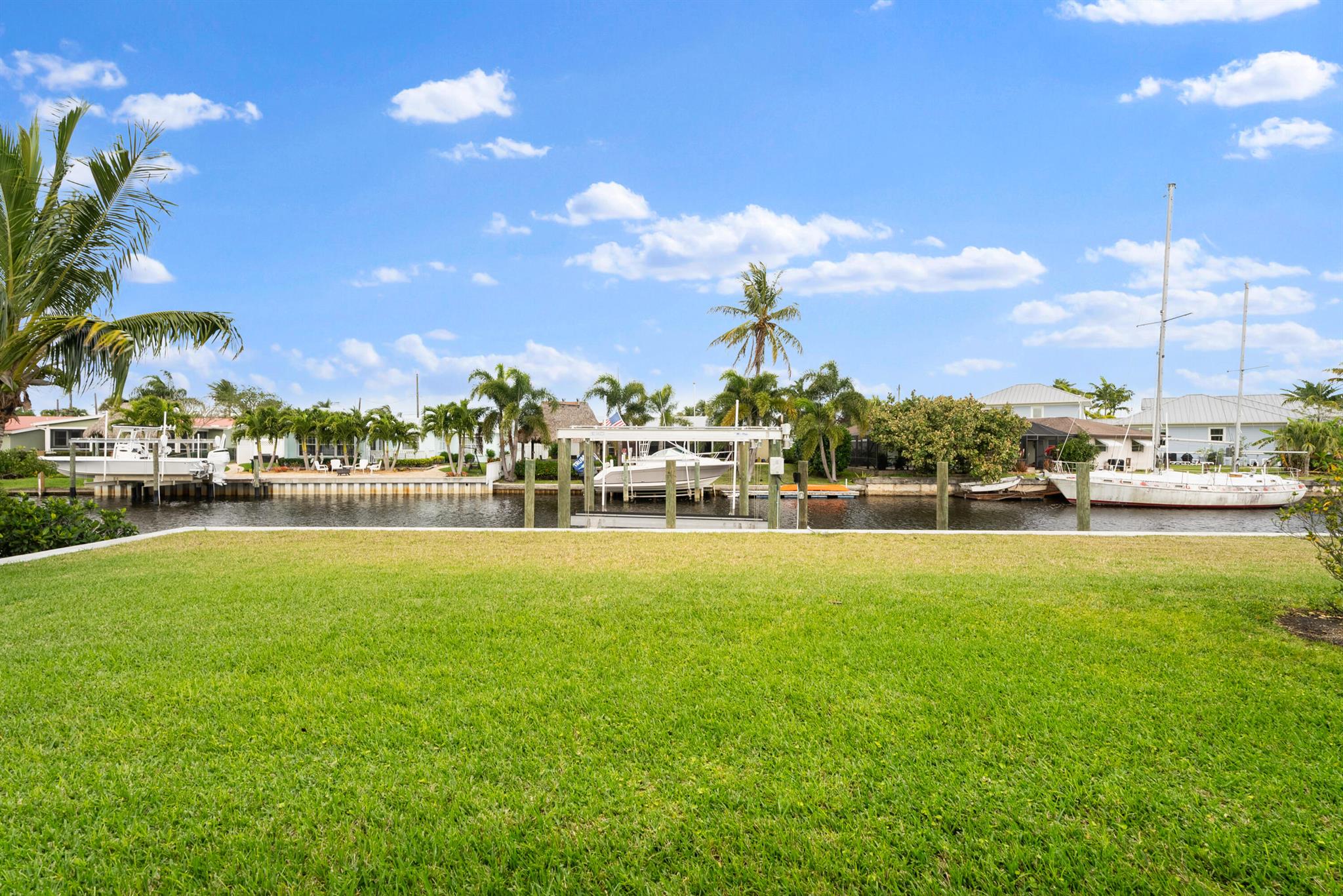 Nestled along the serene waterways of Palm City, this beautifully remodeled 2-bedroom, 2-bathroom home offers the perfect blend of modern amenities and tranquil coastal living. The updated kitchen boasts granite countertops, custom cabinetry, and stainless steel appliances with added buffet and wine bar. The spacious, screened-in patio provides an ideal setting for outdoor relaxation and entertaining, all while enjoying picturesque waterfront views. The master bedroom has a large walk in closet, added makeup counter or storage space and a walk in shower. Additional features include hurricane shutters metal roof and a new seawall, dock and 24,000# boat lift. Located just minutes from local shops, dining, and 20 minutes to the inlet by boat.