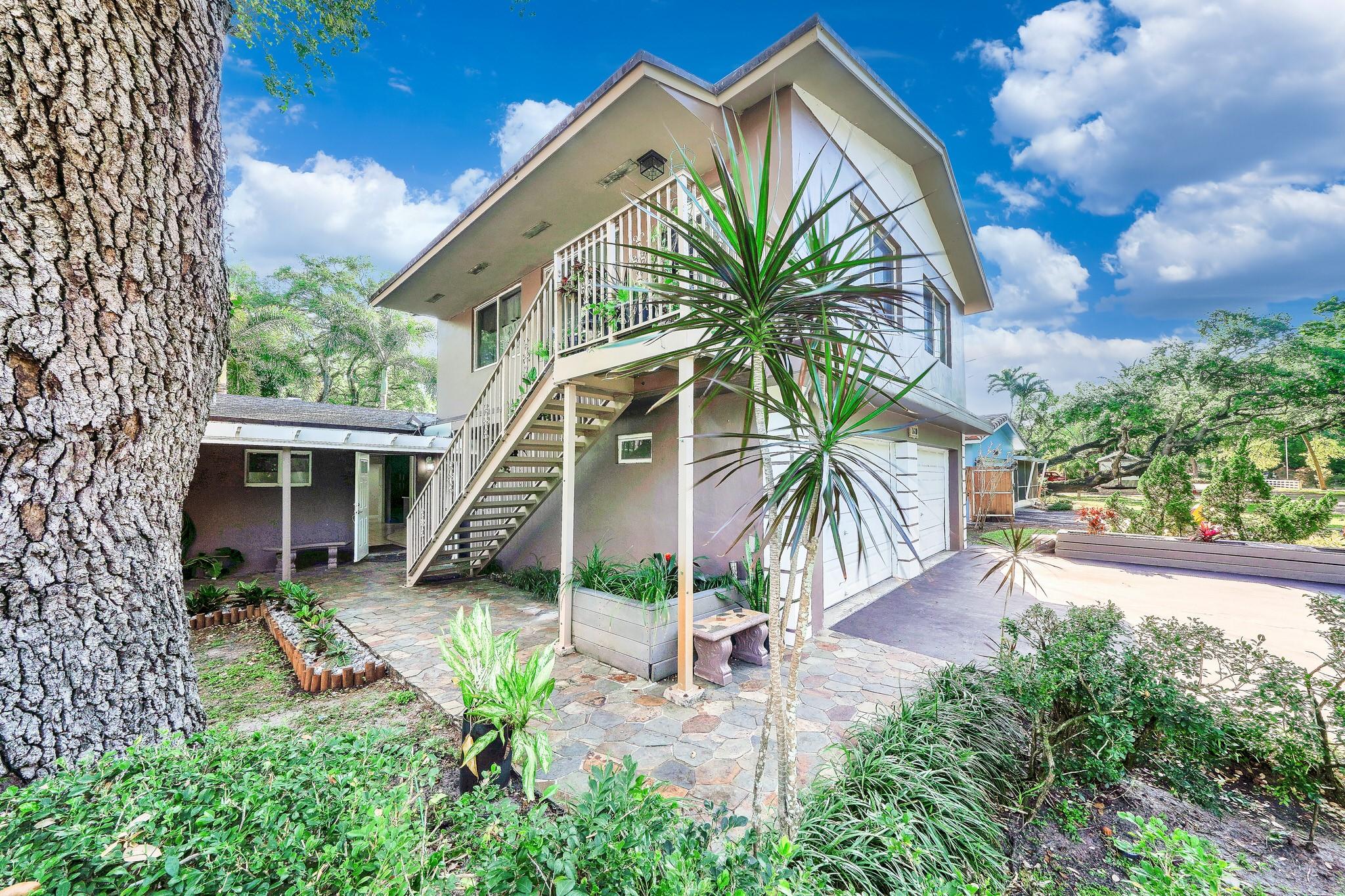 BRAND NEW ROOF! NO HOA! Perfect for Airbnb- 4 bd/3ba. 2 of bathrooms are new with open concept kitchen/living room, all new appliances, Florida room, impact windows & doors, Large 2car garage with washer & dryer in separate room in garage. the guest suite above large 2 car garage, with separate entrance thru staircase, has open concept kitchen/living room, bedroom & spacious bathroom, walk in closet with washer and dryer and separate A/C unit & thermostat, impact windows& door. PERFECT FOR OFFICE OR APT RENTAL INCOME. A/C in main house has brand new 2025 (10 yr warranty, guest suite A/C is 2 yrs old-8 yr warranty). Huge fenced in backyard with fruit trees, 2 patios, sprinkler system uses well water. Additional 2 outside parking spaces. Home is in a quiet neighborhood in a Cul de sac.