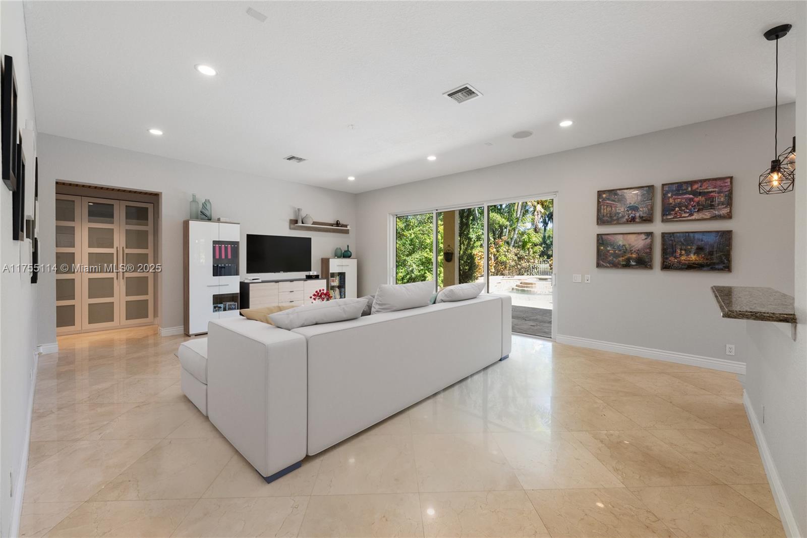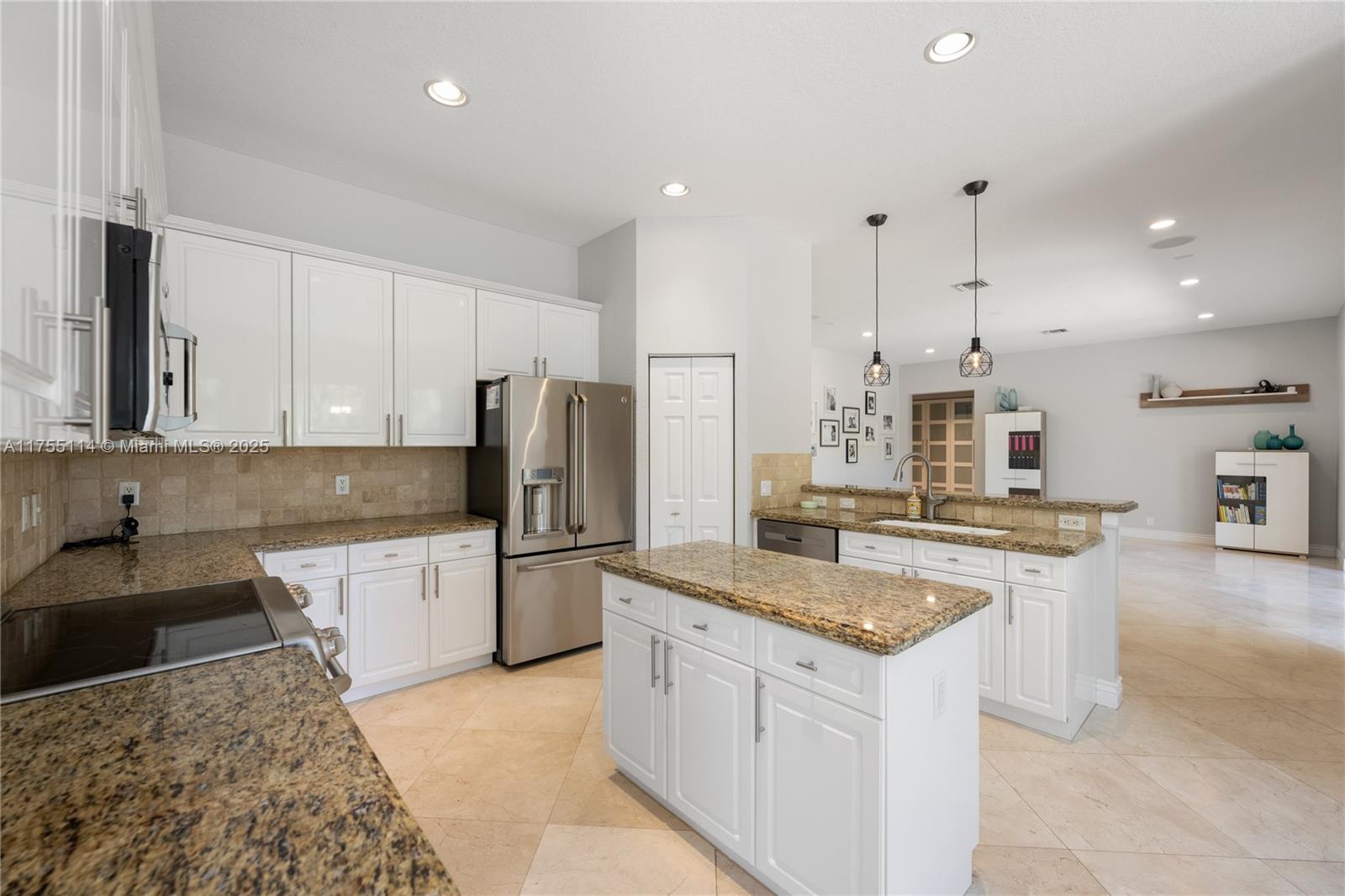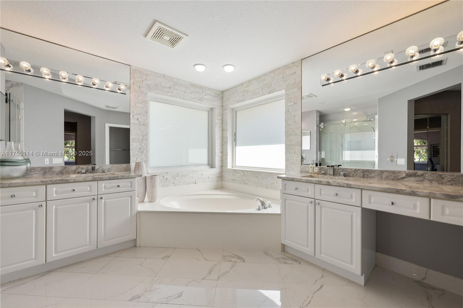 Welcome to this exceptional lakefront residence in the exclusive, resort-style gated community of Savanna. This stunning 5-bedroom, 4-bathroom home features a cabana bath, an office, and a versatile exercise room easily converted into a sixth bedroom. Enjoy an organic-shaped pool and jacuzzi, surrounded by lush tropical gardens with breathtaking lake views. The interior boasts marble floors on the main level, engineered wood upstairs, and an amazing spa-inspired guest bathroom. Brand-new 2024 hurricane-proof doors and windows provide security and elegance. The 3-car garage is designed as a man cave, teen hangout, or game room. Freshly painted and move-in ready, this home offers spectacular entertainment spaces, A+ schools, and world-class community amenities.