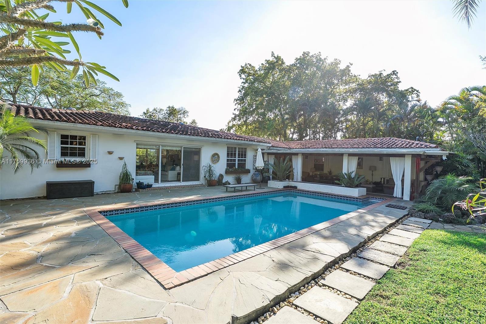 Breathtaking mid-century Villa in the heart of Miami Shores! This masterpiece blends timeless charm w modern updates, creating a home that is both elegant & inviting, featuring 3BRs, 3BAs, 1-car garage on a large double lot. Sunlight pours over the glistening terrazzo floors as you move through the living, family & dining rooms. When the terrazzo ends, stunning Brazilian Ipe wood adds warmth & sophistication. Two oversized bedrooms w generous cedar closets line one side, while the 3rd (& potential 4th) offers versatility on the other. Updated kitchen/baths complete the stunning interior. Step outside into your private serene backyard oasis, offering a deep pool, lush landscaping, sprawling deck & covered sitting area—perfect for entertaining. Short walk to restaurants, shopping & more!