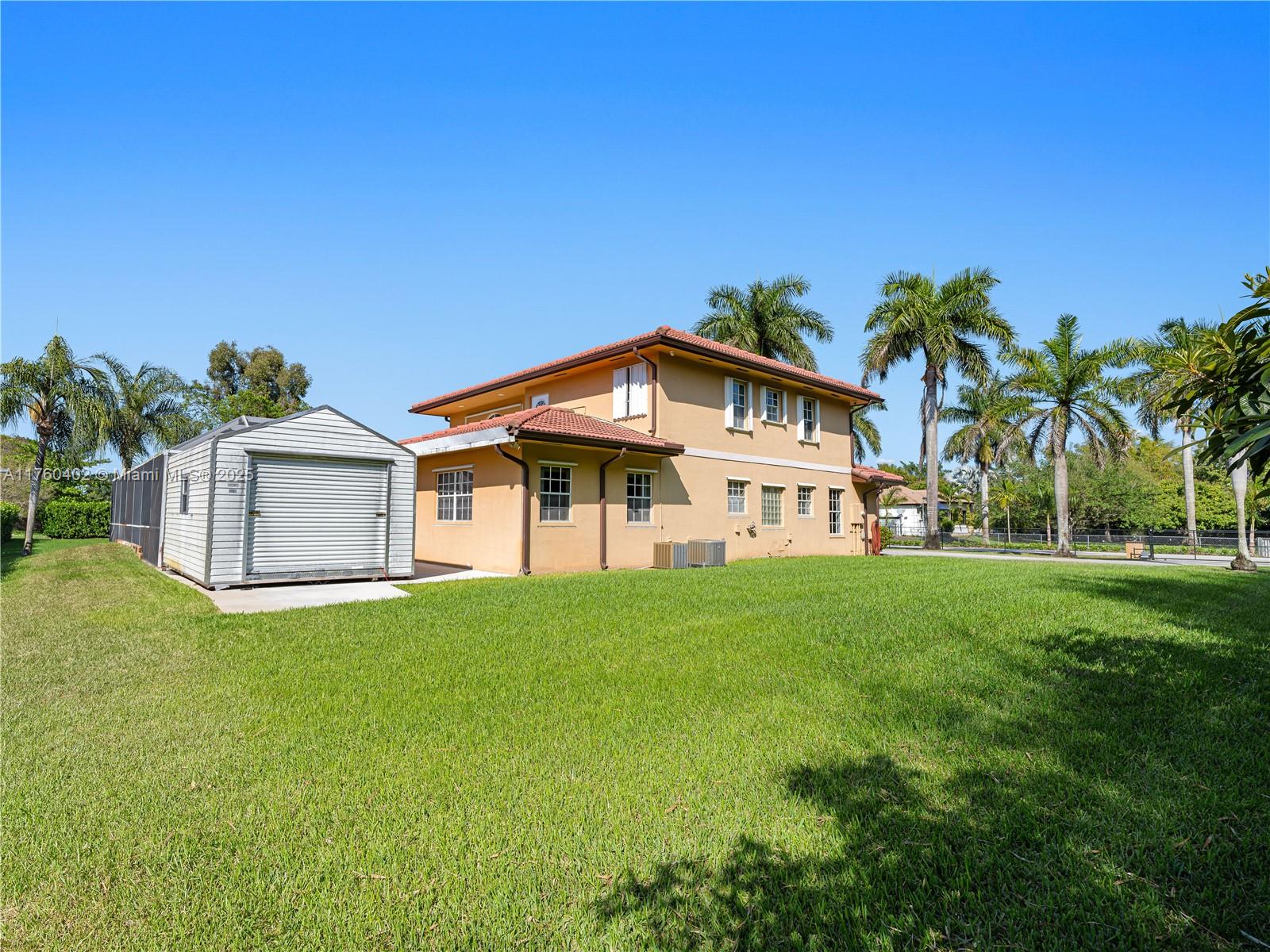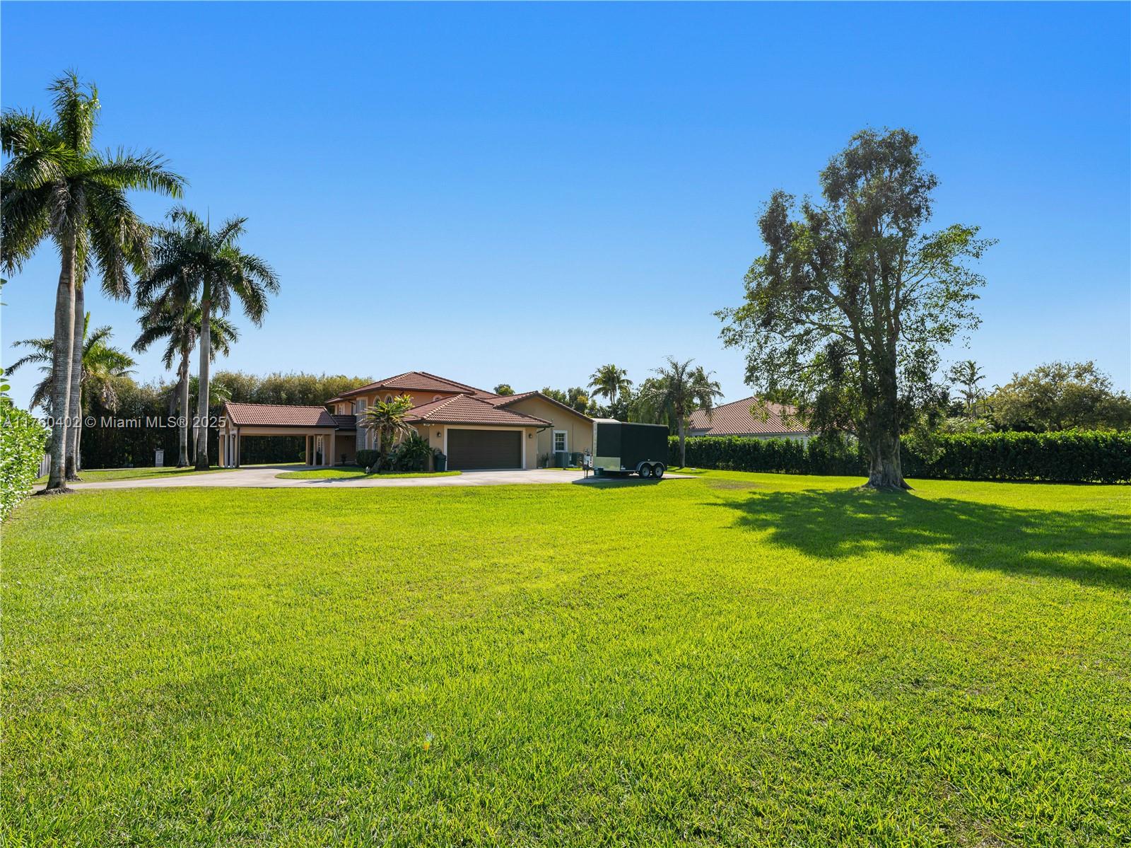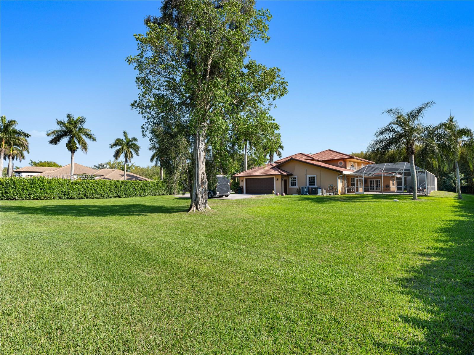 This residence, situated within the prestigious and sought-after Plantation Acres community, presents 4 spacious bedrooms and 4 full bathrooms, sprawling over a 37,236 square foot lot. The primary suite, along with an en-suite bedroom, is conveniently located on the ground floor. The interior features marble and wood flooring and high-volume ceilings. The exterior offers an expansive yard, saltwater pool ideal for entertaining, a circular driveway, a 2-car garage, a complete perimeter fence, and a shed for additional storage. Extended driveway for trailers, campers, boats, toy hauler, etc. Plenty of space for an RV as well. Located just minutes from the American Heritage School, Plantation Equestrian Center, and upscale shopping and dining, this home offers tranquil and luxurious living.