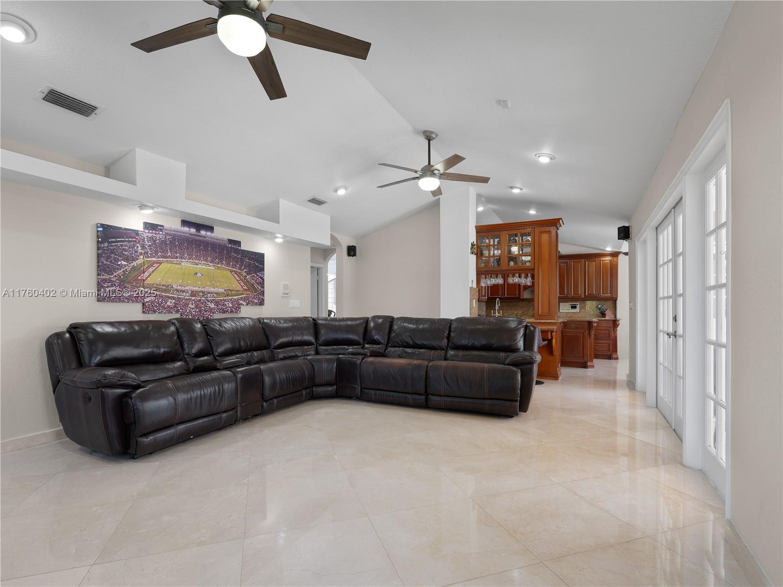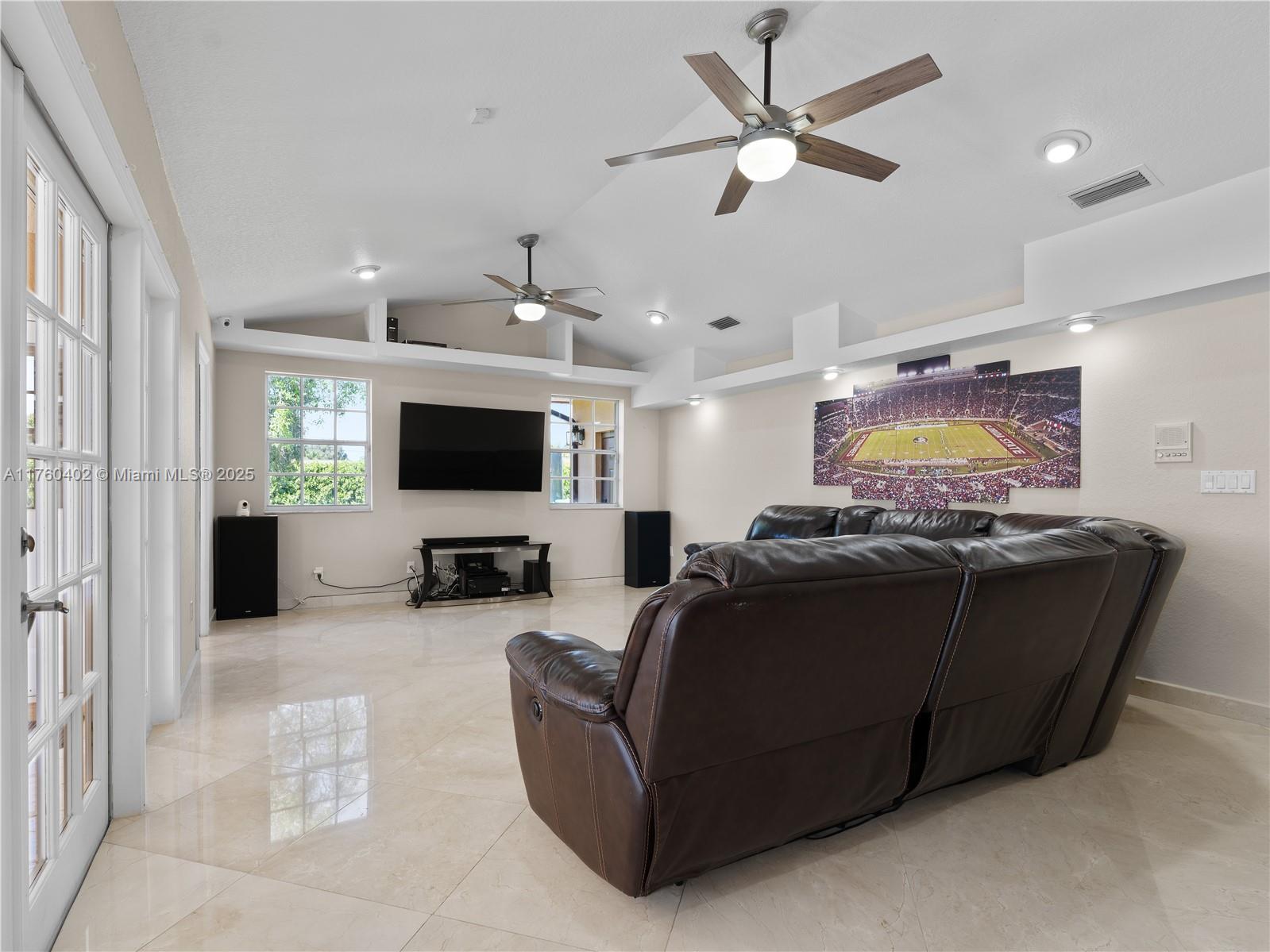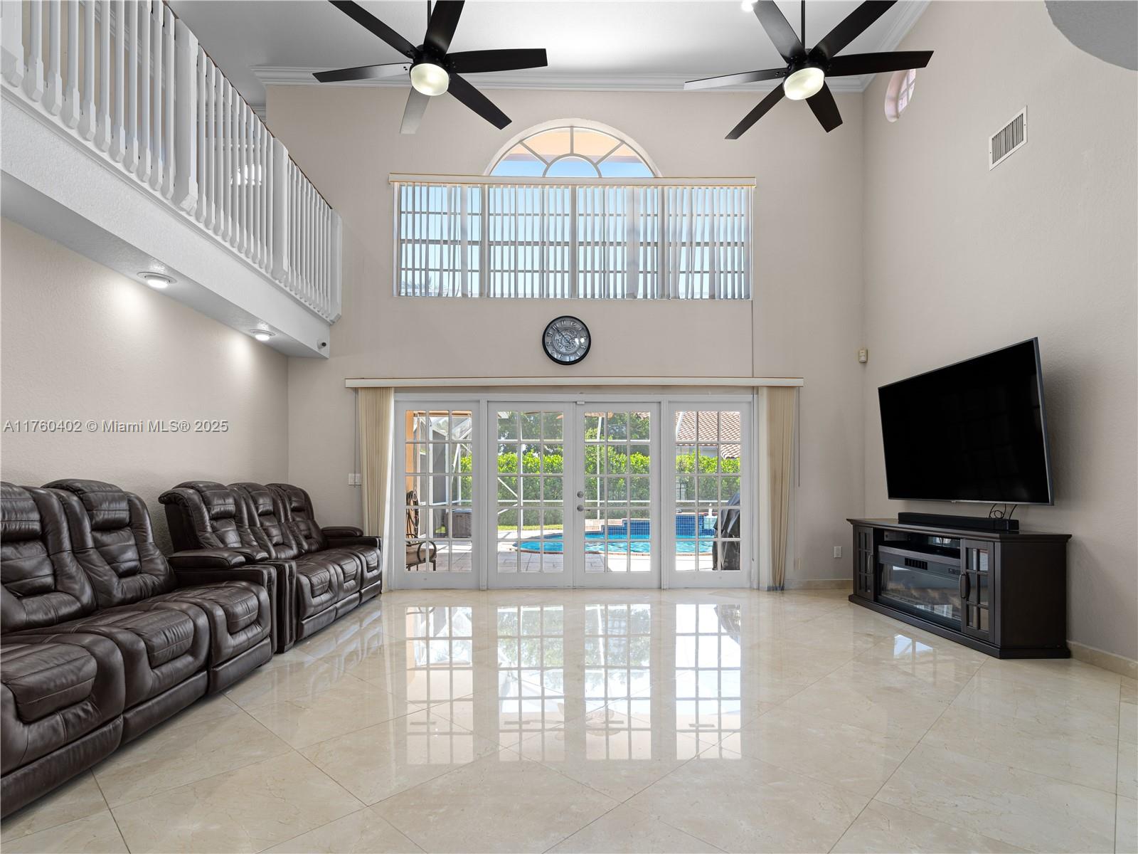 This residence, situated within the prestigious and sought-after Plantation Acres community, presents 4 spacious bedrooms and 4 full bathrooms, sprawling over a 37,236 square foot lot. The primary suite, along with an en-suite bedroom, is conveniently located on the ground floor. The interior features marble and wood flooring and high-volume ceilings. The exterior offers an expansive yard, saltwater pool ideal for entertaining, a circular driveway, a 2-car garage, a complete perimeter fence, and a shed for additional storage. Extended driveway for trailers, campers, boats, toy hauler, etc. Plenty of space for an RV as well. Located just minutes from the American Heritage School, Plantation Equestrian Center, and upscale shopping and dining, this home offers tranquil and luxurious living.