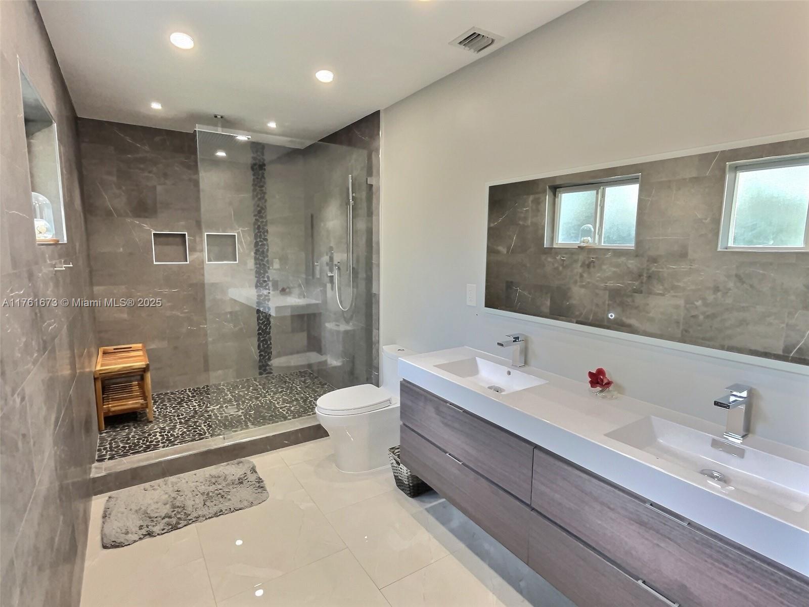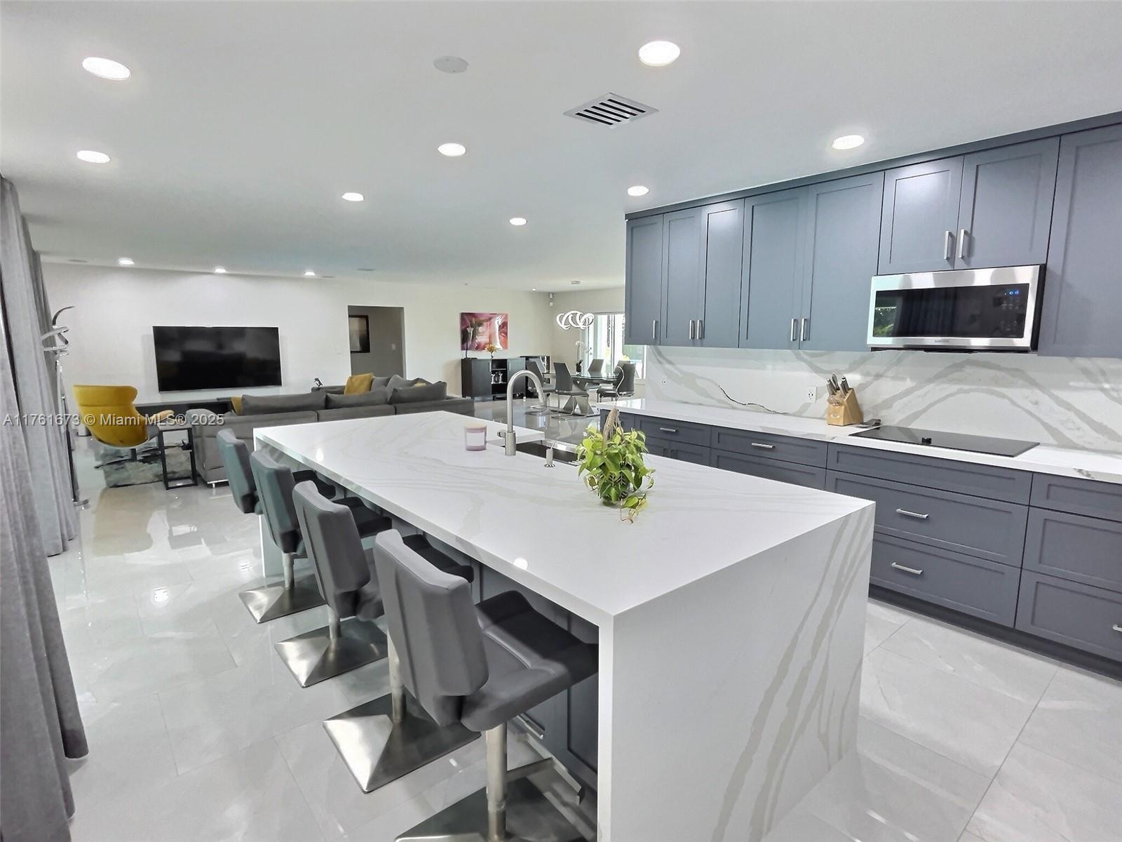 This stunning, renovated gem in coveted Hollywood Beach is nestled on a rare double-sized lot and features an open floor plan and sleek modern features. The heart of the home is the expansive chef's kitchen with gourmet appliances, including double wall oven, and quartz counters. The spacious master suite is a true retreat, featuring a large master bath and walk-in custom closet. Outside, a large pool with cascading spa awaits, ideal for relaxation and entertaining, all while enjoying the privacy and space that comes with an oversized lot. The home is equipped with impact windows and doors providing added peace of mind. The prime location places you just moments away from the ocean including the shops, dining, and nightlife on the Broadwalk.