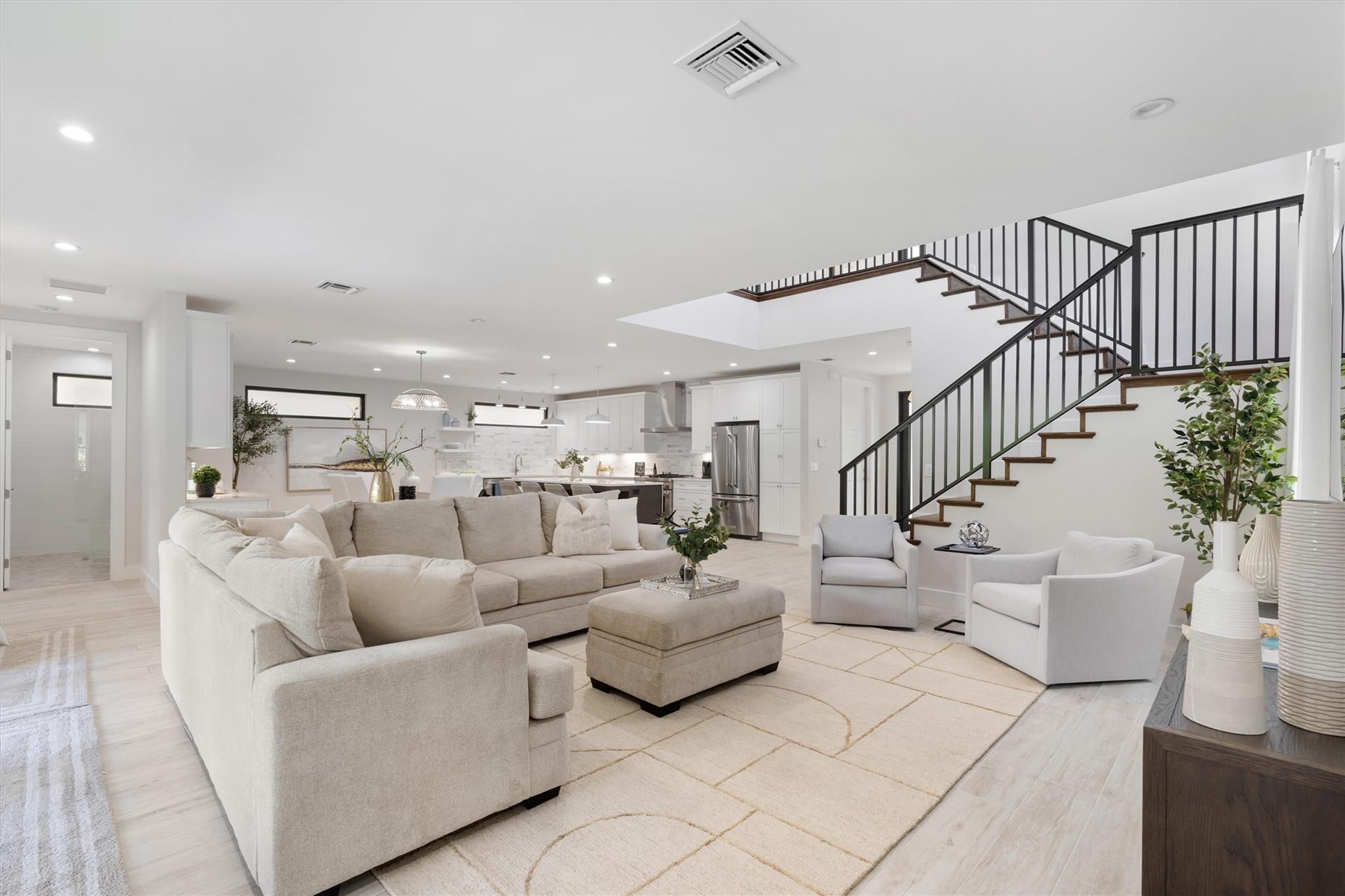Located in the heart of Victoria Park, this stunning 4-bedroom + office, 4-bath home offers over 3,300 sq. ft. of luxurious living space. Designed with an open-concept layout and filled with natural light, it features a chef’s kitchen with KitchenAid appliances, a gas cooktop, and quartz countertops. The second-floor primary suite boasts a walk-in closet, private balcony, and spa-like bath with dual vanities, a large shower, and a soaking tub. Additional highlights include spacious secondary bedrooms, a wet bar, and a generous 2-car garage w/ epoxy coating. Step outside to a beautifully landscaped backyard with a pool, sun shelf, and large covered patio—perfect for entertaining. Just minutes from Fort Lauderdale Beach, Las Olas, shopping, and dining!