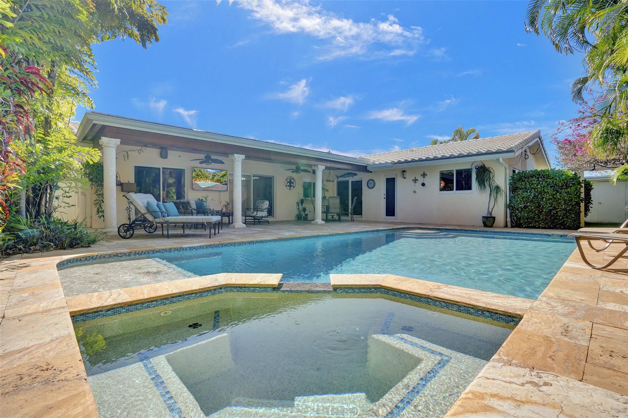 Discover the perfect blend of comfort and location in this beautiful home built on an elevated ridge and tucked into the desirable neighborhood of Mary Knoll, in eastside Coral Ridge Addition. The lushly landscaped and fully fenced back yard offers a spacious covered patio with heated pool/spa for private living and entertaining with easy access to the updated kitchen. Enjoy the compact putting green in the backyard for that little extra practice time. There is full hurricane protection including impact windows and doors and the replaced underground pipes offers peace of mind. Inside, enjoy the natural light, marble floors throughout the living areas, split bedroom layout and a large family room off the kitchen. Other features include a tankless hot water heater and two water meters.