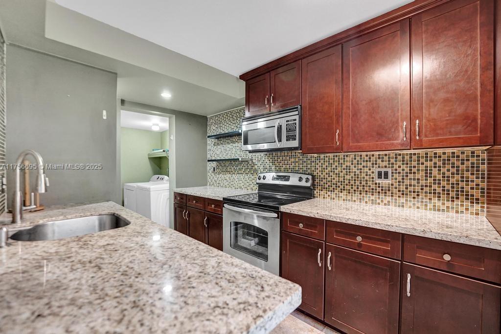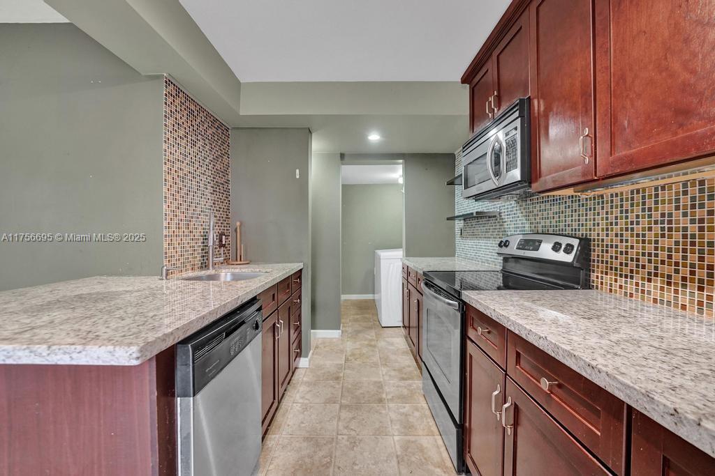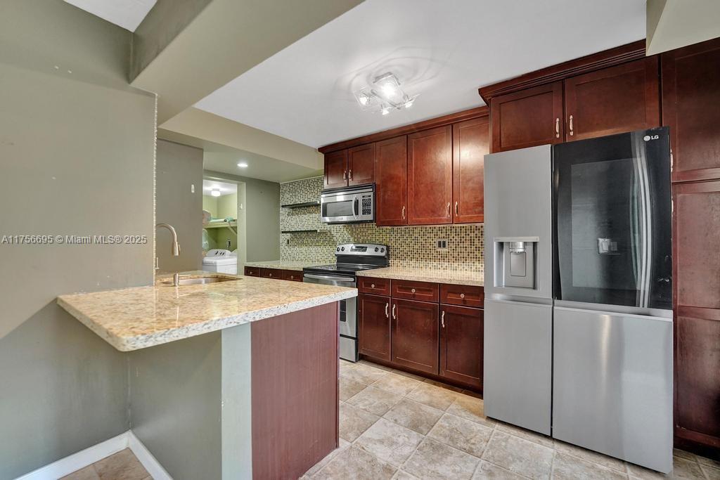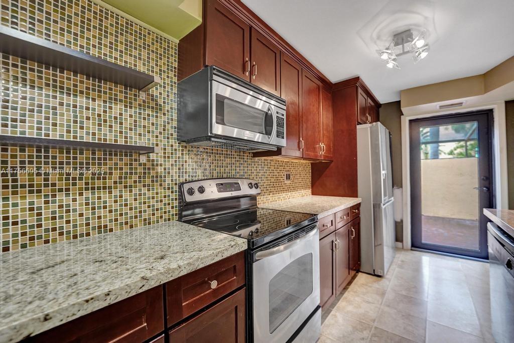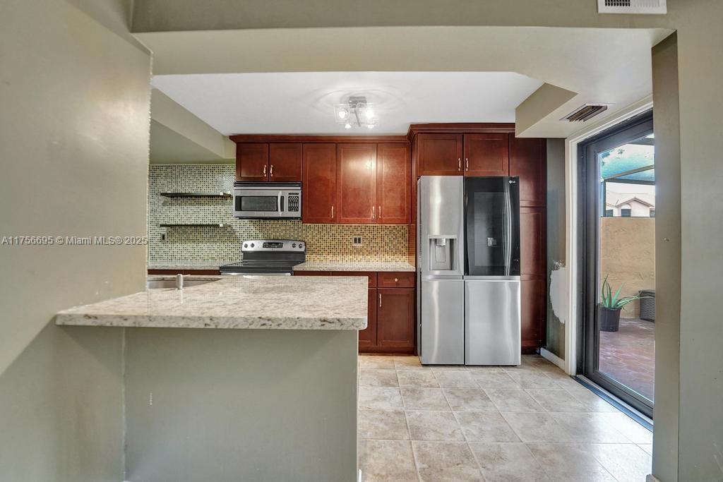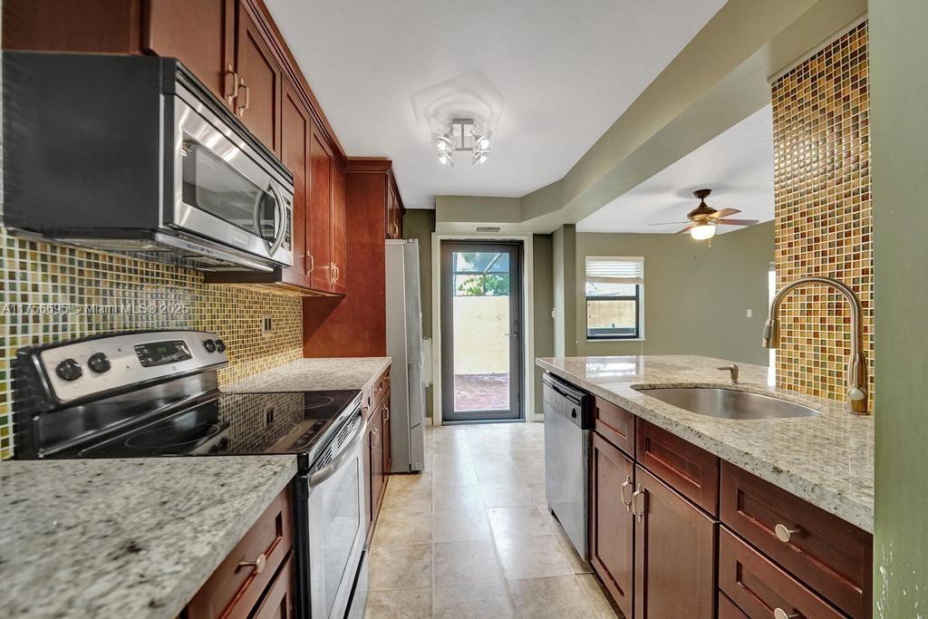 Wow, great value in updated end-unit corner TH in gated Heron's Landing of Pembroke Pines! This stunning TH boasts 2-story LR with 2 skylights, newer impact windows & doors throughout, open concept updated kitchen with counter bar, granite counters & backsplash, SS appliances & wood cabinets. Laundry & powder room on main level. A huge private screened patio is great to enjoy outdoors & for entertaining guests. The 2nd level is complete with spacious 2 BRs 2 Bths. The primary BR has a large walk-in closet & en-suite bath with two sinks & additional closet. NEW AC & 1-car garage + exterior space. Lowest HOA fees $185 a month includes: outdoor Pool, indoor RB & BB courts, Gym & Child's Play area, all in secure gated community! Seller to provide $3,500 credit at closing to buyer for updating.