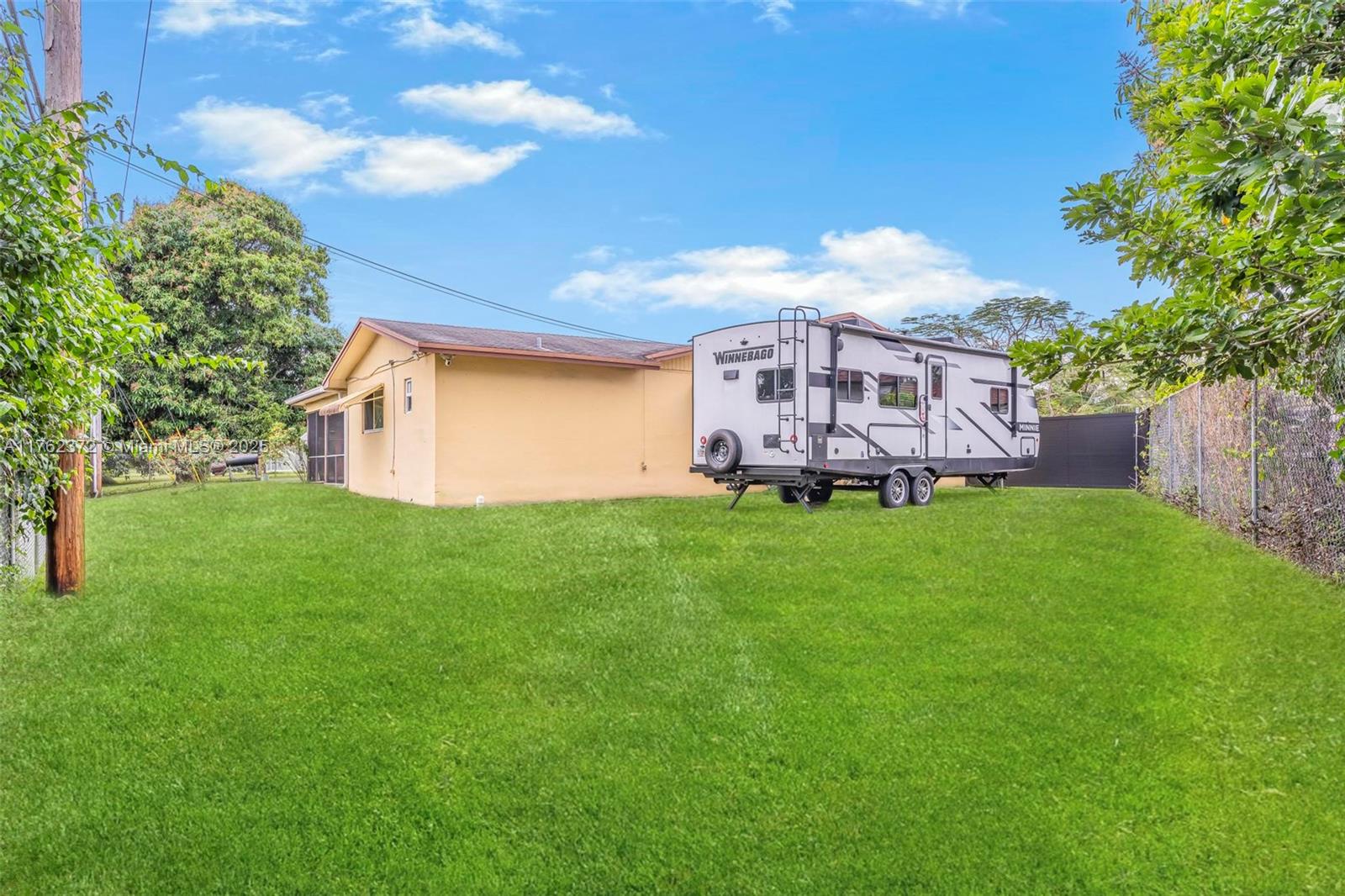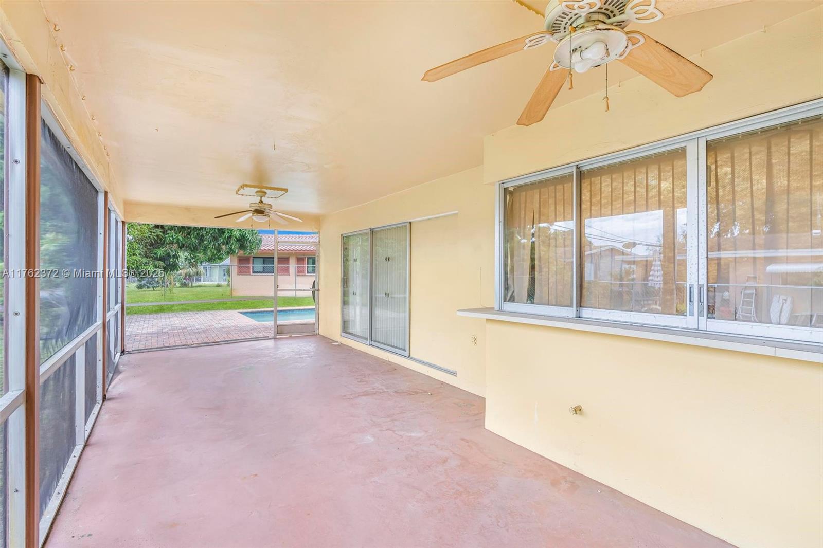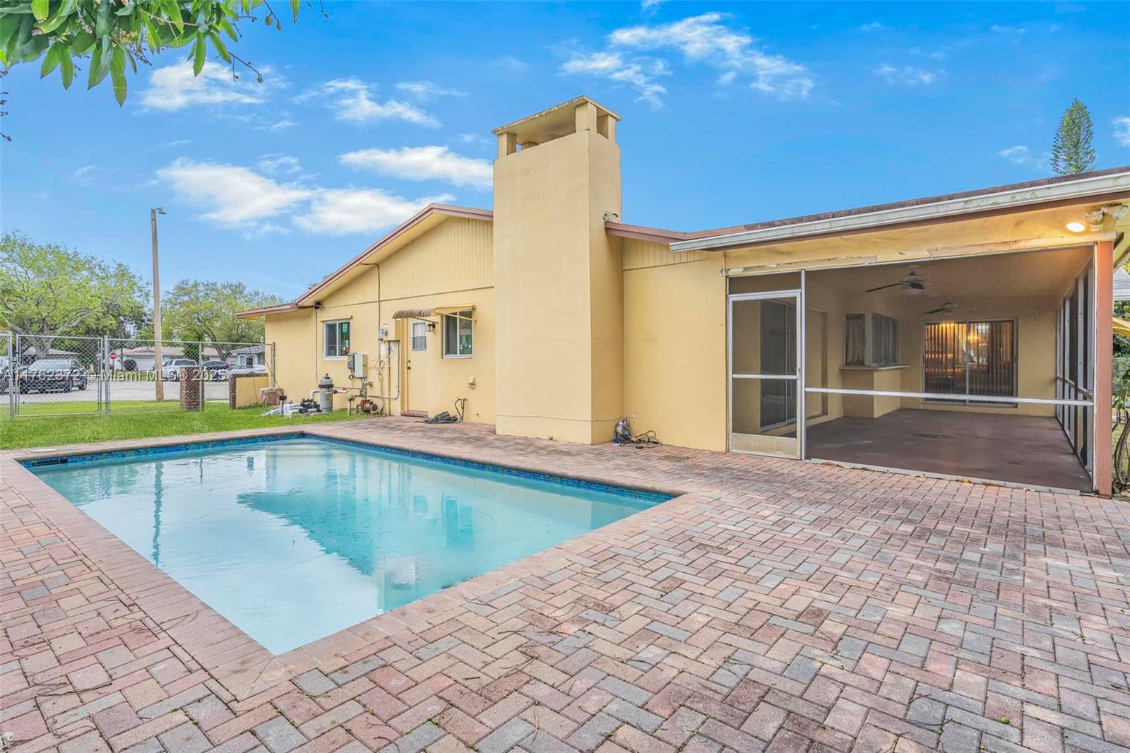 Nestled on a quiet cul-de-sac, this beautifully spacious 3-bedroom 2-bathroom home sits on an oversized lot, offering both comfort and privacy. Newer impact windows and doors enhance security and energy efficiency throughout the home. Enjoy a newer pool, that was recently installed, perfect for outdoor relaxation and South Florida living. The kitchen flows into 2,100 sq. ft. of living space, featuring a cozy brick fireplace, family and living rooms, and a formal dining area. A large roofed and screened patio extends your living space outdoors. With plenty of closets and storage, plus a huge backyard with a mango tree, this home is a must-see!