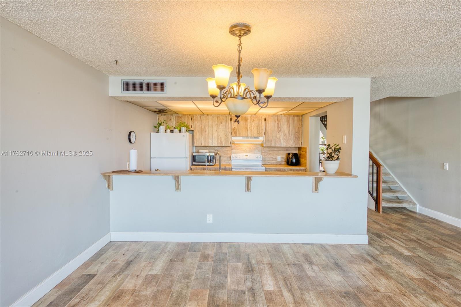Welcome to your serene retreat in the Villas Lakes Community of Pembroke Pines. This spacious, corner townhome offers volume ceilings and a west view of the lake - perfect for watching the sunset. Fantastic layout with 1 bedroom and full bathroom downstairs and a kitchen that opens to the living areas. Upgrades include a beautifully renovated primary bathroom, wood-look tile downstairs, and a 2020 AC system. The large patio is great for entertaining and offers the best view in the community. Low HOA fee includes the pool, basketball court, tennis court, club house, cable, landscaping & roof repairs. Zoned to top schools with great shopping and dining nearby.