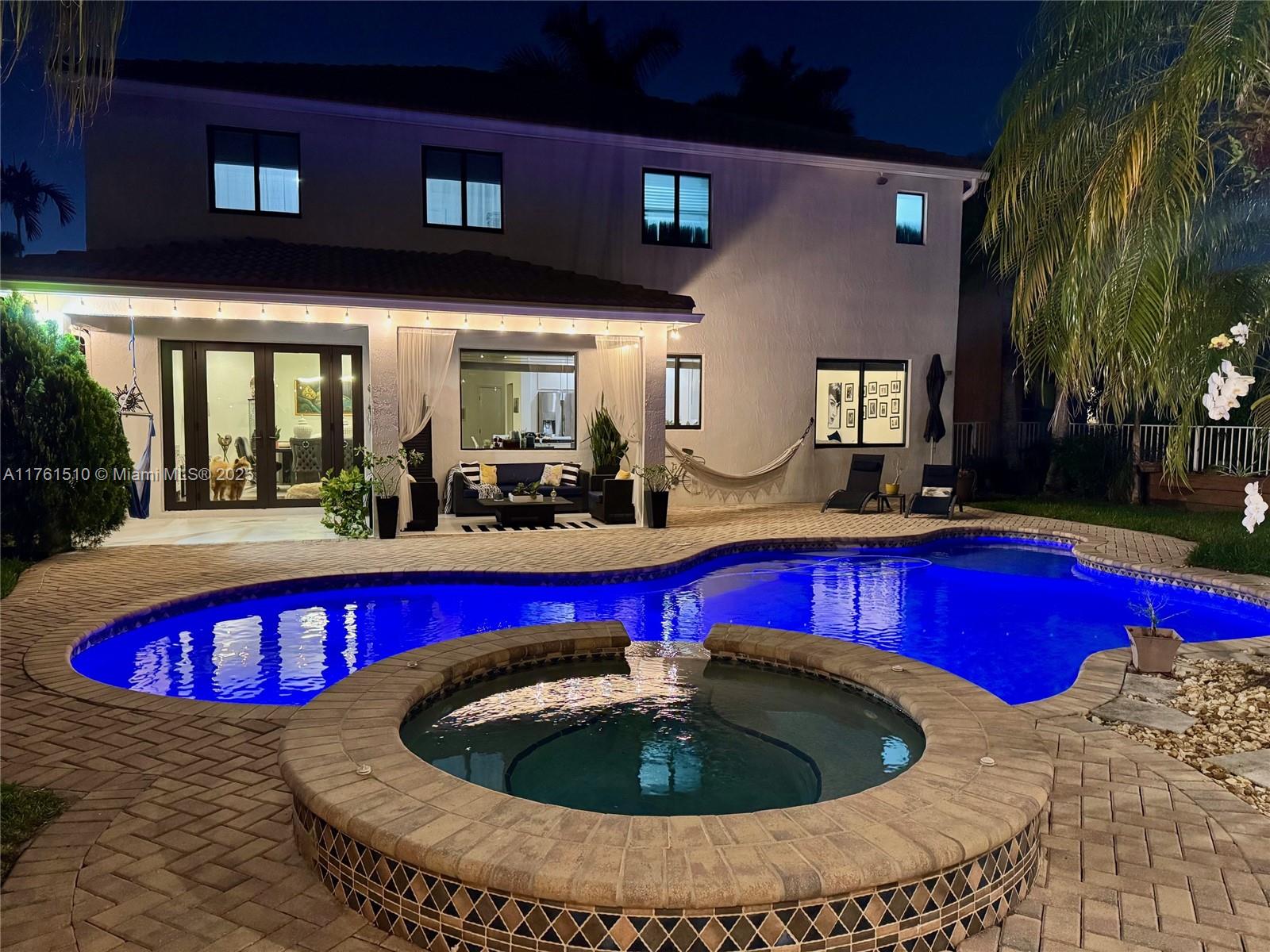 Stunning Fully Renovated Home with Exceptional Outdoor Living in Weston! Step into this one-of-a-kind, fully renovated home (2019) featuring impact windows throughout, a spacious three-car garage, and soaring high ceilings. Originally a six-bedroom home, it has been thoughtfully converted into 5BR / 4 BA + a powder room. The layout is ideal, w/ 4BR upstairs and a private one-bedroom, one-bath suite downstairs—perfect for guests or multigenerational living. But the true highlight? The expansive outdoor area! A massive pergola with three distinct entertainment spaces creates the ultimate setting for gatherings. Enjoy the heated pool, relaxing jacuzzi, and plenty of room to entertain year-round.Located in a gated community with a very low HOA, within the best public schools in the nation