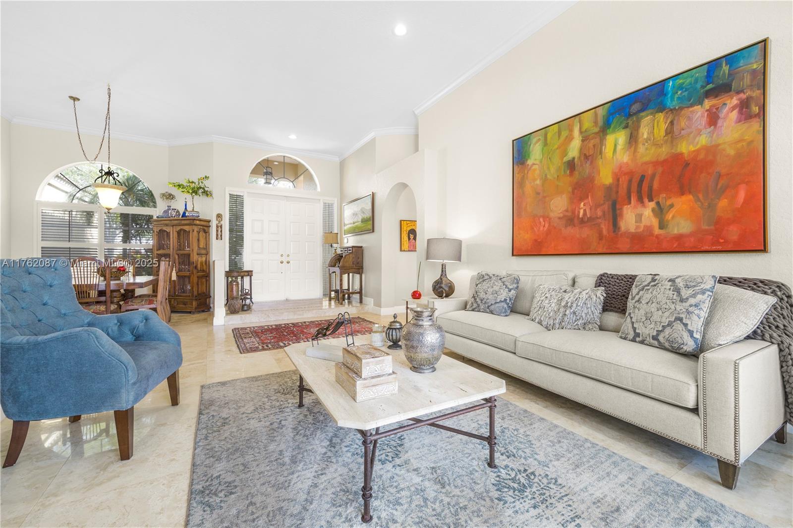 This contemporary chic home boasts a sought-after one stoy split floor plan with 4 bedrooms and 3 bathrooms, featuring a remodeled kitchen with custom wood cabinets, granite countertops, and stainless steel appliances. Marble baths with frameless showers, and custom closets, this turnkey property offers luxurious living. Enjoy the spacious covered screen patio and pool with 24" travertine floors overlooking a private waterfront lot on a beautiful tree-lined street in Weston Hills. Additional highlights include a raised foyer, plantation shutters, professional landscaping. Situated in a community with a park and top-rated schools, this home offers the ideal blend of elegance and convenience.