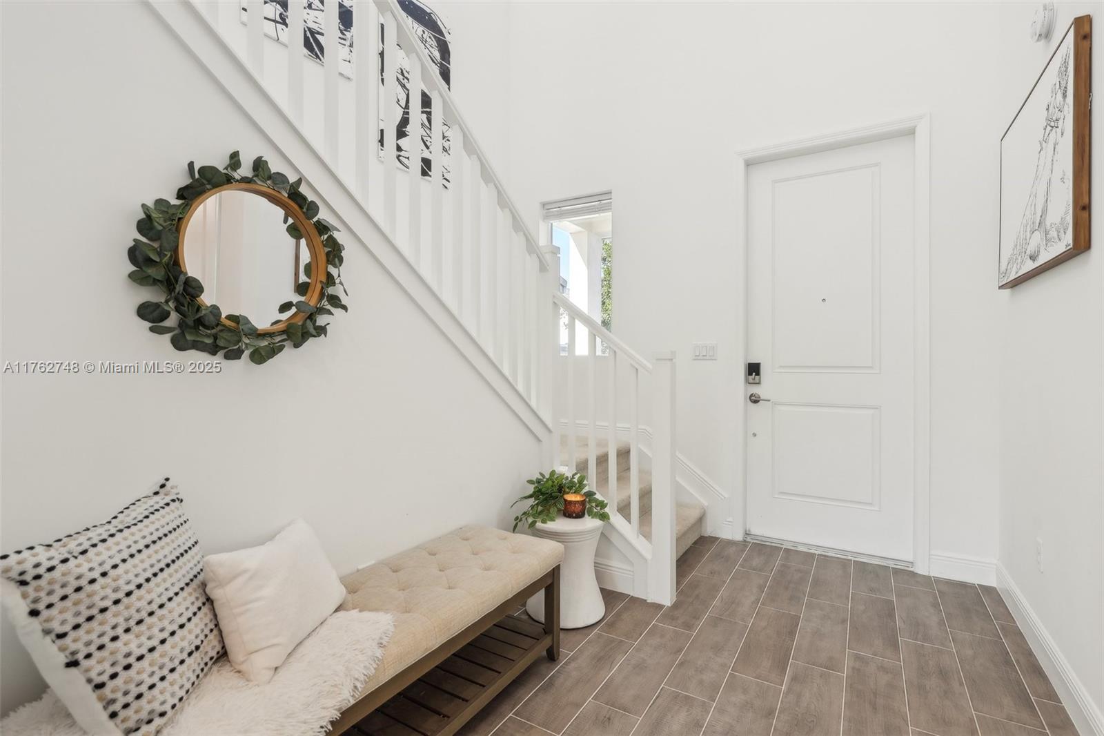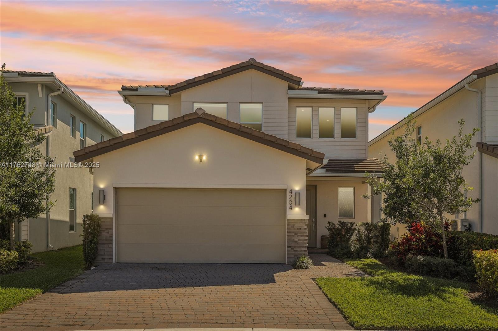 Nestled in the exclusive gated community of Veleiros at Crystal Lake, this meticulously maintained 2021-built residence offers 3 bdrms, 2.5 baths, and a versatile first-floor flex room—ideal as a 4th bdrm or private office. The grand entryway features double-height ceilings, complemented by new tile flooring throughout the main level. The gourmet kitchen is a culinary enthusiast's dream, equipped w/ quartz countertops, a center island, 42” cabinetry, wall oven, & a sleek range hood. Smart home technology & impact windows ensure modern convenience & peace of mind. The open-concept living area flows seamlessly into the backyard, offering serene water views & space for a pool. Residents enjoy resort-style amenities, including a clubhouse, fitness center, tot lot, and beach-entry pool.
