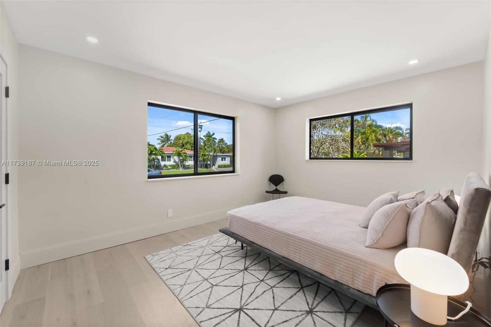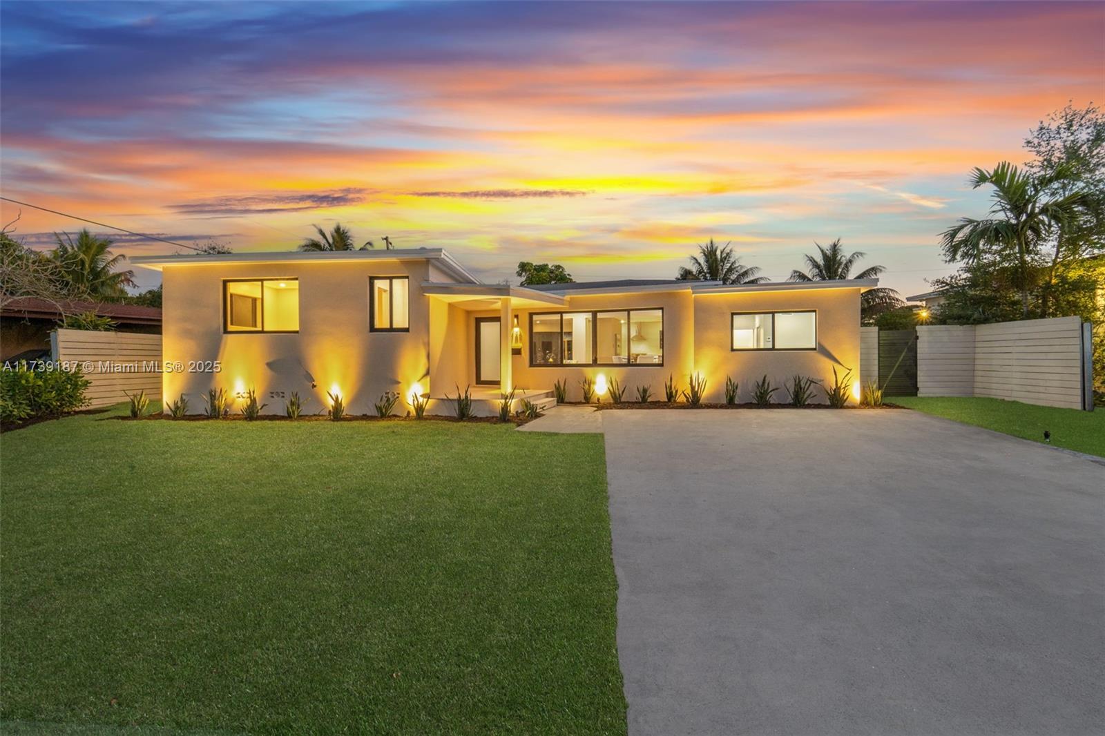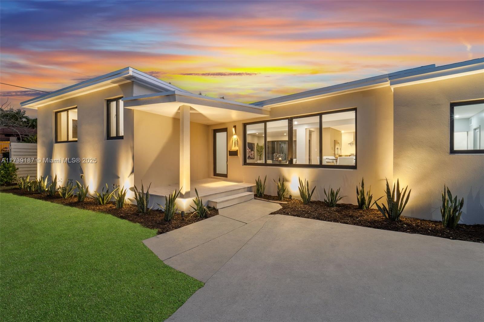 A fully renovated 4-bed, 3-bath mid-century home, nestled in a beautiful enclave near Miami Shores, is a true seamless blend of modern design and custom finishes. The residence boasts a new roof (2025), new impact windows, and a new two-zone AC system. Every inch has been thoughtfully resurfaced, renovated and reimagined, blending indoor and outdoor living. The gourmet eat-in kitchen is equipped with custom cabinetry and premium appliances. Spacious living areas include a formal dining room, living room, and den with french doors that open to a lush, private backyard oasis. This home has 2 bedrooms with ensuite bathrooms and a dedicated laundry room, enhancing its functionality and convenience. Just steps from top schools, dining, and recreation, this is refined living at a great price.
