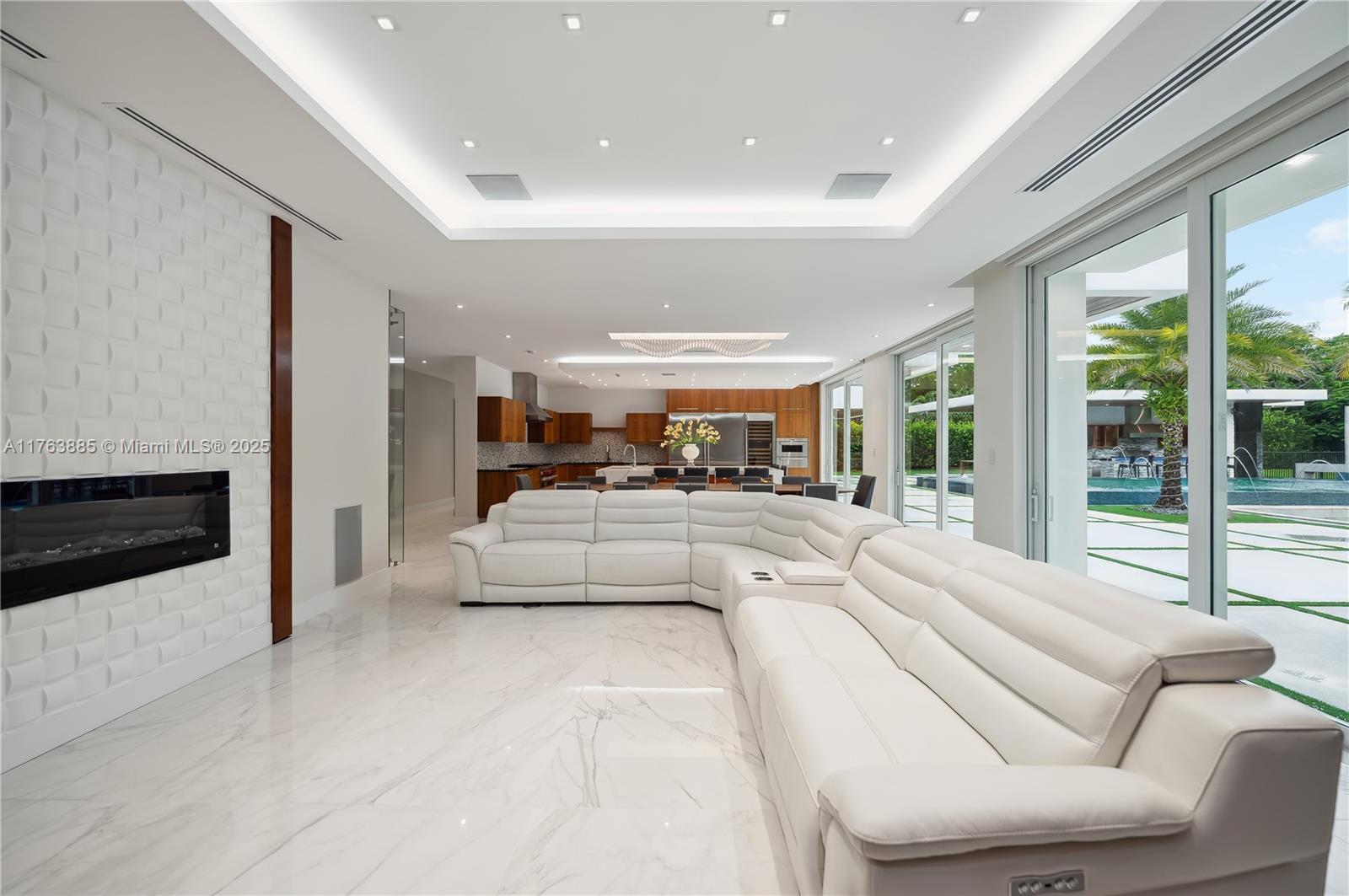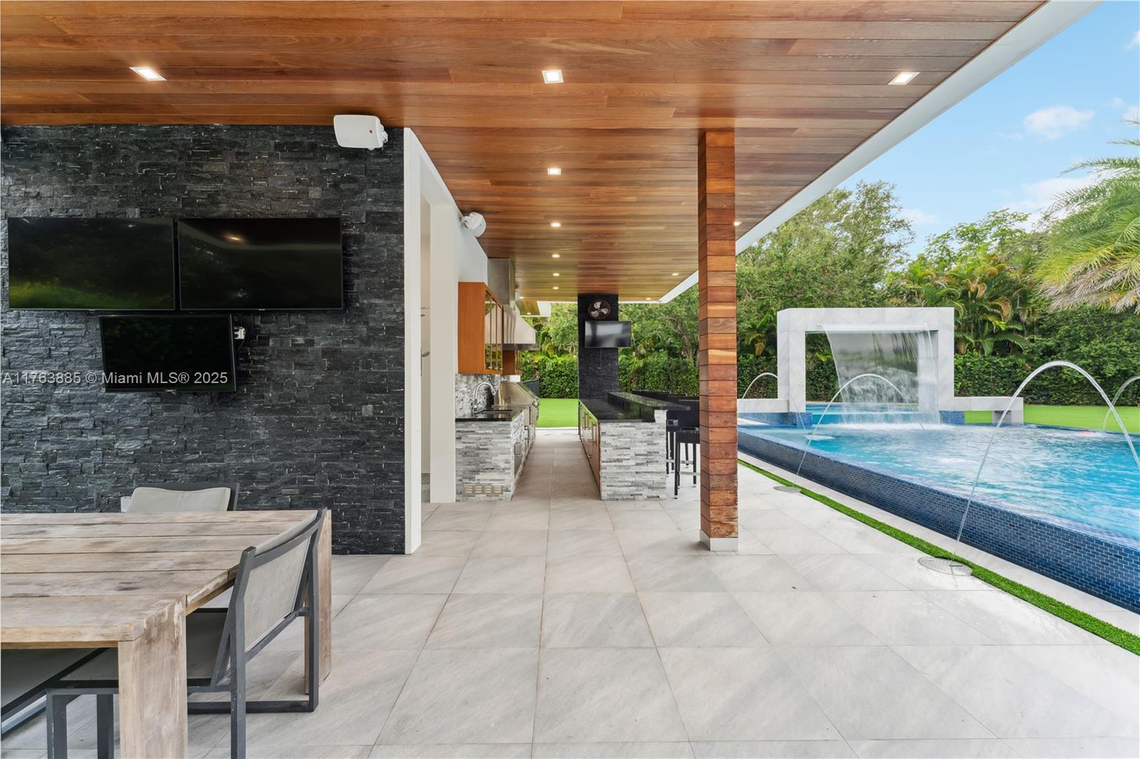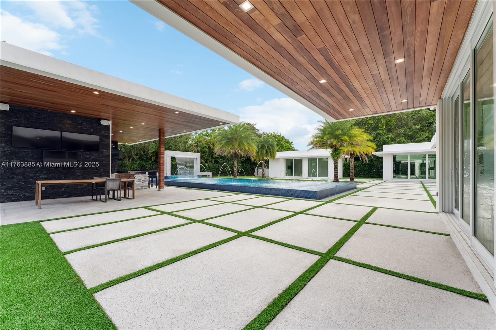 Resort-style living on a Pinecrest Acre+ lot, "PERFECTION". A 2020-built modern work of art. Greeted by soothing sounds of tranquil water features from your Port Cochere, prepare to be awestruck as you enter the Grand Foyer, where majestic Imperial staircases and soaring ceilings create an ambiance of luxury living. With 10,150 sqft. of living space, 8 bedrooms, 10.5 baths, and over an acre of manicured land, this home was custom-designed for those who revel in the art of entertainment. Homes features a custom Italian kitchen, Wolf appliances, gas stoves, wine cellar, elevator, 18 zones of sound, smart features, Lutron lighting, 8k surveillance, a guest house, a dog park (with AC), gym, 3 car garage, firepit, 50ft pool/spa, summer kitchen, waterfall & near Miami's finest schools.