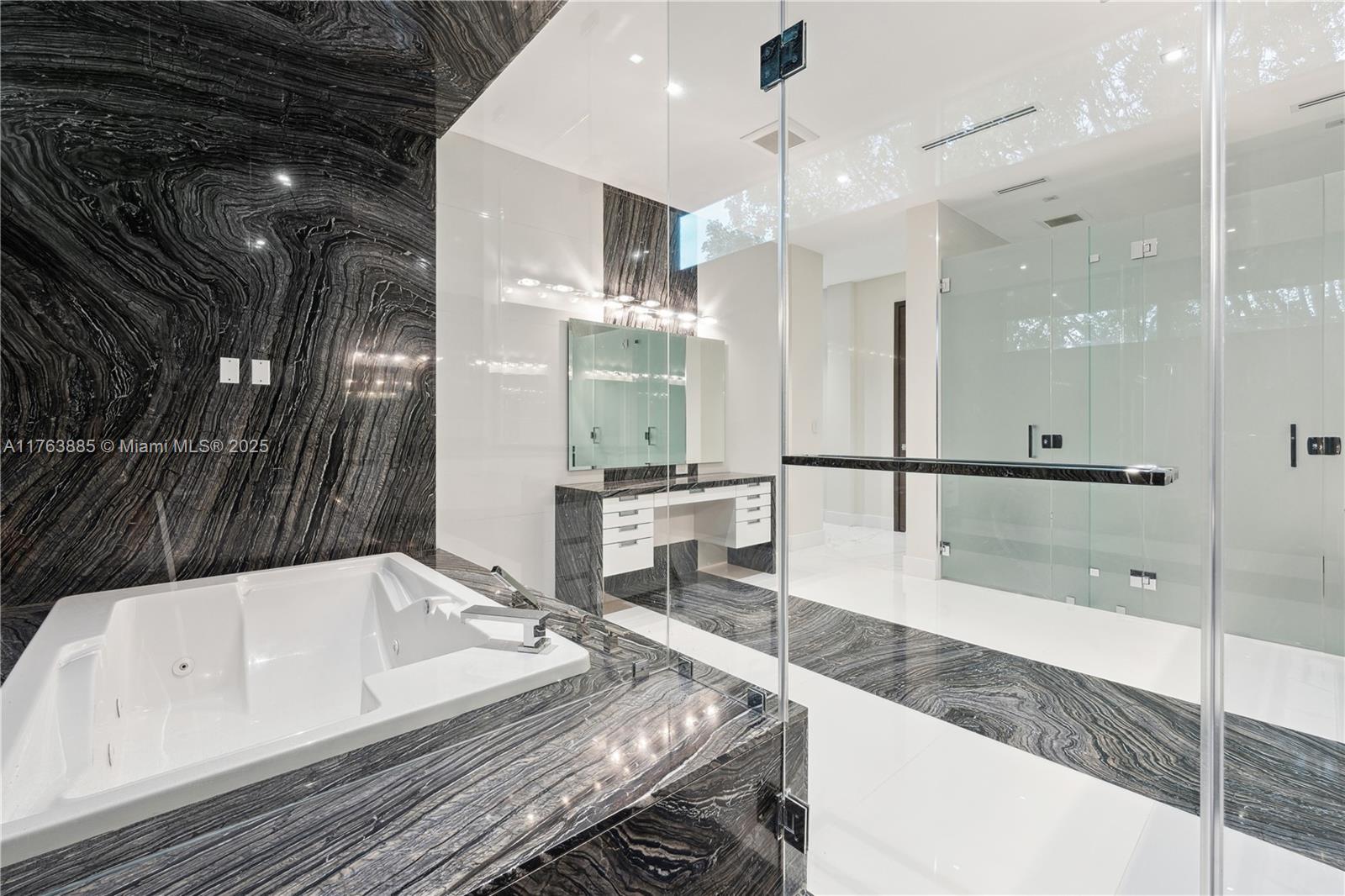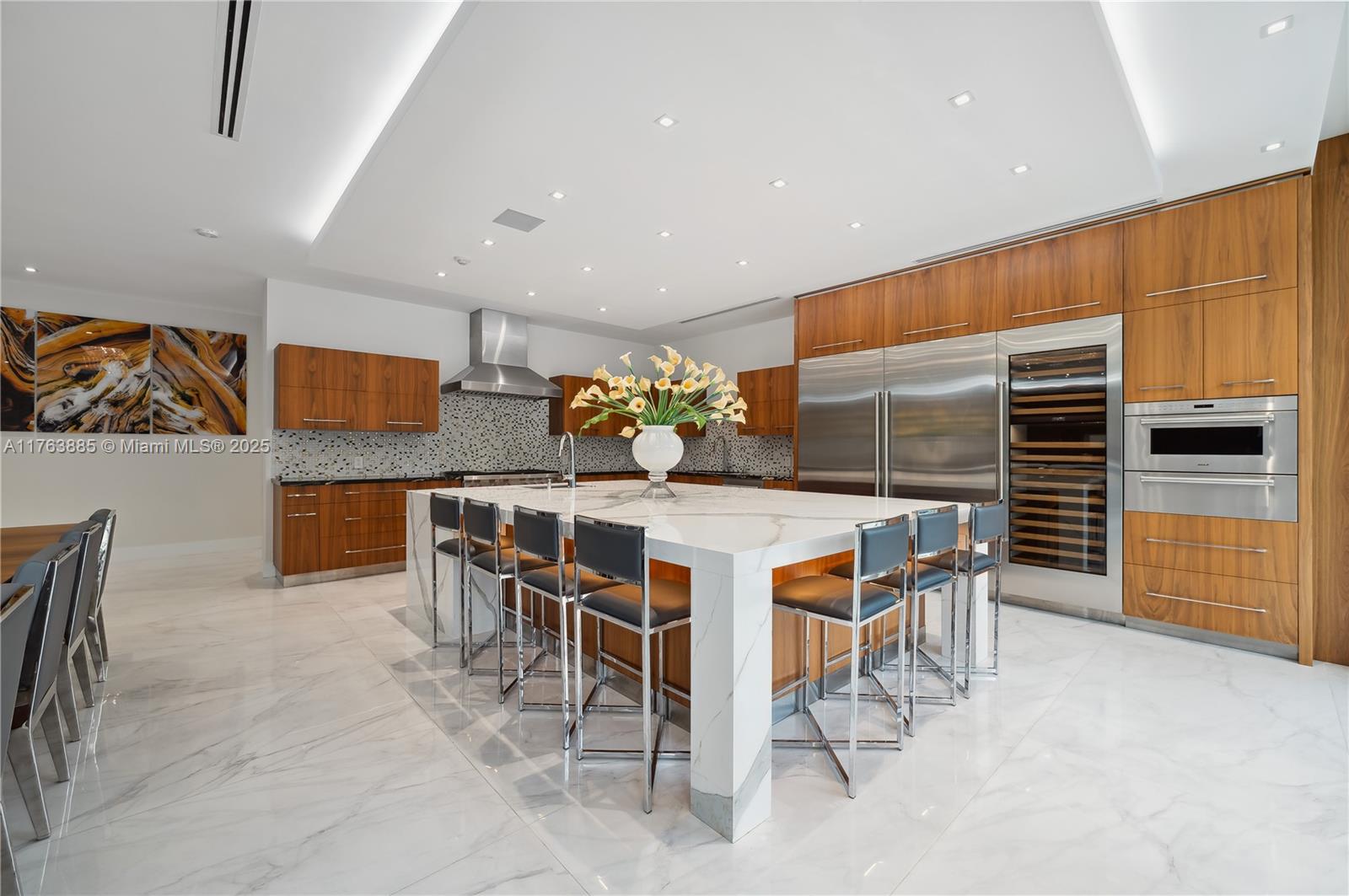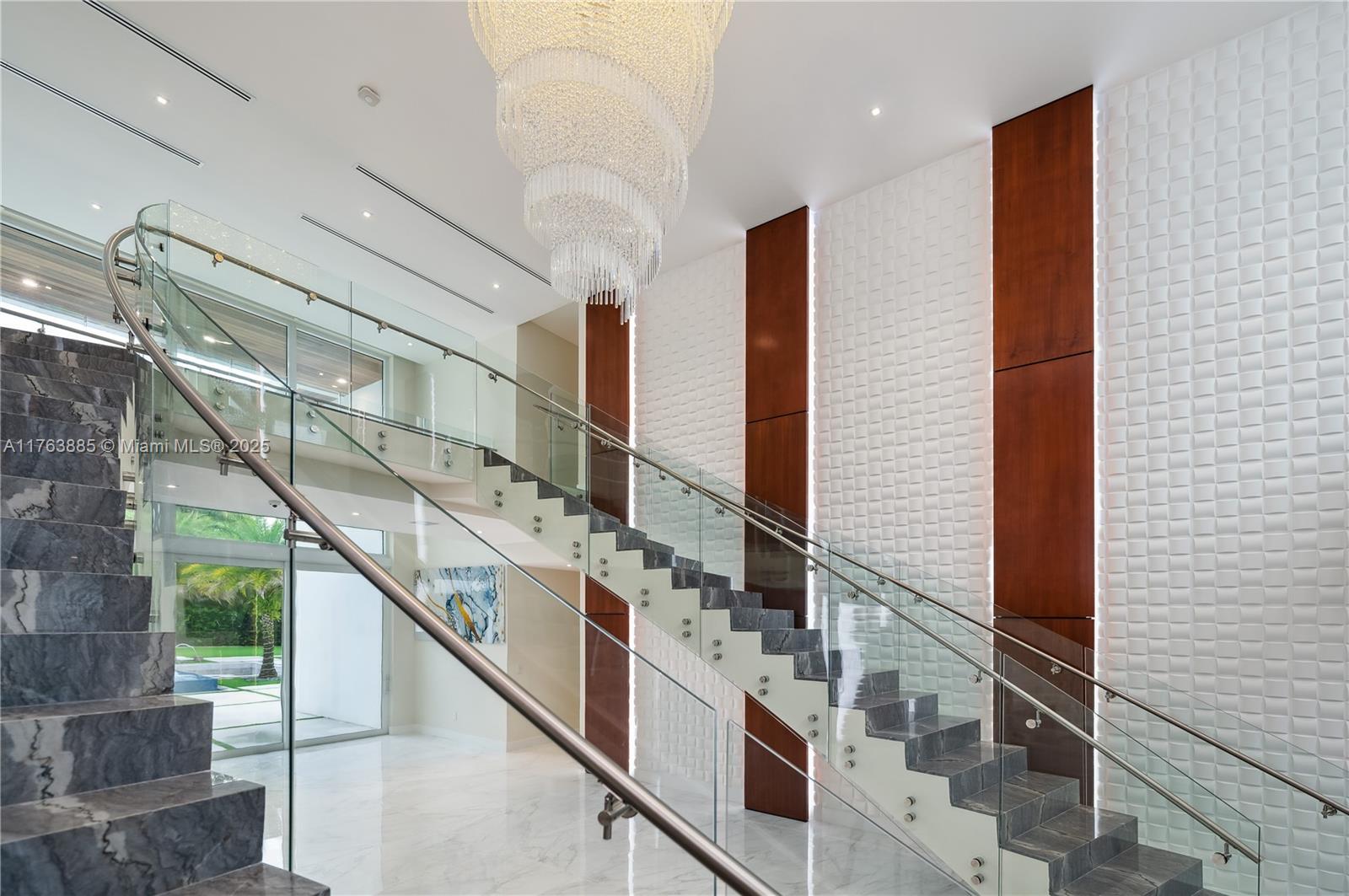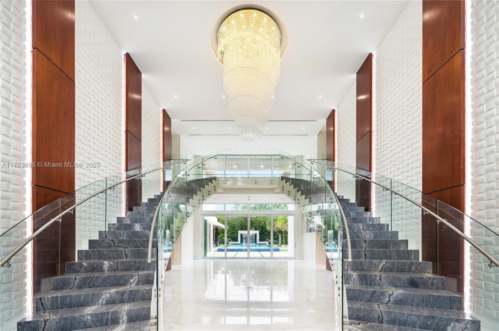 Resort-style living on a Pinecrest Acre+ lot, "PERFECTION". A 2020-built modern work of art. Greeted by soothing sounds of tranquil water features from your Port Cochere, prepare to be awestruck as you enter the Grand Foyer, where majestic Imperial staircases and soaring ceilings create an ambiance of luxury living. With 10,150 sqft. of living space, 8 bedrooms, 10.5 baths, and over an acre of manicured land, this home was custom-designed for those who revel in the art of entertainment. Homes features a custom Italian kitchen, Wolf appliances, gas stoves, wine cellar, elevator, 18 zones of sound, smart features, Lutron lighting, 8k surveillance, a guest house, a dog park (with AC), gym, 3 car garage, firepit, 50ft pool/spa, summer kitchen, waterfall & near Miami's finest schools.