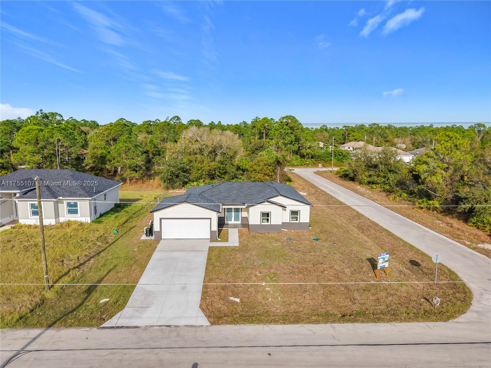 NEW BUILD COMPLETE - MOVE-IN READY - CORNET LOT The 1,548-square-foot (air-conditioned) well-designed open floor plan that includes 3 bedrooms, 2.5- bathrooms and a two-car garage. The home offers impact windows and doors, the kitchen boasts upgraded 36” contemporary Self-Closing cabinets, kitchen island with Granite-Quartz countertops, huge pantry, Stainless steel appliances (Refrigerator, dishwasher, microwave, and range), Additional features include vinyl flooring and energy-efficient LED lighting throughout. The primary suite features a walk-in closet and bathroom with a dual-sink vanity, shower. The two bedrooms share a bathroom with a dual-sink vanity and a shower.