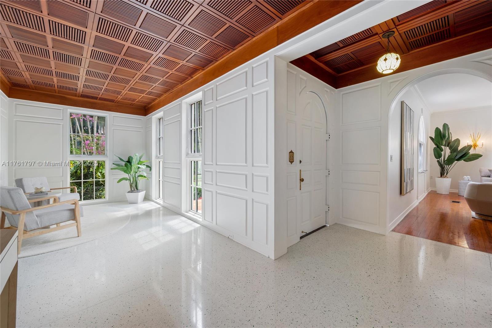 Step into Casa de Artesanía, a shining representation of 1920s Old Spanish in the heart of Miami Shores Village. Rich in historic charm, this home features an eclectic grand foyer, exquisite millwork, volume ceilings, a striking staircase, & elegant architectural elements. Arched windows bathe the grand parlor’s oak floors in natural light, while the spacious dining room opens to a chic courtyard with lush landscaping & stone paver deck. Expansive outdoor space extends to the east side of the lot, perfect for entertaining. The kitchen boasts gas cooking, butler's pantry, & serene garden views. The oversized primary suite offers room for a home office or sitting area. Set on an oversized lot on a quiet Miami Shores street, this home blends iconic South Florida design with timeless appeal.